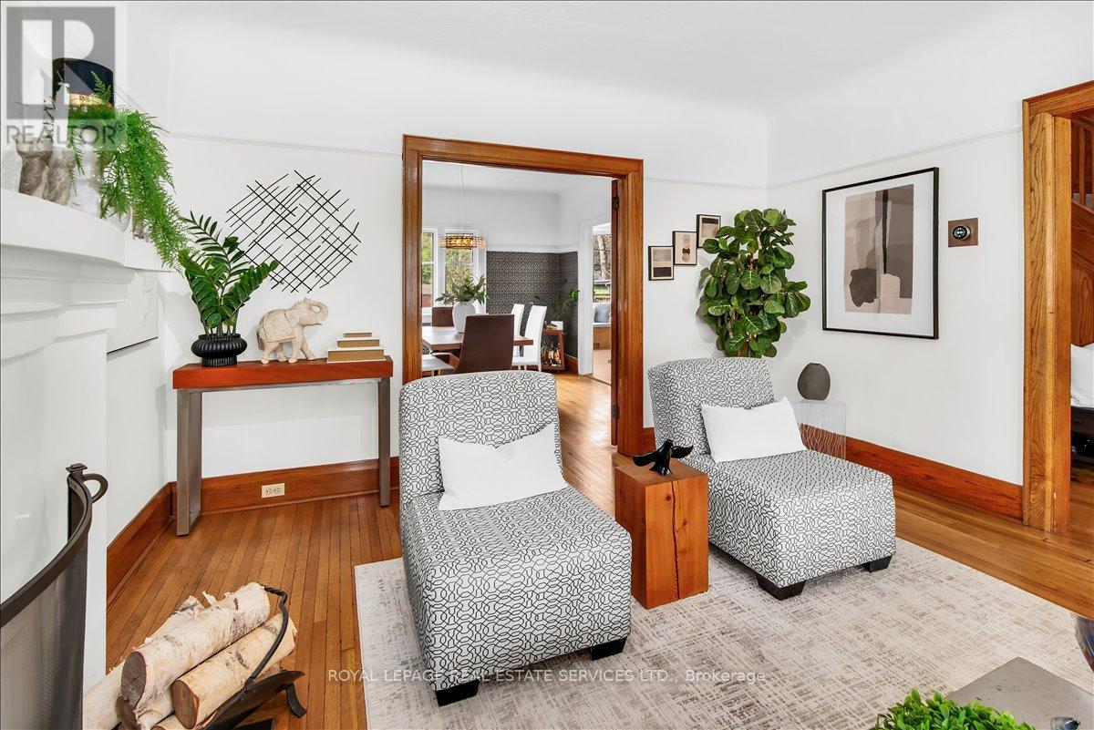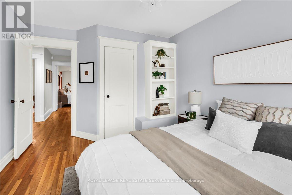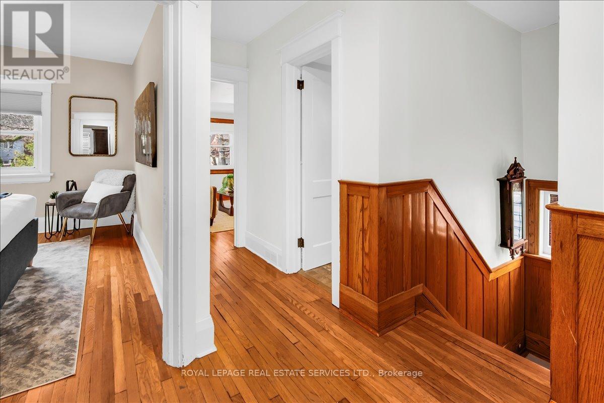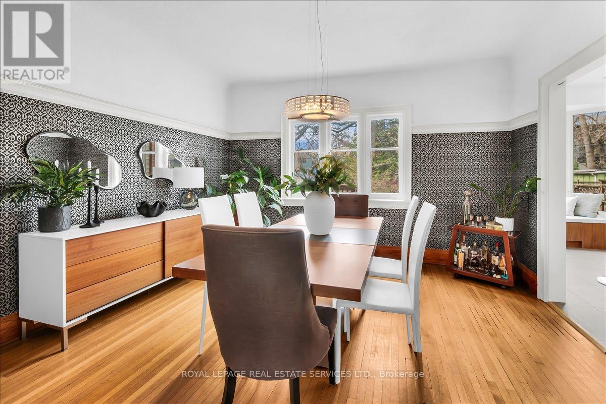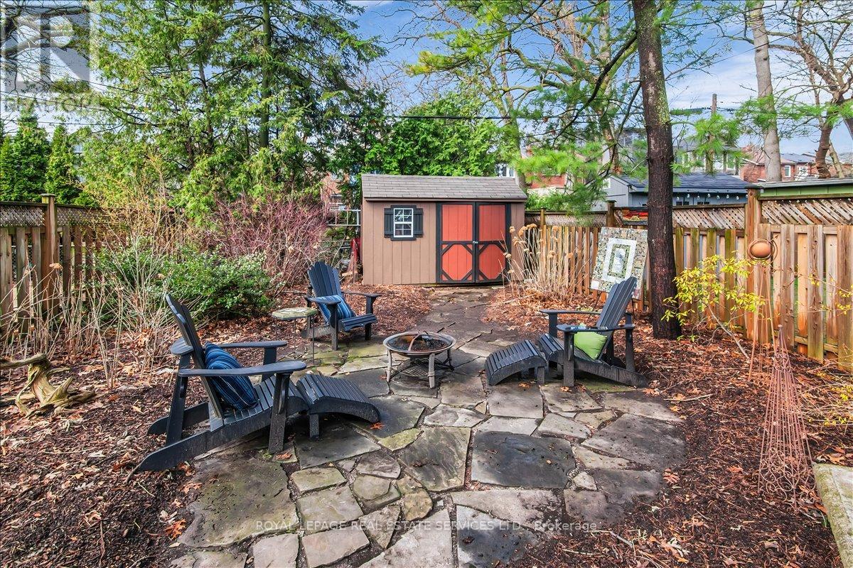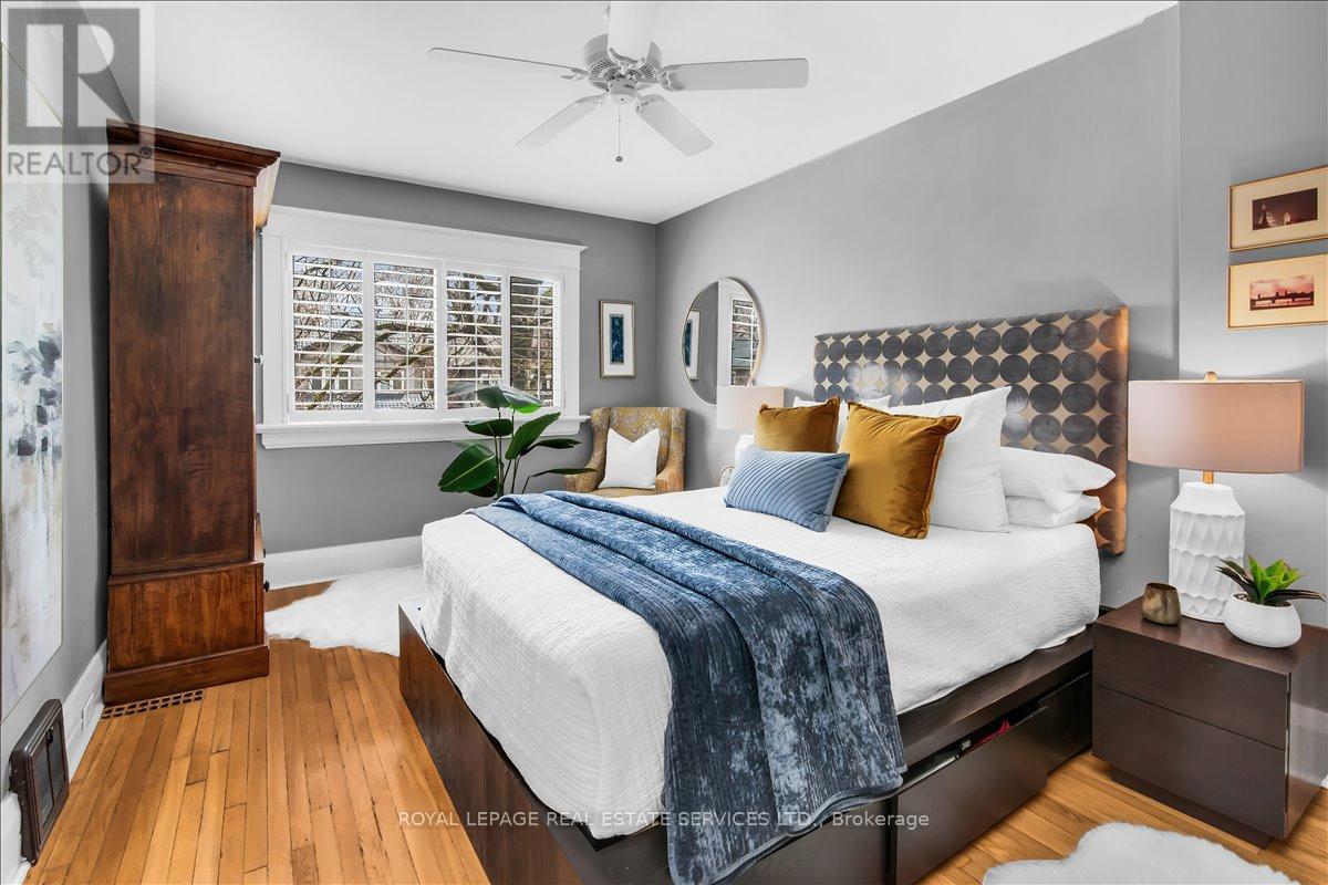 Welcome to one of Bloor West Village's most sought-after streets, where timeless charm meets modern comfort in this exceptional family home. A spacious foyer sets the tone, leading into a bright and inviting living room featuring a cozy gas fireplace and a stunning bay window. The formal dining room overlooks the beautifully landscaped backyard-perfect for entertaining. The updated gourmet kitchen boasts stainless steel appliances, quartz countertops, and a sun-filled breakfast area with a bay window and walk-out to the patio and garden. This home is rich in character, offering extra-high ceilings, exquisite wood trim, original stained-glass accents, and designer lighting throughout. Upstairs, the primary bedroom is a serene retreat with hardwood floors, a large picture window, and elegant plantation shutters. Three additional generously sized bedrooms share a stylish, spa-inspired bathroom complete with a vintage clawfoot tub. The finished lower level features a high-ceiling recreation room with an electric fireplace, plus a luxurious 4-piece bathroom with a jacuzzi tub and separate steam shower-ideal for relaxation. Step outside to enjoy a private 145-ft deep fenced yard with a low-maintenance perennial garden, stone patio, deck off the kitchen, and a large storage shed. The charming front porch is perfect for your morning coffee. All of this just steps from the subway, top-rated schools, High Park, and the vibrant shops and cafés along Bloor Street. A rare opportunity to own a 4-bedroom home in this highly coveted neighbourhood. (id:64974)
