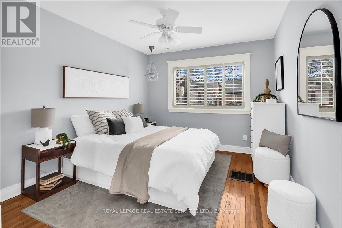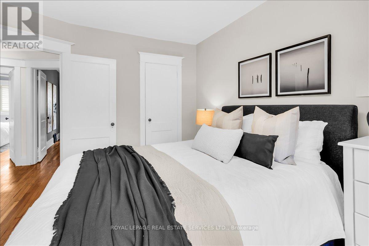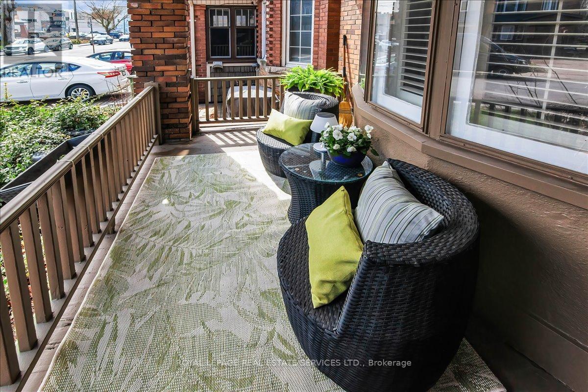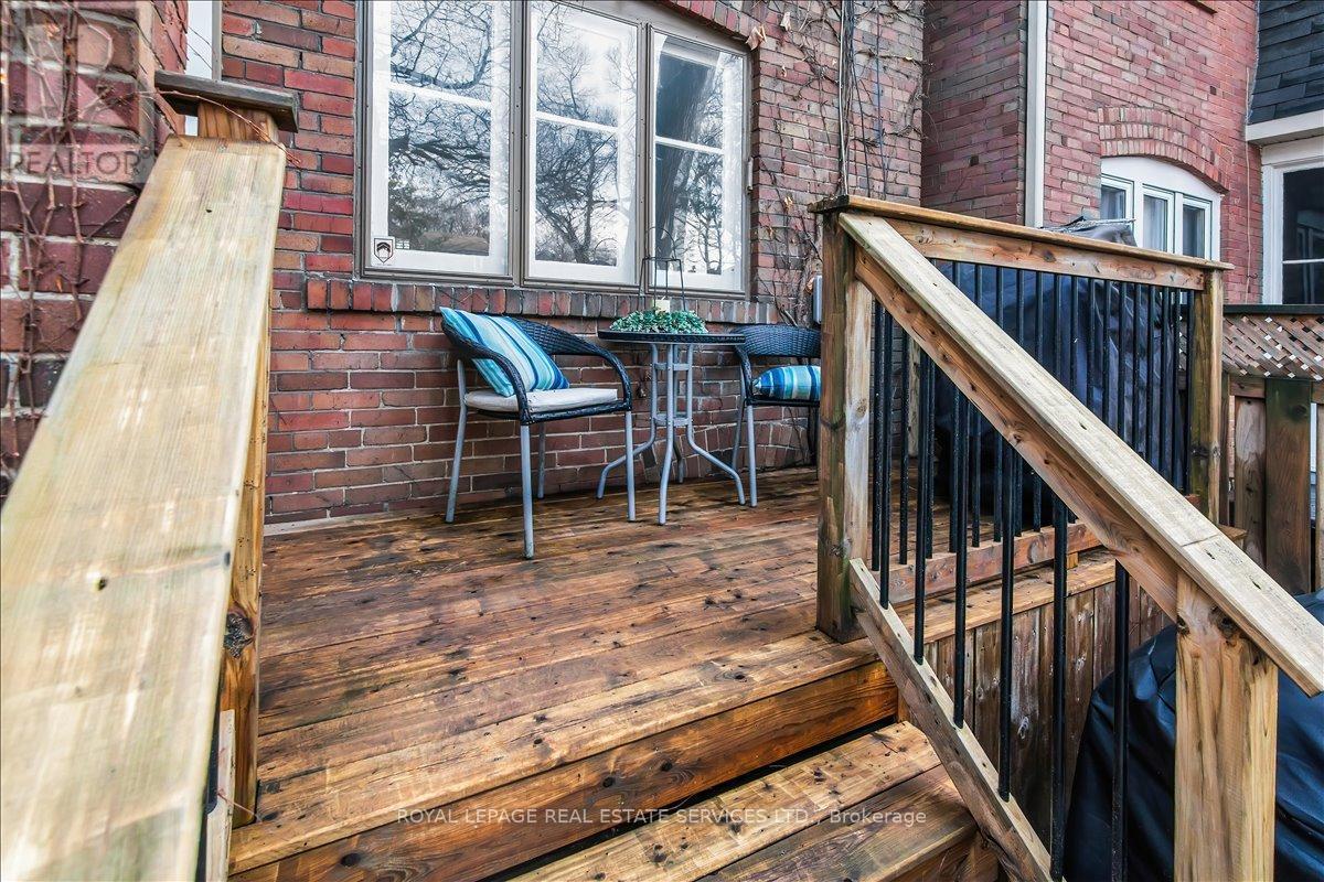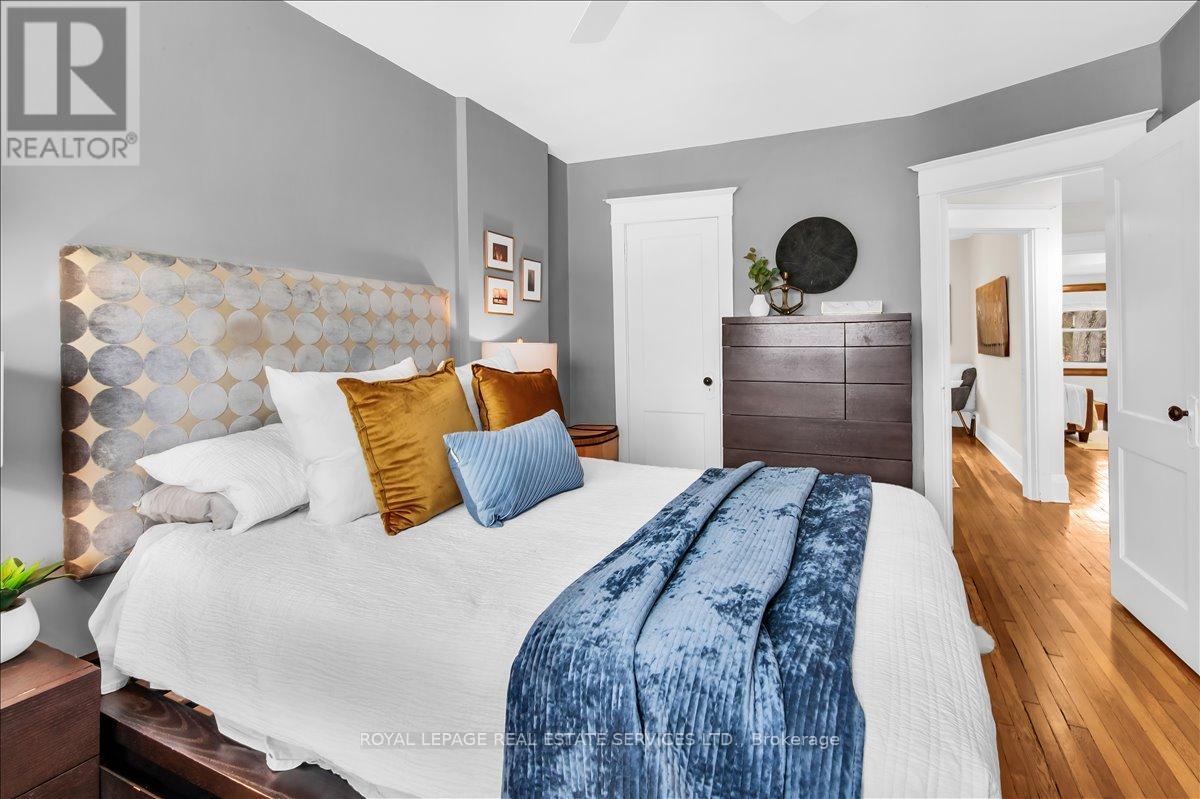 Welcome to one of Bloor West Village's most sought-after streets, where timeless charm meets modern comfort in this exceptional family home. A spacious foyer sets the tone, leading into a bright and inviting living room featuring a cozy gas fireplace and a stunning bay window. The formal dining room overlooks the beautifully landscaped backyard-perfect for entertaining. The updated gourmet kitchen boasts stainless steel appliances, quartz countertops, and a sun-filled breakfast area with a bay window and walk-out to the patio and garden. This home is rich in character, offering extra-high ceilings, exquisite wood trim, original stained-glass accents, and designer lighting throughout. Upstairs, the primary bedroom is a serene retreat with hardwood floors, a large picture window, and elegant plantation shutters. Three additional generously sized bedrooms share a stylish, spa-inspired bathroom complete with a vintage clawfoot tub. The finished lower level features a high-ceiling recreation room with an electric fireplace, plus a luxurious 4-piece bathroom with a jacuzzi tub and separate steam shower-ideal for relaxation. Step outside to enjoy a private 145-ft deep fenced yard with a low-maintenance perennial garden, stone patio, deck off the kitchen, and a large storage shed. The charming front porch is perfect for your morning coffee. All of this just steps from the subway, top-rated schools, High Park, and the vibrant shops and cafés along Bloor Street. A rare opportunity to own a 4-bedroom home in this highly coveted neighbourhood. (id:64974)