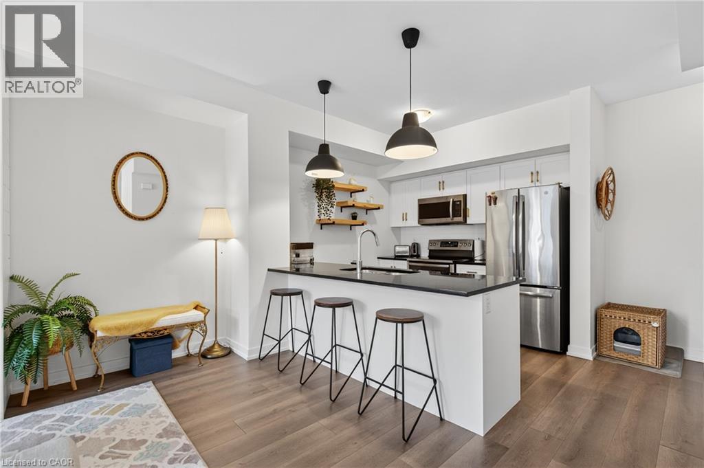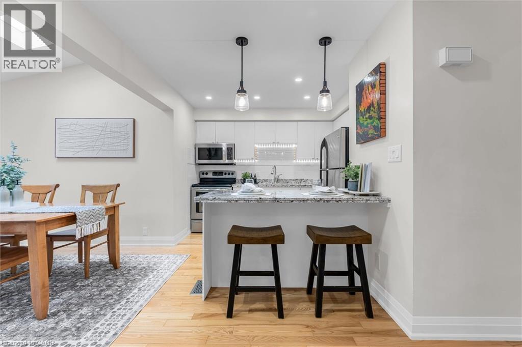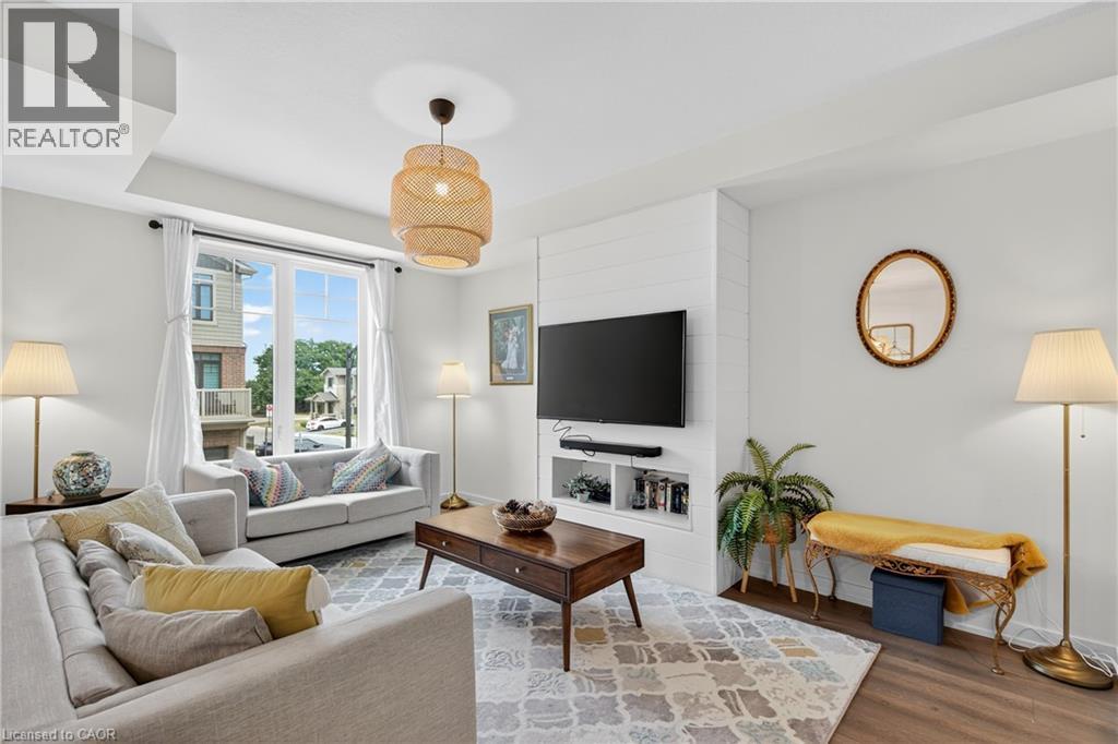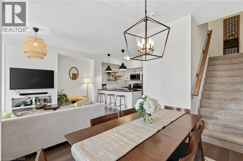 Stunning Branthaven Townhome in Sought-After Winona/Fruitland Neighbourhood. New Go Train Station, only 10 minutes away. Snow Removal and Ground Maintenance taken care of for you! Welcome to this beautifully upgraded townhome located in one of Hamilton’s fastest-growing communities. Ideally situated just minutes from the QEW and Red Hill Valley Parkway, you'll enjoy easy access to everything you need—including trendy new restaurants, shopping, Costco, and more. This home features a bright and airy open-concept layout, complete with wide plank vinyl flooring and stylish upgraded lighting throughout. The gourmet kitchen boasts sleek white cabinetry, stainless steel appliances, granite countertops, and a modern tile backsplash. The main floor also includes a spacious family room with a charming shiplap feature wall, separate dining area, and access to a private balcony—perfect for entertaining or relaxing. The powder room has been tastefully updated with new tile flooring and contemporary fixtures. Upstairs, you’ll find two generously sized bedrooms, a convenient laundry closet, and a spacious 4-piece bathroom with a relaxing soaker tub. The primary bedroom features a walk-in closet and its own private balcony. Lovingly maintained, this exceptional home is built by award-winning Branthaven and offers quality craftsmanship, thoughtful upgrades, and a truly move-in-ready experience. (id:64974)
