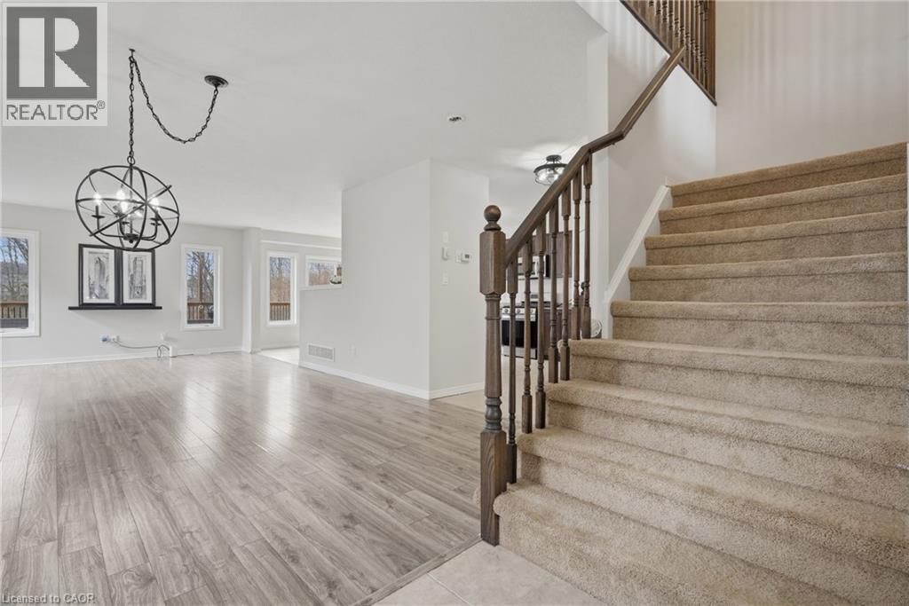 Discover your own private escape in the sought-after community of Doon South. This beautiful 4 bed, 3 bath Eastforest Energy Star home has upgraded architectural trim giving an impressive street presence, sits on a quiet crescent backing onto a serene greenbelt with forest and pond views—offering exceptional privacy, natural beauty and breathtaking sunsets from the comfort of your upgraded decks. Positioned on a rare, premium oversized lot, the outdoor space has been carefully curated with high-quality upper and lower decks—an impressive upgrade that blends style and function. Whether you're enjoying your morning coffee, hosting guests, relaxing at the end of the day, the setting is truly special. The backyard feels like a peaceful retreat where local wildlife adds to the calm, nature-inspired atmosphere. Inside, the main floor offers a welcoming double-door entry and a bright, open-concept design. You’ll find a formal dining area, a comfortable living room, and a spacious kitchen complete with a walk-in pantry, stainless steel appliances including a gas stove and plenty of counter space. A mudroom, powder room and main floor laundry add everyday convenience. The u-shaped upstairs layout features 4, generous bedrooms plus an additional family room that can easily be converted into a fifth bedroom. The grand primary suite has a walk-in closet and a large ensuite bathroom featuring expansive windows overlooking the backyard—creating a relaxing, light-filled space .The walkout basement is filled with natural light thanks to oversized upgraded windows, along with enhanced insulation and a bathroom rough-in—offering excellent potential for future finishing. Ideally located just minutes from Highway 401, Conestoga College, Costco, and major shopping amenities in Kitchener and Cambridge. You’re within walking distance to Groh Public School . Surrounded by scenic walking trails and green space, this home offers a rare combination of peaceful living and urban convenience. (id:64974)