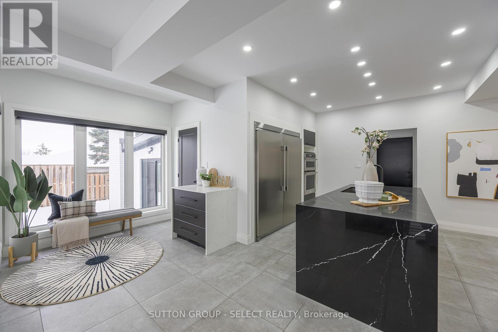 Set back on a 100-ft-wide, 0.40 acre lot along coveted Windermere Court West-an exclusive, traffic-calmed lane with homes on only one side overlooking the Elsie Perrin Estate-this fully transformed modern residence delivers 3,177 sq ft above grade and a seductive gallery-style aesthetic. The road is curbed, dead-ended, and services only the resident homes, enhancing peace and privacy. With Western University, University Hospital, and Medway Valley trails in walking distance, the setting is unmatched for buyers who value location. Inside, the main level flows with curated, art-gallery intention: newer windows and doors frame natural light, continuous flooring extends sight-lines, and a sculptural quartz fireplace surround and feature wall creates impact defining the stepped-down living room. The architectural kitchen performs as both workspace and showpiece, offering dual islands, extensive cabinetry, a porcelain/quartz feature wall, and a walk-in pantry. A generous dining area, sunroom/office, impressive main bath, and three bedrooms - including a bold, light-filled primary suite with a beautifully redesigned ensuite-complete the main level. The lower level expands the home's lifestyle narrative with nearly 2,000 sq ft of upscale finished space. Glass partitions showcase a double laundry suite, a glassed-in gym, and a glass-front bonus room ideal for a future wine cellar, adding a boutique-hotel sensibility. A large workout studio, lounge, games area, full bath, finished bonus room, and a private bedroom complete the level. Outside, the deep, fully fenced yard evolves into a private resort: heated salt-water sport-pool, hot tub, and a pool house that flows into a covered lanai-creating effortless outdoor living whether you want shade, shelter from rain, or a serene retreat after a workout. Redesigned front landscaping and lift-height garage ceilings complete this modern sanctuary. Windermere Court West is a rare address-and this is one of its most compelling homes. (id:64974)