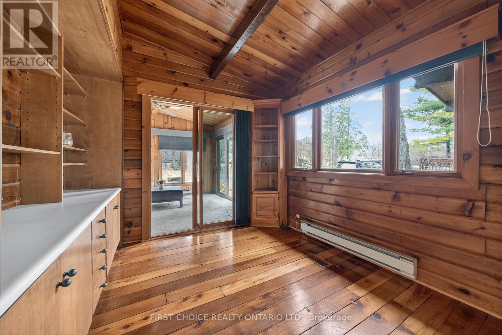 Unobstructed water views on a premium in the ultra-private and sought after majestic Dunrobin Shores...where every day feels like an escape to nature's most peaceful and inspiring landscapes! From the moment you open the door, the craftsmanship and warmth of the home are unmistakable, with its rich cedar, exposed beams, and inviting architectural character that blends rustic charm with modern comfort. Note the renovated kitchen and bathroom! A spectacular 37-foot deck spans the entire length of the home, offering panoramic views of the Ottawa River and the Gatineau Hills-an ideal setting for morning coffees, golden sunsets, or gatherings with family and friends. Inside, wall-to-wall windows flood the interior with natural light, while the stunning floor-to-ceiling stone wood-burning fireplace becomes the heart of the home and a retreat year round. Numerous updates enhance the property, including a beautifully redesigned kitchen featuring sleek, modern cabinetry, stone countertops, and high-end appliances that make cooking a pleasure. A cozy four-season room which had been used as an office and a bedroom overlooks the front gardens. The walkout lower level expands your living space with a bright recreation room, bathroom, and workshop, along with a spacious patio door leading to the covered lower deck, where you can unwind rain or shine in either the soft tub... ready for use... or enjoy a quiet sitting area with a coffee and a book! Meticulous landscaping, mature trees, and thoughtfully curated gardens surround the entire property, creating a sense of tranquility and privacy rarely found so close to city conveniences. Located on prestigious Barlow Crescent-one of Dunrobin's most sought-after addresses-this home stands as one of its finest offerings, merging the very best of country living with easy access to every amenity. 20 Minutes to Kanata High Tech! Furnished is an option! (id:64974)