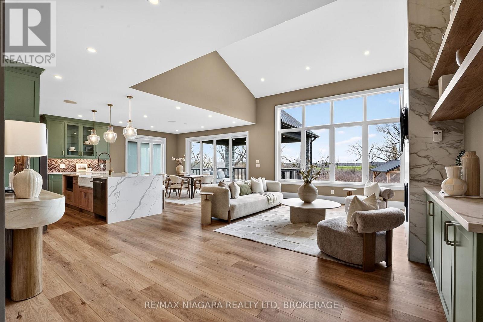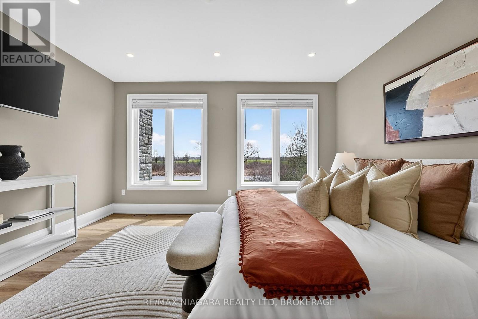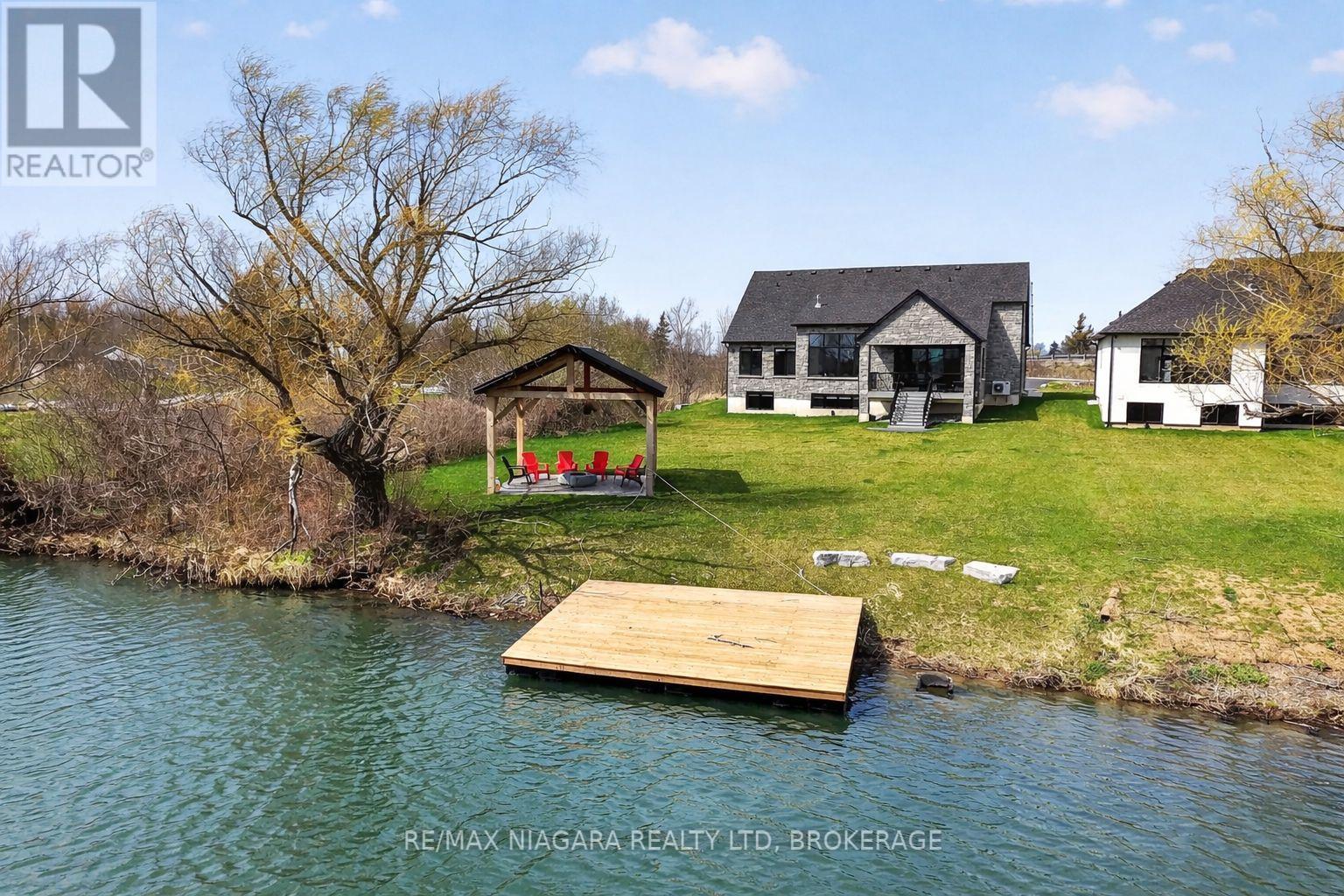 Welcome to 2899 Townline Rd, a stunning 2024 custom bungaloft set on an impressive 98 x 306 ft estate lot with direct water access to Black Creek and a private dock. Offering approximately 3,900 sq ft of finished living space, this home showcases a striking stone exterior, a covered rear patio, and a double garage equipped with its own heating and cooling system. Boasting 3 bedrooms (with potential for a 4th in the basement) and 4 bathrooms, this home is finished top to bottom with exceptional designer details, all set on a private lot. The open-concept main floor features soaring ceilings open to above and expansive windows that fill the space with natural light. The designer kitchen complete with quartz waterfall countertops, custom cabinetry, and a walk-in pantry, seamlessly overlooks the dining area and spacious living room with a gas fireplace feature wall. The main floor primary suite offers a private retreat with dual walk-in closets and a spa-inspired ensuite. A convenient laundry/mudroom with direct garage access and a powder room complete the main level. Upstairs, the loft level offers two generously sized bedrooms, a 4-piece bathroom, and a versatile second living area ideal for family or guests. The fully finished basement extends the living space with a home office, gym, large rec room with potential for an additional bedroom, and a full bathroom.Step outside to a private backyard oasis with no rear neighbours. The beautifully designed lower sitting area by the water, perfect for relaxing, entertaining, or taking in the peaceful waterfront setting. Located in the quiet, sought-after community of Stevensville with easy highway access, this property offers the perfect balance of luxury, privacy, and convenience. A rare opportunity to enjoy exceptional waterfront living in a truly turn-key home. (id:64974)