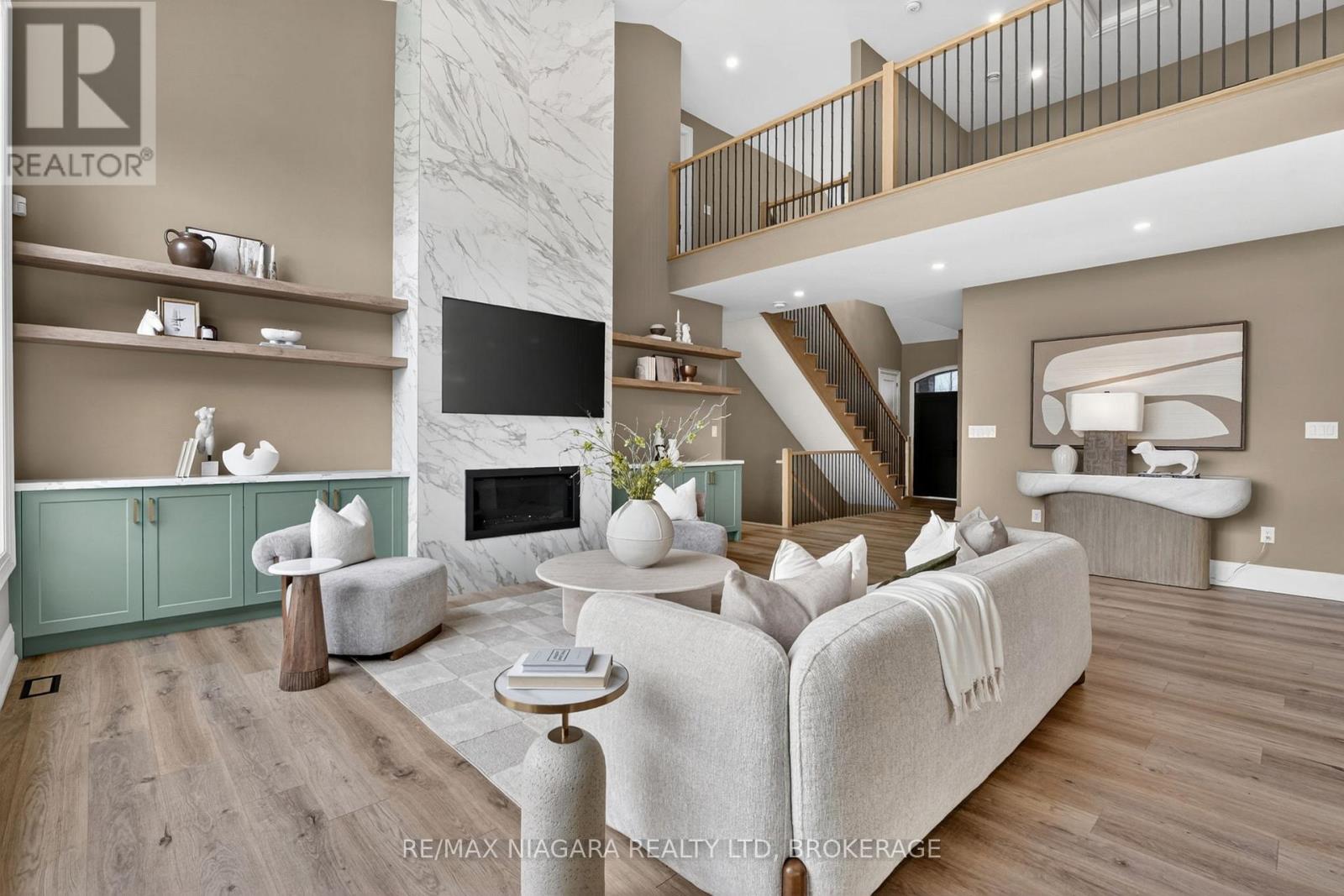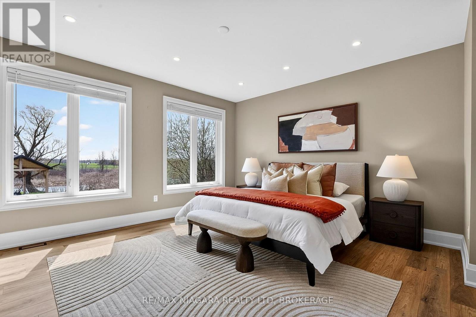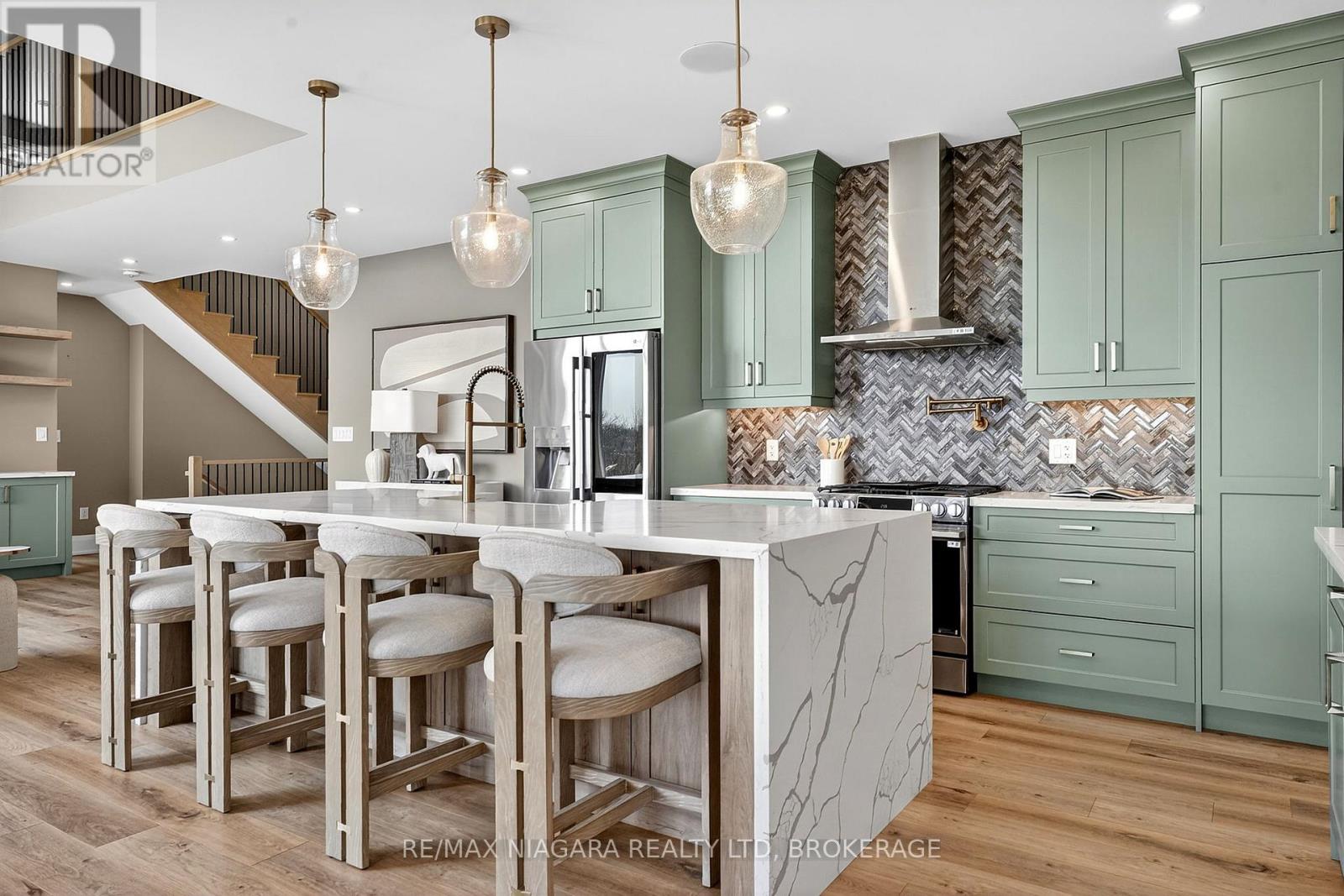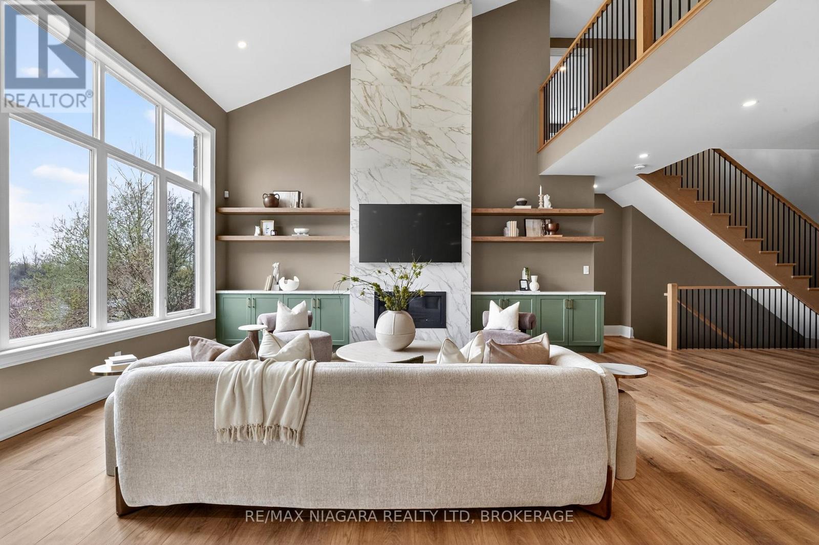 Welcome to 2899 Townline Rd, a stunning 2024 custom bungaloft set on an impressive 98 x 306 ft estate lot with direct water access to Black Creek and a private dock. Offering approximately 3,900 sq ft of finished living space, this home showcases a striking stone exterior, a covered rear patio, and a double garage equipped with its own heating and cooling system. Boasting 3 bedrooms (with potential for a 4th in the basement) and 4 bathrooms, this home is finished top to bottom with exceptional designer details, all set on a private lot. The open-concept main floor features soaring ceilings open to above and expansive windows that fill the space with natural light. The designer kitchen complete with quartz waterfall countertops, custom cabinetry, and a walk-in pantry, seamlessly overlooks the dining area and spacious living room with a gas fireplace feature wall. The main floor primary suite offers a private retreat with dual walk-in closets and a spa-inspired ensuite. A convenient laundry/mudroom with direct garage access and a powder room complete the main level. Upstairs, the loft level offers two generously sized bedrooms, a 4-piece bathroom, and a versatile second living area ideal for family or guests. The fully finished basement extends the living space with a home office, gym, large rec room with potential for an additional bedroom, and a full bathroom.Step outside to a private backyard oasis with no rear neighbours. The beautifully designed lower sitting area by the water, perfect for relaxing, entertaining, or taking in the peaceful waterfront setting. Located in the quiet, sought-after community of Stevensville with easy highway access, this property offers the perfect balance of luxury, privacy, and convenience. A rare opportunity to enjoy exceptional waterfront living in a truly turn-key home. (id:64974)