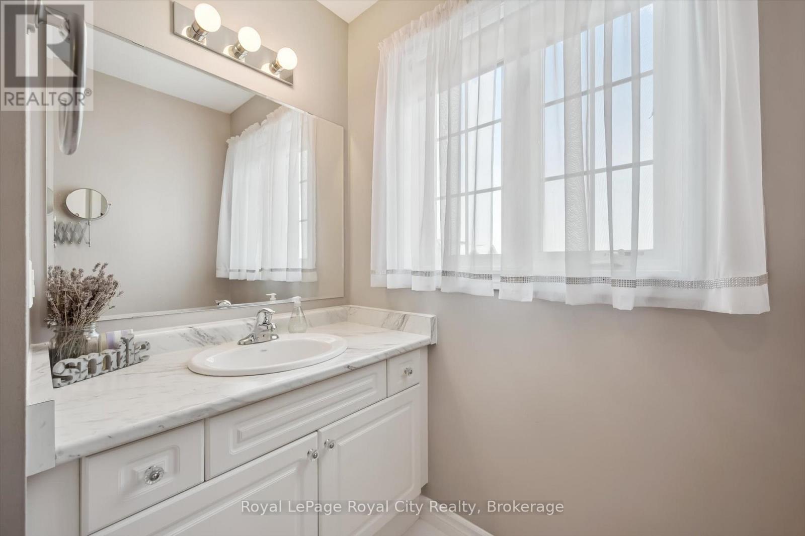 This beautifully maintained upper-level stacked townhome offers 1,369 sq ft of bright, functional living space. Thoughtfully designed with neutral finishes and décor, this home provides a warm, move-in-ready feel that suits any style. The spacious living room is filled with natural light from large windows, creating an inviting atmosphere perfect for both relaxing and entertaining. The functional kitchen features a convenient dine-in area and direct access to the private balcony- ideal for morning coffee or evening unwinding. A well-placed powder room on this level adds everyday convenience for you and your guests. Two great-sized bedrooms, a 4-piece bathroom, and in-suite laundry occupy the upper level. Located in a fantastic neighbourhood, just minutes from schools, parks, shopping, and scenic trails leading to Guelph Lake- perfect for outdoor enthusiasts. (id:64974)