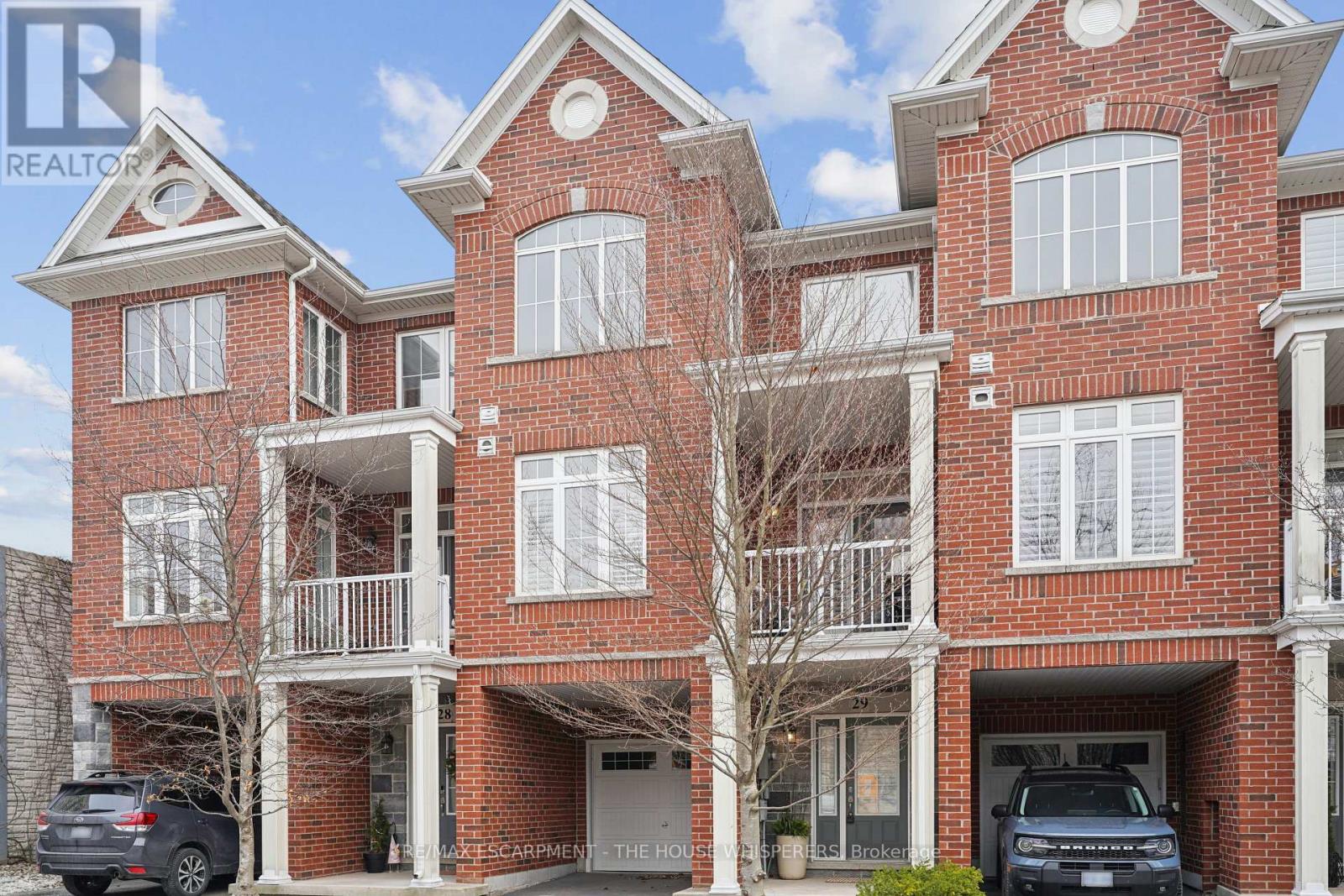 Elegant. Luxurious. Completely Irresistible. From the moment you step inside, this stunning three-storey townhome wraps you in warmth and sophistication. Nestled in the charming and highly sought-after Aldershot neighbourhood on Burlington's desirable west end, this is the kind of home that doesn't just impress; it feels like home. Every detail has been thoughtfully curated. Rich hardwood flooring flows throughout, complemented by a classic oak staircase with wrought iron pickets, soaring 9-foot ceilings on the main floor, and custom crown moulding and wainscotting that speak to true craftsmanship. The chef-inspired kitchen is a showpiece in its own right, featuring custom cabinetry, striking stone countertops, and an elegant stone backsplash. Upgraded lighting sets the perfect ambiance, morning to evening. Step out onto your private balcony, a personal retreat for morning coffees, weekend BBQs, or simply soaking in the fresh air, overlooking a serene parkette with no neighbours across at the end of the complex. Upstairs, two generously sized bedrooms offer the ultimate in comfort. The primary suite is a true sanctuary, boasting dramatic vaulted ceilings and a spacious walk-in closet. Both beautifully appointed bathrooms feature stone countertops, adding a seamless touch of luxury throughout. Practicality meets elegance with your own private driveway and an extra-deep garage offering exceptional storage; a rare and coveted find. And the location? Simply unmatched. Restaurants, boutique shops, Lake Ontario, and scenic parks are all just steps away. A short drive brings you to Aldershot GO Station for effortless Toronto commutes, the world-renowned Royal Botanical Gardens, LaSalle Park, and a collection of premier golf courses. This is truly a turnkey treasure. Move in, place your furniture, and start living the life you've been dreaming of. Homes like this don't stay available for long. Book your private showing today and see for yourself why this is the one. (id:64974)