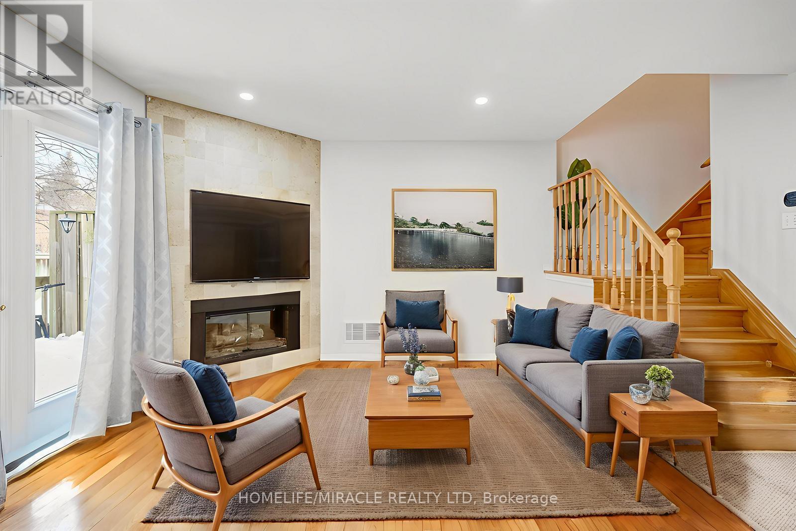 Welcome to this upscale townhome in the highly desirable Ravines of Twin Oaks, nestled in a quiet, sought-after enclave offering peace, privacy, and direct access to nature. This bright, well-kept 3-bedroom, 3 full and 1 half bathroom home features a fully finished basement and backs onto the serene, tree-lined Nipigon Trail and creek-a rare and tranquil setting.Inside, enjoy gleaming hardwood flooring throughout the main living areas and a thoughtfully designed main-floor layout. The open-concept kitchen offers ample cabinetry and counter space, along with a convenient pantry located in the hallway. The spacious living room, complete with a cozy gas fireplace, is ideal for both everyday living and entertaining.Upstairs, you'll find a generous primary bedroom featuring a full wall of closets and an updated ensuite. The functional layout provides comfortable and versatile living space across all levels, making it perfect for families, professionals, or those who love to entertain. The finished basement adds valuable additional living space-ideal for a recreation room or home office-and includes a full bathroom, laundry room, and separate storage room. Located in a well-managed and quiet community with no through traffic, this home also offers ample visitor parking-a rare bonus. Maintenance fees include snow clearing, ensuring carefree winter living. Whether enjoying morning coffee on your private deck overlooking the forest or taking a peaceful stroll along the Nipigon Trail, this home delivers a perfect blend of urban convenience and natural beauty. Don't miss this move-in-ready gem combining comfort, style, and an exceptional location.(Some images are virtually staged.) Extremely well-maintained home in the heart of River Oaks. AC and tankless water heater(owned) 2023, water softener 2023 (id:64974)
