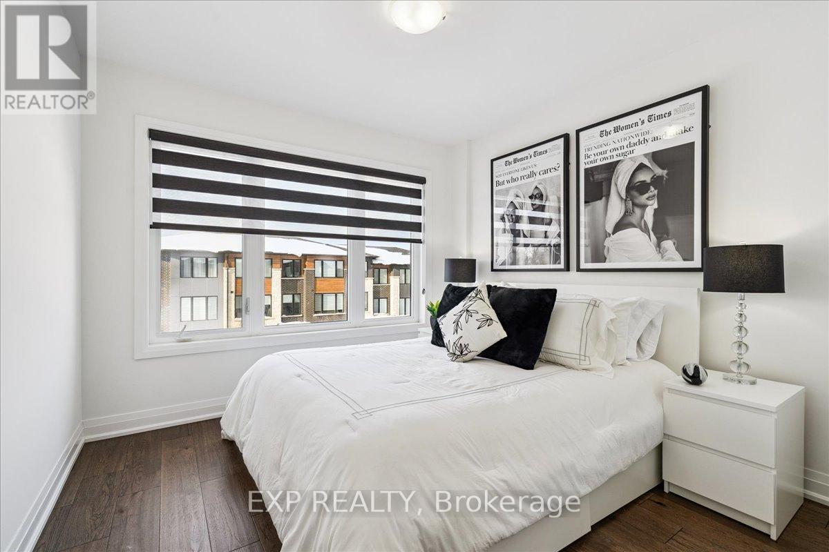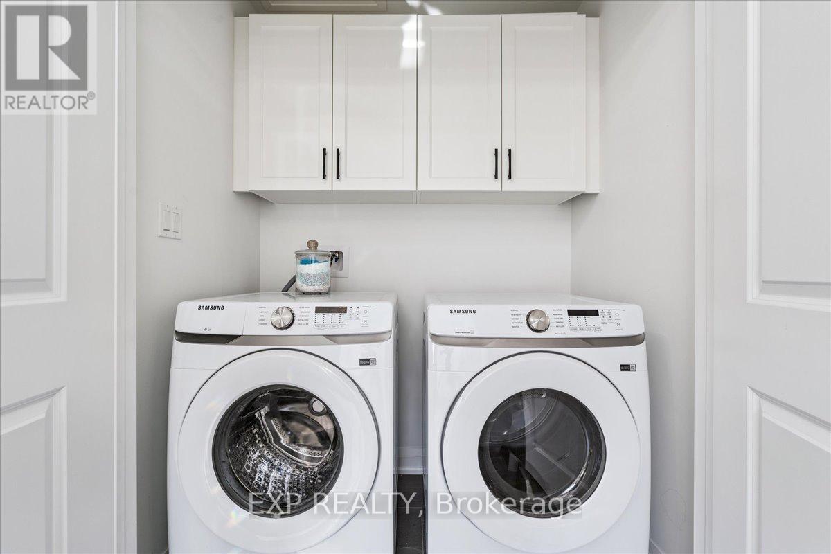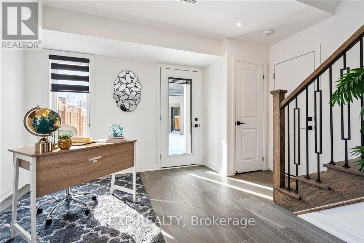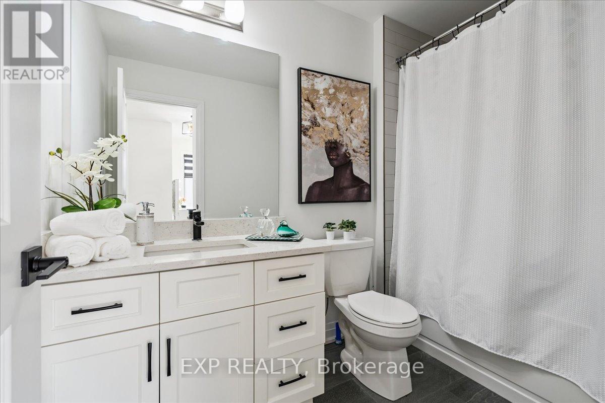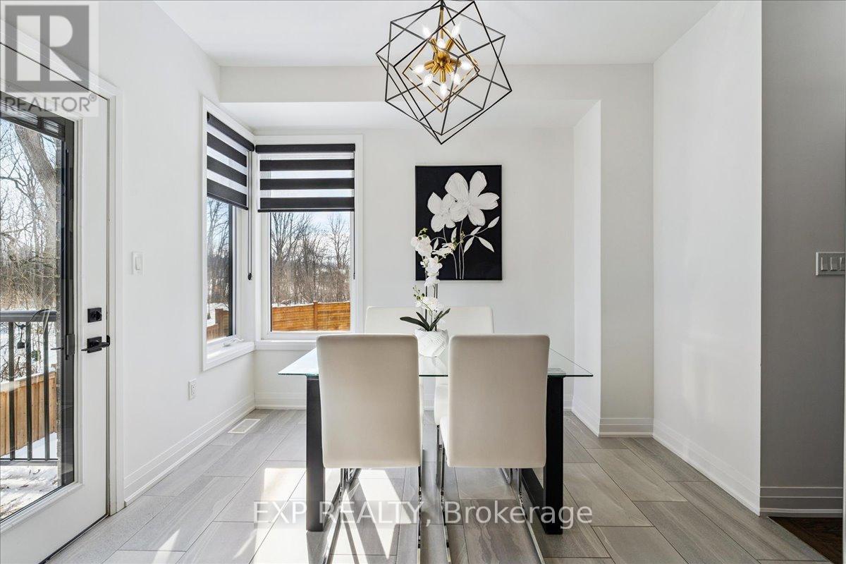 WELCOME HOME to modern luxury at its finest! A stunning, nearly new (built by Worthington Homes) freehold end-unit townhome with rare two-car garage and double driveway in Georgetown's highly sought-after Trafalgar Square community. This home is perfectly positioned on a premium lot without rear neighbours, just steps from The Club at North Halton Golf Course - the ideal blend of nature's serenity and City convenience. Flooded with natural light, this beauty showcases elegant contemporary finishes including wide-plank hardwood floors, quartz counters in the kitchen and bathrooms, premium ceramic tile, upgraded pot lights, gorgeous chandeliers, and contemporary custom zebra blinds throughout which are remoted-controlled in the primary suite and family room!! The ground level offers a versatile walk-out to the fully fenced yard from the recreation room or home office and direct access to the oversized two-car garage. The main level features a bright, open-concept large family room and dining space with huge windows and custom fireplace feature wall, perfect for entertaining. The chef-inspired large eat-in kitchen is equipped with stainless steel appliances, soft-close cabinetry, and a walk-out to the deck overlooking the private backyard and beautiful green space . . . no neighbours behind! Upstairs, the spacious primary suite enjoys tranquil nature views, a walk-in closet, and a luxurious 3-piece ensuite with an oversized glass shower featuring floor-to-ceiling tile. Two additional generously sized bedrooms, a full main bathroom, practical laundry, and a convenient den/media niche completes the third floor! Ideally located minutes from Downtown Georgetown, the GO Station, Highway 401, shops, restaurants, the hospital, conservation, trails, the fairground and Trafalgar Sports Park. This turn-key home offers the perfect balance of small-town charm & urban style in the City!! Your future home awaits - don't miss this incredible opportunity to make it yours! (id:64974)