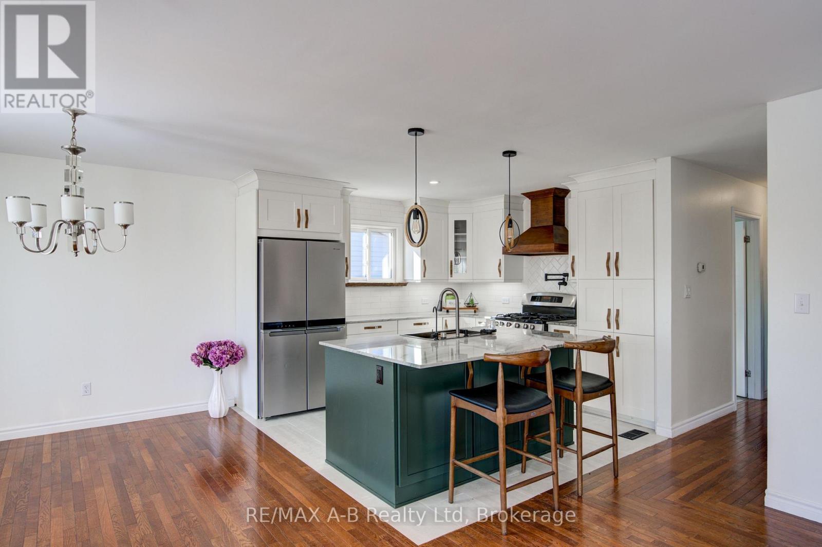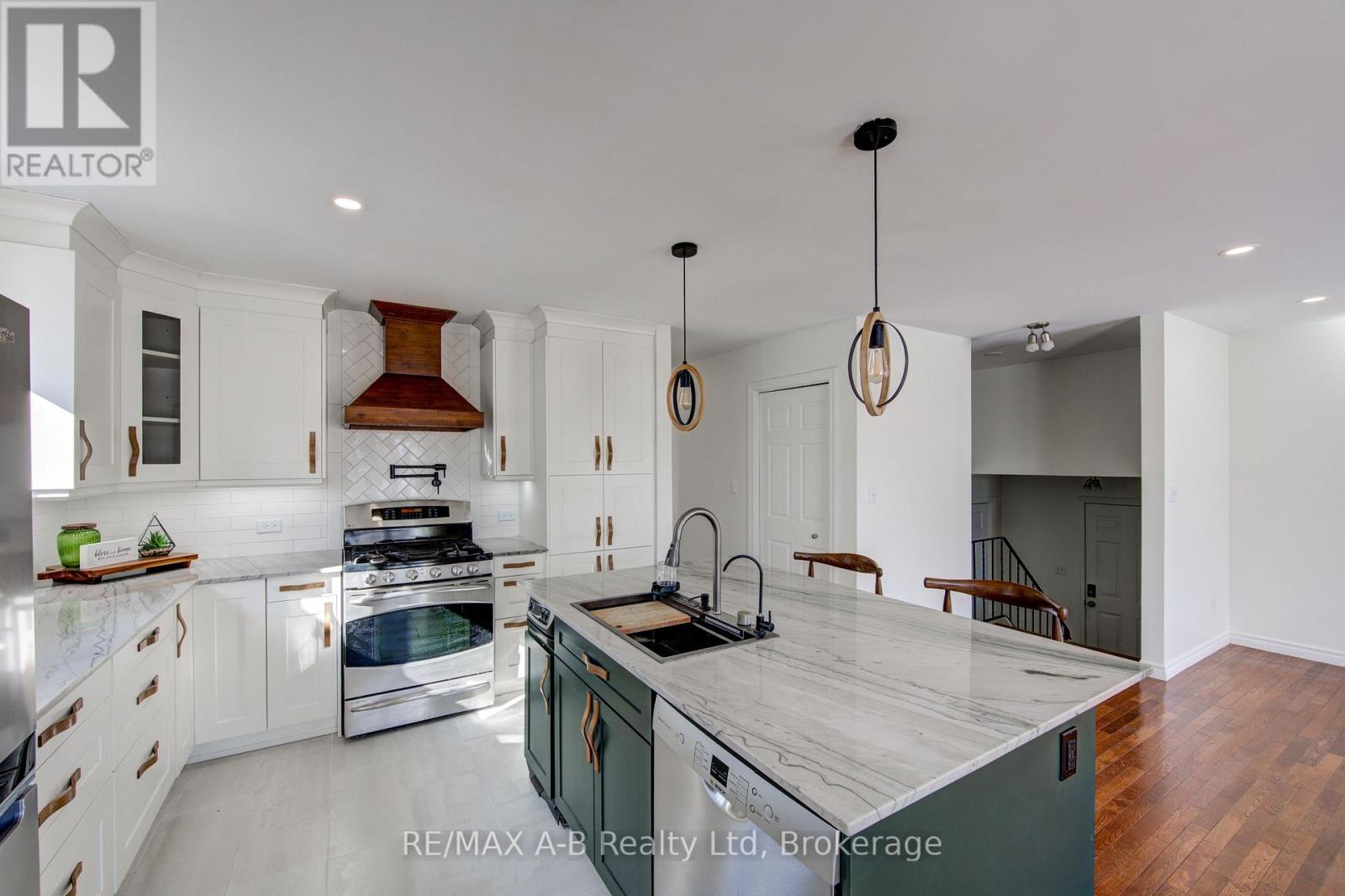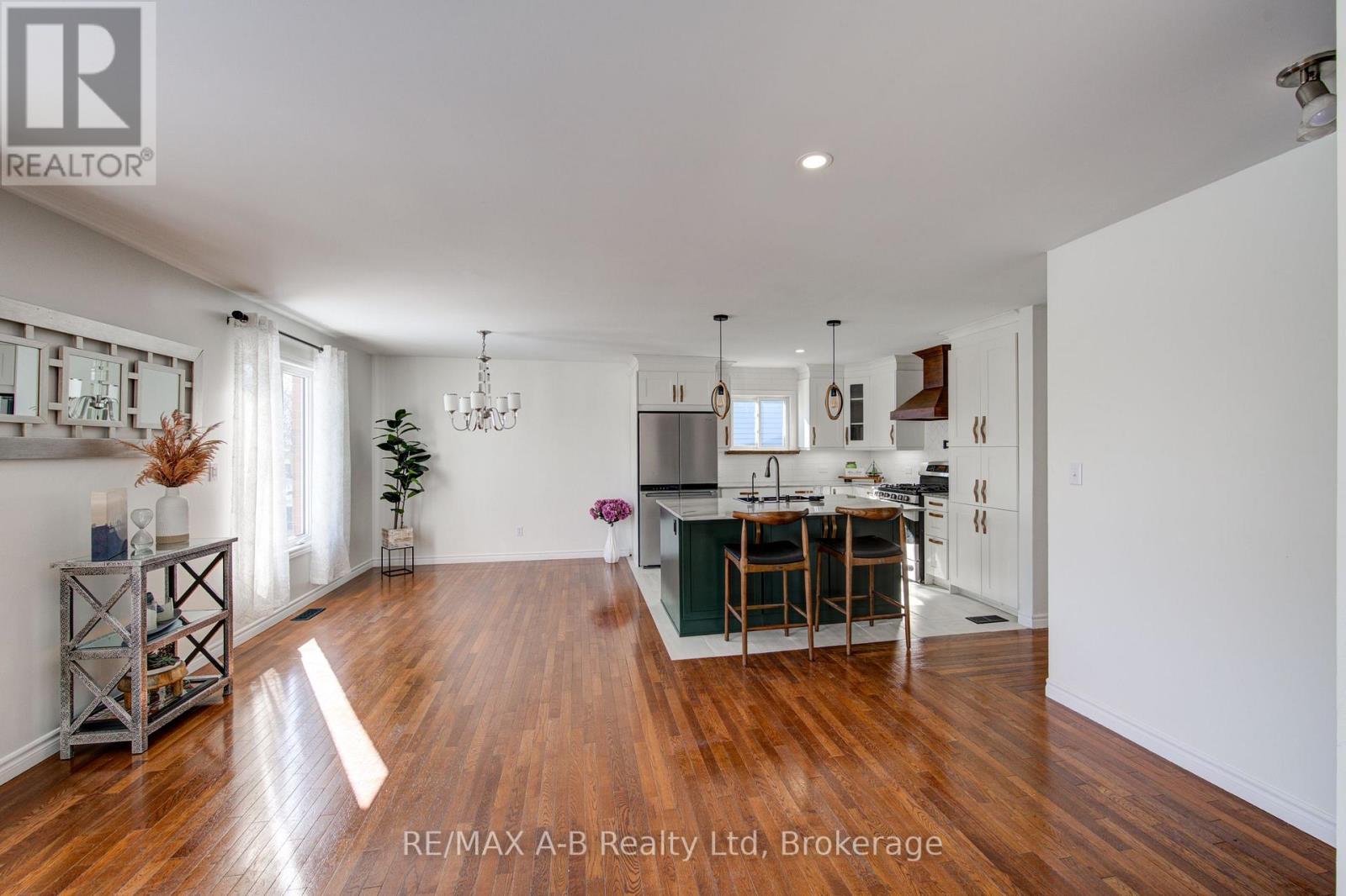 Welcome to the perfect family neighbourhood just a couple of blocks from the Pyramid Centre and Little Falls Public School. This welcoming 3-bedroom bungalow has been lovingly updated with family comfort in mind. If you love to cook, you'll love this kitchen! From the custom-built island, gas range and upgraded finishes to the trash compactor, every detail was designed for entertaining friends and family. The open concept living space means no one is left out of the fun. The main floor is rounded out by 3 generous bedrooms and a renovated cheater ensuite. The lower level is a welcome surprise. With natural light pouring in from the large above-ground windows, it offers a large family room, full bathroom and 2 additional rooms for your home office, gym, hobby room or just extra space for storage. The many updates making this home move-in ready include new siding (2023), new front door and garage door (2024), a stamped concrete pad ready with a hot tub hook up (2024), truscore in the garage (2025) and new flooring throughout the foyer, down to the family room and throughout the basement (2025). The list continues, so please reach out for more! This home is a delight for any family and is ready to become your new home. Call for your private tour today. (id:64974)