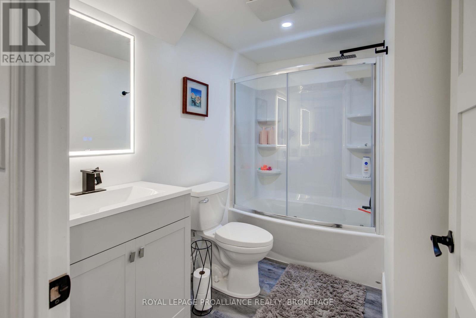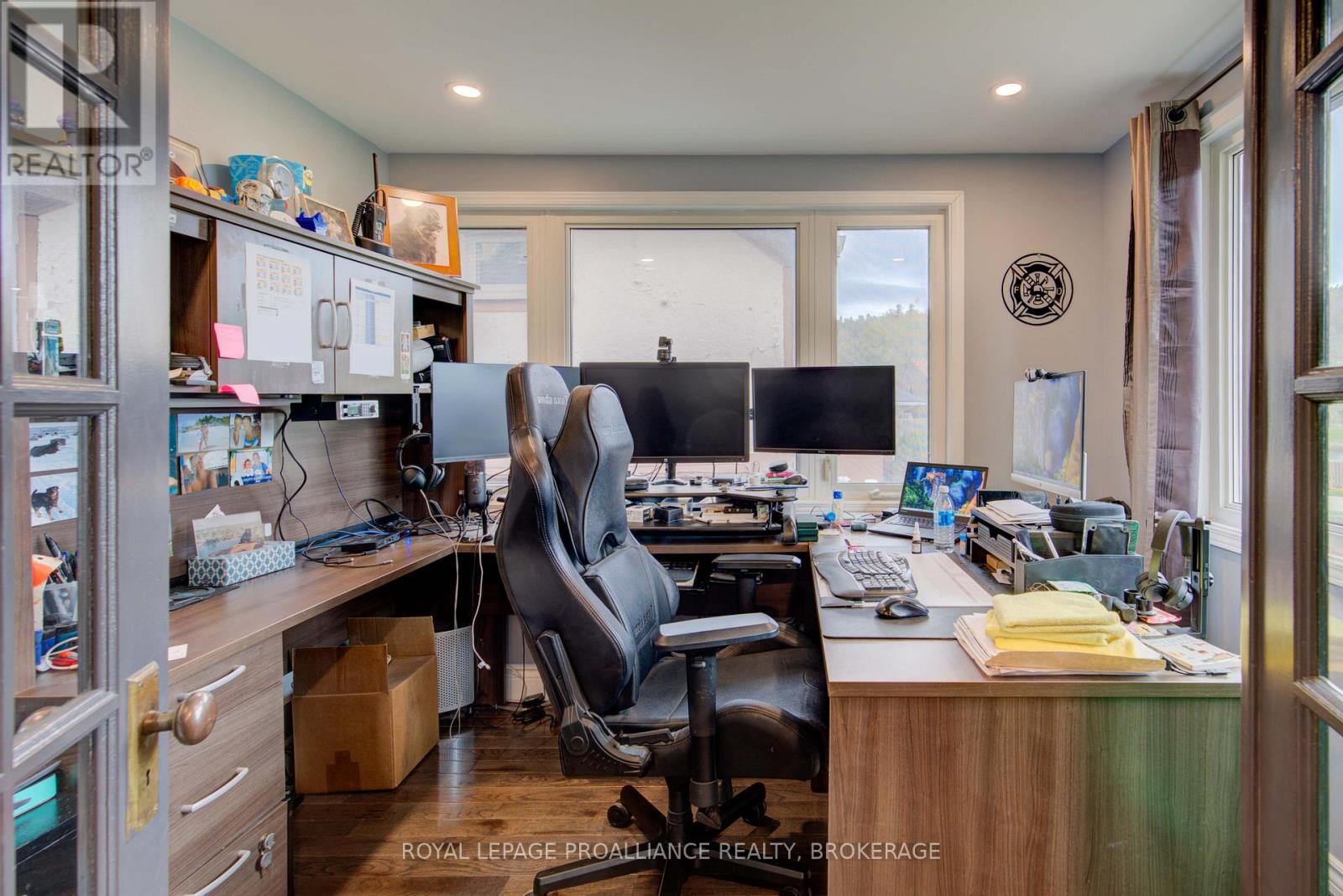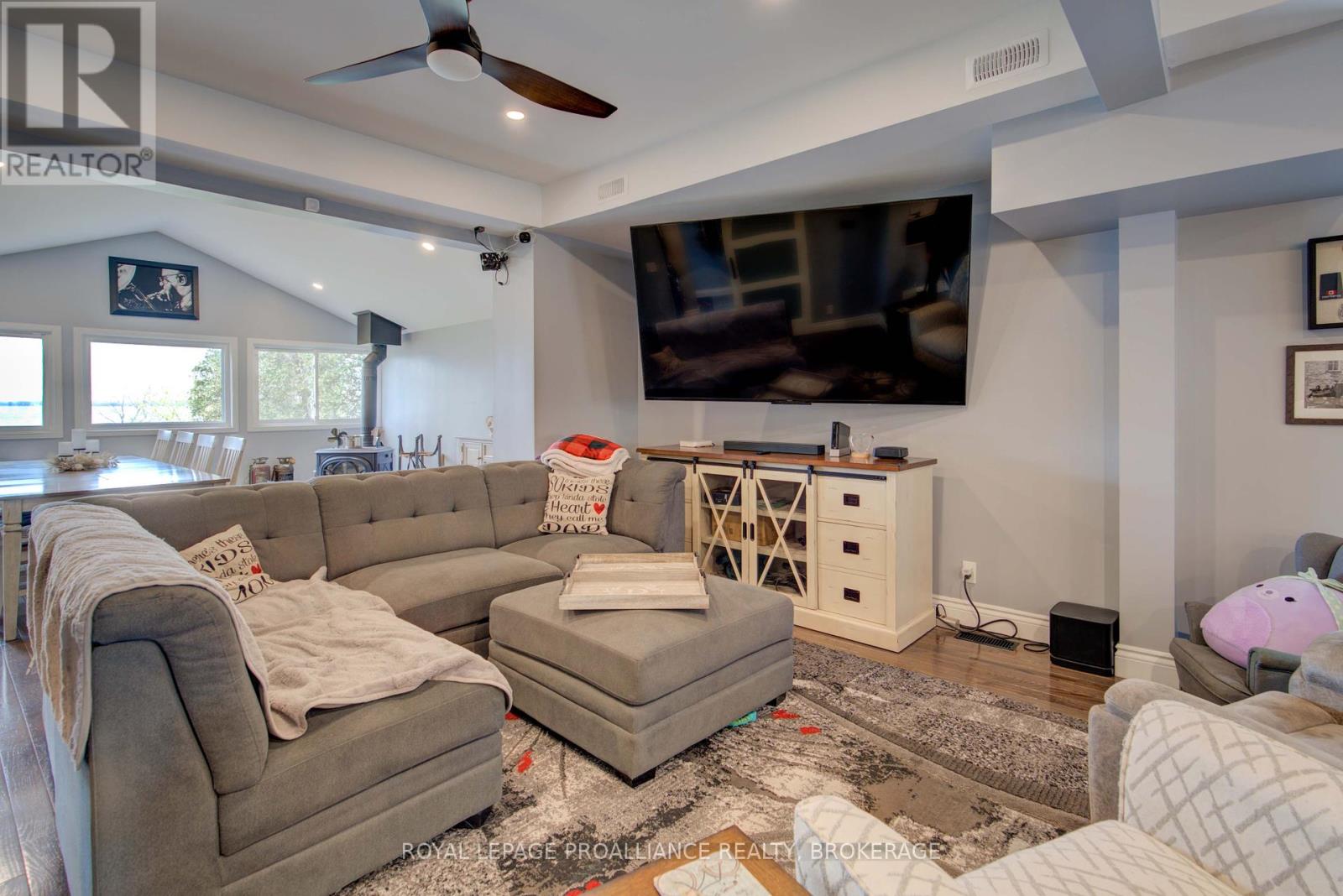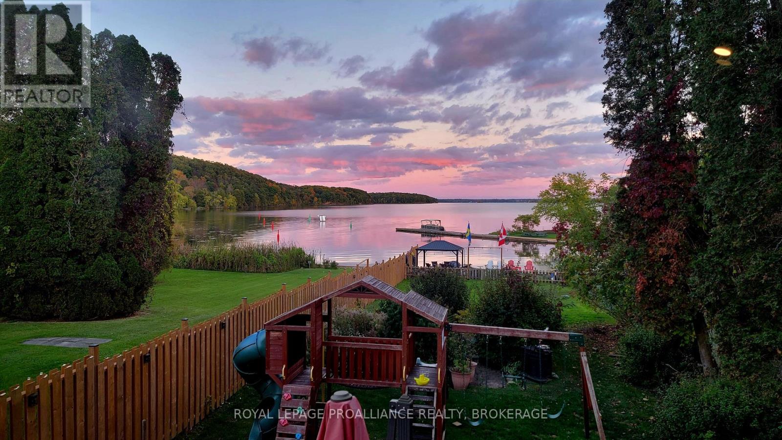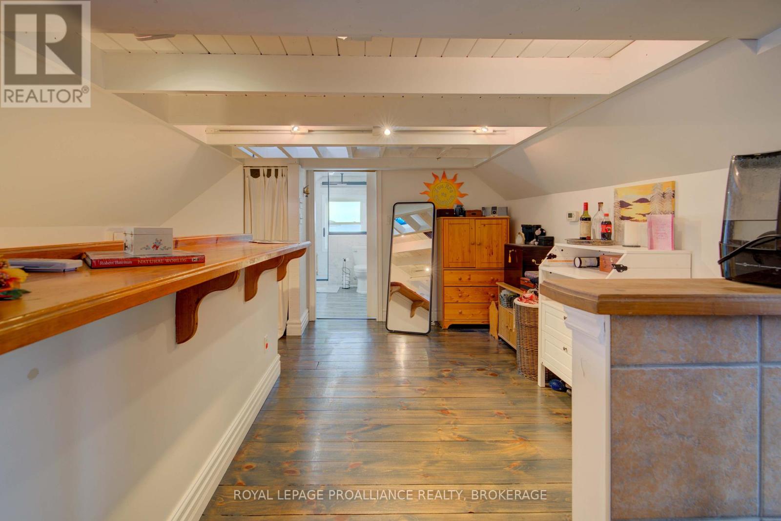 Beautiful home sitting on the western shore of Upper Rideau Lake! This 3+ story home is bright & modern throughout & has been totally renovated over the past 2 years. At the front of the home is a breakfast nook with built-in storage benches & located right next to the gourmet kitchen. This kitchen boasts a 48" Forno gas stove, a 9' island with dishwasher, microwave & wine fridge. The opposite side of the kitchen has a large coffee bar, plenty of storage cabinets & quartz countertops. There is a hidden pantry cleverly located behind a shelving unit that pulls out when access is needed. There is a large living room, a 2pc bathroom, laundry area & a dining room with a wood stove & views over the backyard. Upstairs on the next level is a girls dream bedroom that has an attached 3pc bathroom. Down the hall there is a 4pc bathroom, an additional bedroom & an office with a sitting room that overlooks the lake. This space could be utilized as a bedroom as well. There is access to the main floor from this area via the back stairs. Heading up to the 3rd level you will find yourself in a spacious bedroom suite with a custom built 5pc ensuite bath. This modern and bright bathroom offers a large custom shower built for two that has stunning views over the lake & Foley Mountain. From this 3rd floor bedroom there is a set of pull-down stairs that can be lowered down to allow access to the turret on the upper most level. This turret has a daybed in place and offers a 360-degree panoramic view of the lake, mountain and the village of Westport. There is a full basement for storage & utilities & an attached garage that is currently being used as living space. The backyard is fenced with gates for easy access & safety by the water and is nicely landscaped with a stone patio with a propane stone fireplace, a playground area, hot tub, gazebo by the water, large dock plus a storage shed. This property is a rare gem found in a waterfront town! (id:64974)