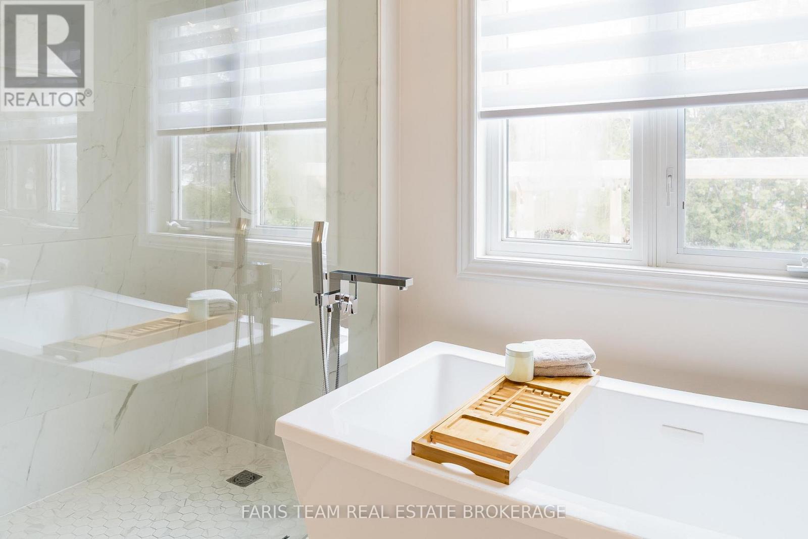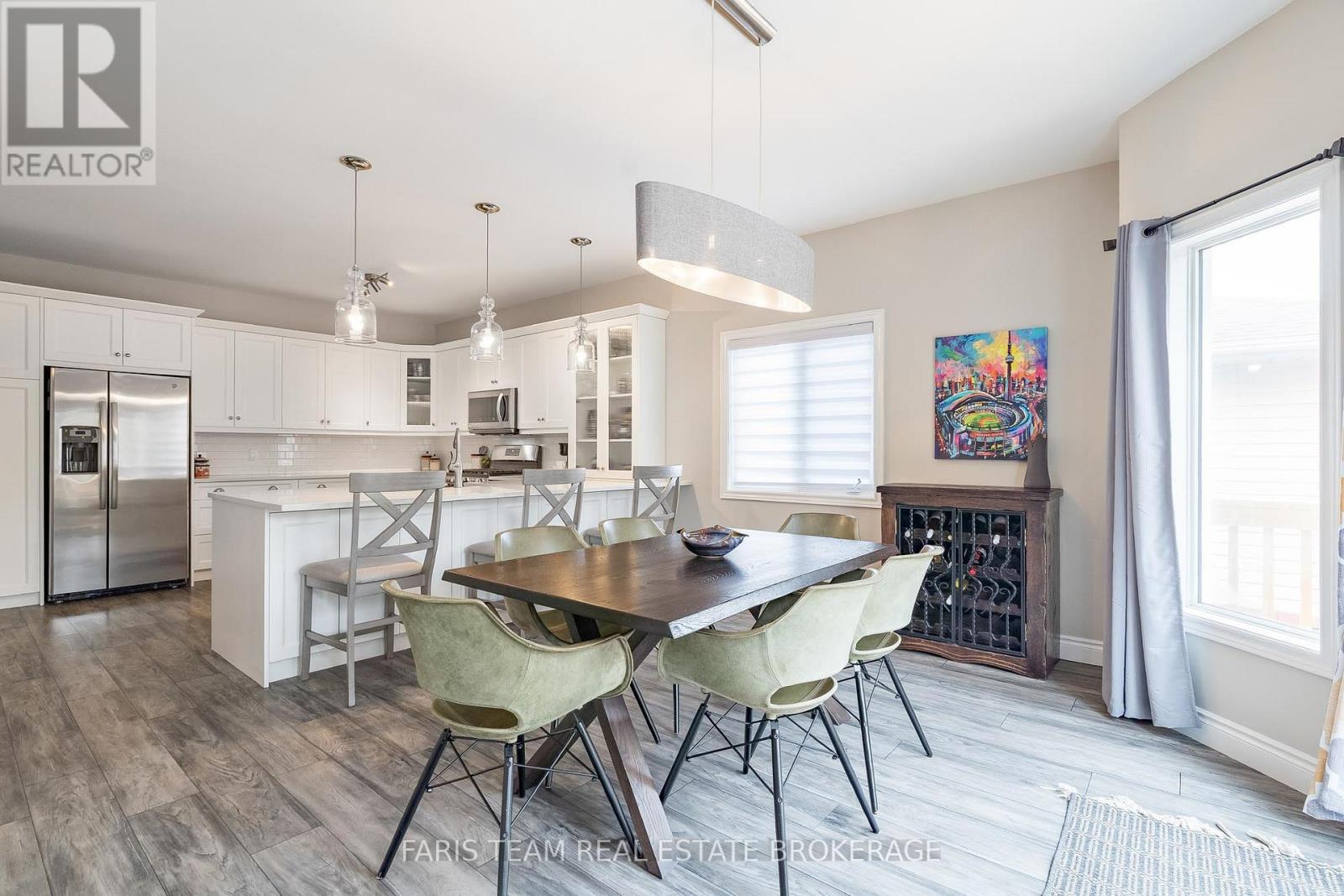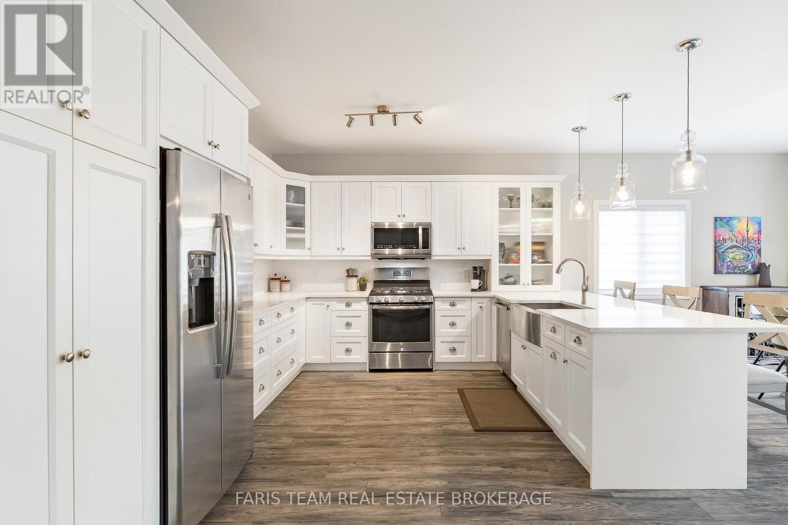 Top 5 Reasons You Will Love This Home: 1) Nestled in one of Wasaga Beach's most sought-after neighbourhoods, this beautifully updated raised bungalow makes an immediate impression with high-end finishes, tall 9' ceilings, a raised multi-purpose den, cozy gas fireplace, vaulted ceilings, and oversized bay windows that bathe every corner of the main level in warm natural light 2) The stunning open-concept kitchen and dining area is the heart of the home, featuring quartz countertops, a farmhouse sink, roll out pantry, and a seamless walkout to a brand new deck, alongside a fully fenced, tree-lined backyard complete with a newer pergola and patio, all backed by a long list of major updates including the driveway, eavestroughs, electrical panel, walkway, flooring, and water softener completed between 2021 and 2025 3) The spacious primary retreat offers a true sense of escape with a generous walk-in closet and an elegant porcelain-tiled 4-piece ensuite, while a second bedroom, a beautifully updated main bathroom featuring a freestanding tub and walk-in shower, and convenient main level laundry with a new washer round out a main level 4) The bright and expansive basement opens a world of possibilities, featuring its own separate garage entrance, a large recreation room anchored by a second gas fireplace, oversized windows that bring in abundant light, two additional bedrooms, a 3-piece bathroom, and ample utility space, everything needed to create a seamless in-law suite or the ultimate flexible living space 5) Step outside and find yourself just a short walk from the sandy beaches of Wasaga and the scenic Nottawasaga River, with trails, schools, parks, and shopping all minutes away, and quick convenient access to Collingwood, Base Borden, and Barrie, a location that truly puts the best of the area right at your fingertips. 2,002 above grade sq.ft. plus a finished basement. (id:64974)