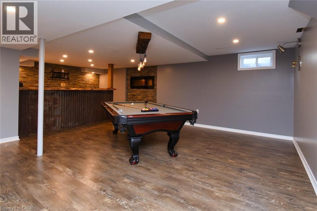 This beautiful 2 storey, 3.5 bathroom sits on pie shape lot in Prime Stoney Creek location. (36.52 x 172) 120 across in the back. Loads of features includes to brand new renovated upstairs bath & ensuite with his/hers sink with quartz counter tops, new flooring, paint, lighting, shower tile, facets. Hardwood floors & vinyl floors through-out (carpet free) beautiful staircase with iron spindles. Large sunken family room with gas fireplace. Bright large Eat-in Kitchen with stainless appliances. Totally finished lower level with vinyl flooring, pot lights, 3 piece bathroom, electric fireplace, wet bar and home theatre screen and projector. Beautiful modern kitchen with quartz counter tops. Heated garage. Large private pie shaped backyard to entertain your family & friends. Minutes to highway Toronto & Niagara, Costco and Lake. A must see, turn key move in condition. (id:64974)