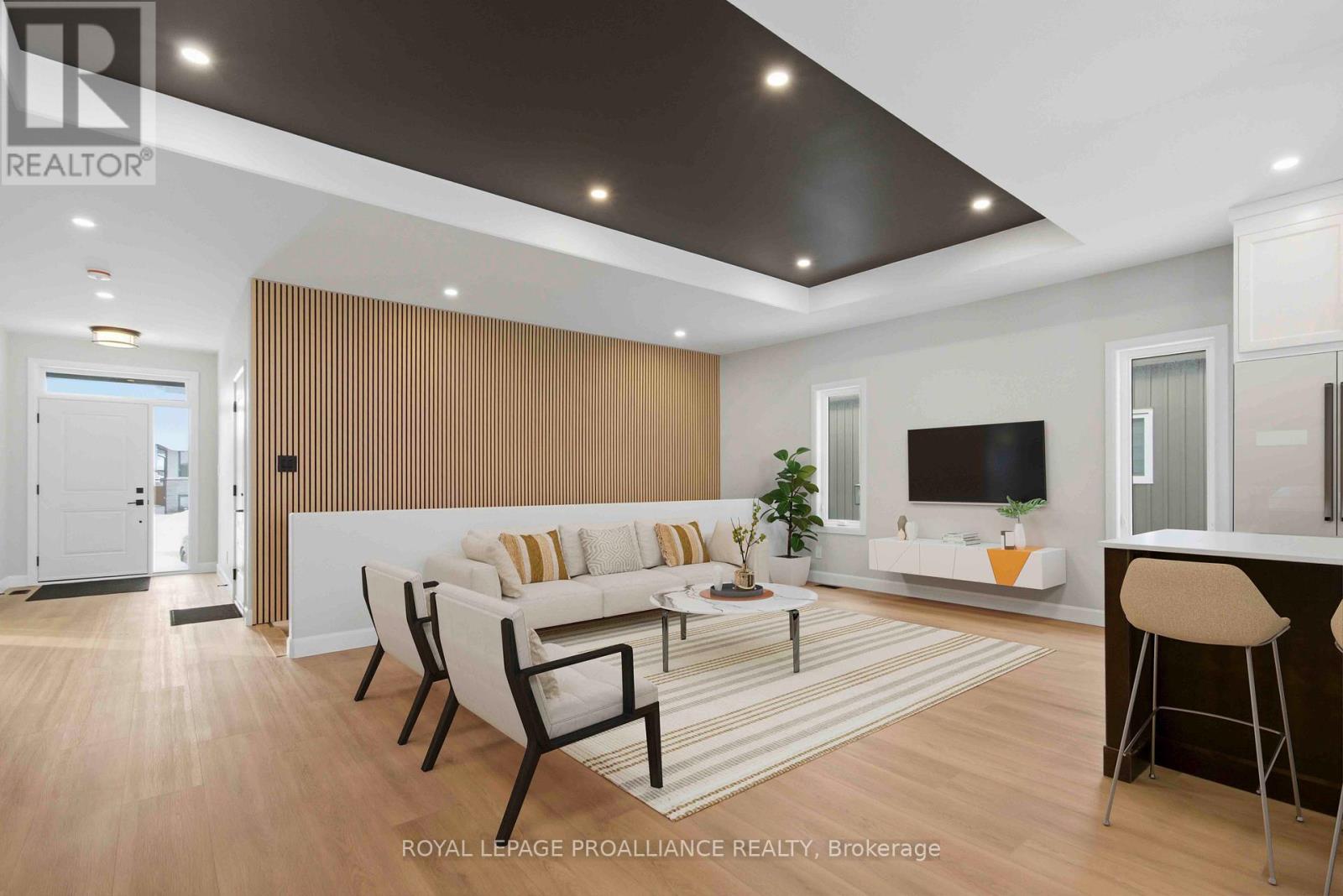 Buy now before Orchard Lane is sold out! This is the largest of the last two homes being built by Frontier Homes in the very desirable Orchard Lane development - a subdivision of only detached single family homes with its own park. A bright home with three beds & two baths on the main floor. Approximately 1476 sq ft, high quality construction this beauty has upgrades such as - stunning kitchen with quality cabinets to the ceiling with crown moulding, island, beautiful counter tops & corner pantry, wood grain low maintenance flooring, gorgeous ensuite bath with glass & tile shower, double vanity, more room on the main floor because there is a finished laundry room on the lower level. Lower level also has the potential for two more bedrooms, large bathroom, & recreation room. Outside we maintain the high standard with sodded yard, interlock walkway, front porch, large deck with built-in bluetooth speakers and no neighbours behind. This stunner is located in the very popular Orchard Lane subdivision with only single family detached homes with its own park. 10 minutes or less to CFB Trenton, Marina, Walmart, Golf Course, 401 & the Trent Severn Waterway. Excellent opportunity here for qualifying First-Time Home Buyers (FTHB) to save "Big" by receiving the GST rebate on newly built homes!! (id:64974)
