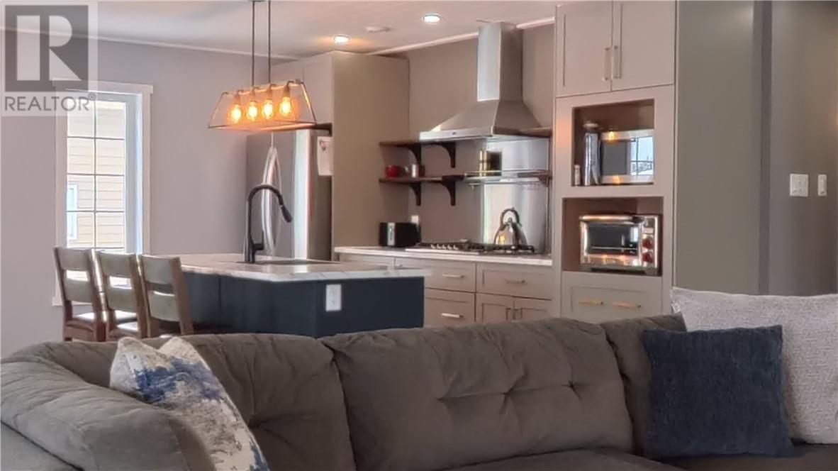 Modern & Stylish in Little Current - This beautifully maintained, recently built bungalow offers the perfect blend of comfort, style, and convenience. Ideally situated within easy walking distance of all Little Current amenities—including the grocery store, hospital, and downtown waterfront—this 2022/23 home provides over 1,200 sq. ft. of accessible, open-concept living space. Featuring two spacious bedrooms and plenty of storage, it’s ideal for those seeking the ease of single-level living. Efficient Kerr heat pumps ensure year-round comfort, complemented by a cozy Napoleon propane fireplace for those winter nights. Combining modern design, energy efficiency, and an unbeatable location, this home is ready to welcome its new owners. (id:64974)