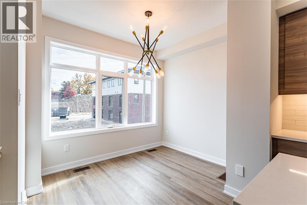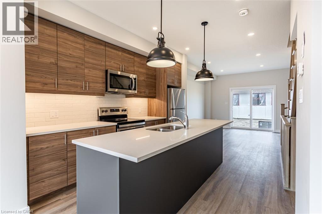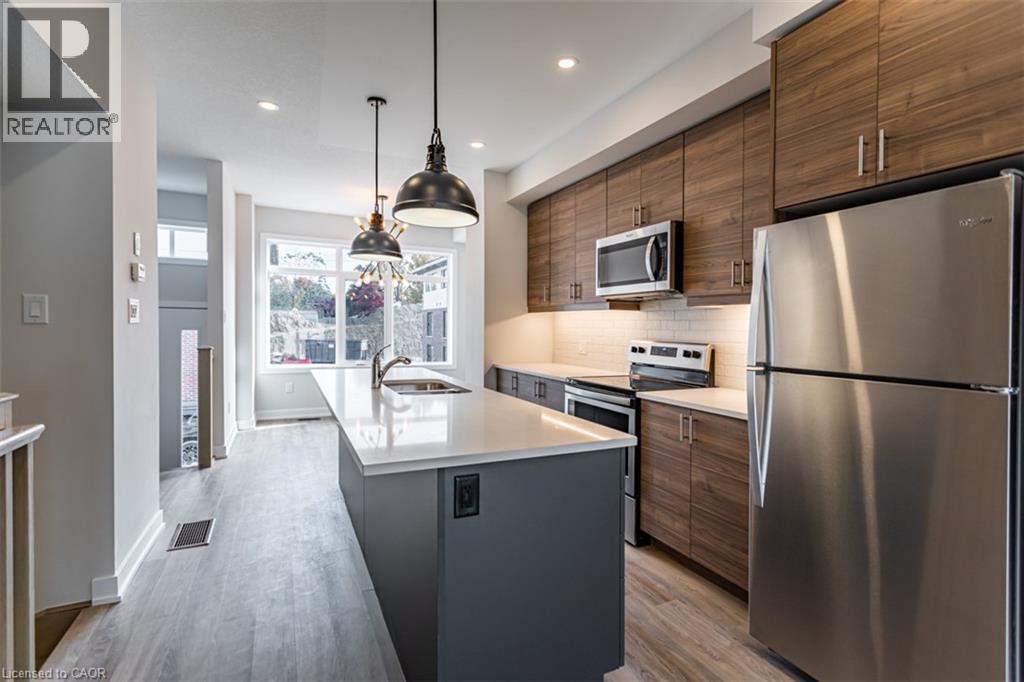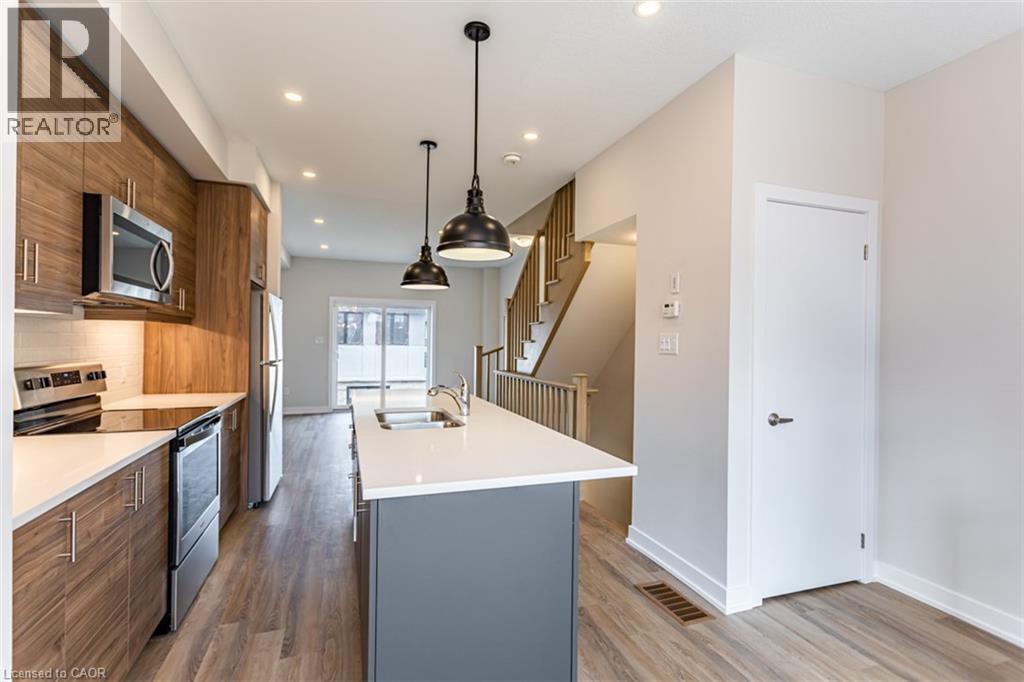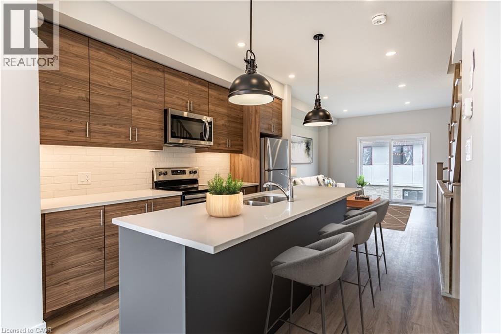 Welcome to Monterey Heights – a DiCenzo Homes community! Monterey Heights will be a preferred address for active families looking for the perfect blend of urban convenience and outdoor enjoyment and hometown. This high-end, beautifully finished home contains upgraded features such as quartz countertops with under-mount stainless-steel sink, kitchen island with breakfast bar, brand new stainless steel kitchen appliances, designer subway tile backsplash and under cabinetry lighting, custom California Shutter window coverings, pot lights and modern light fixtures on main floor. Located in a sought-after, family-friendly neighbourhood, this trendy 3-level townhome features loads of living space, main floor balcony, walk-out access to backyard, single—car driveway and garage with additional visitor parking available. The home includes extended 9- foot ceilings on the main floor, which gives this home a spacious open concept from the kitchen to the great room, ideal for entertaining. Carpet-free living on main and lower levels. Large windows allow for light-filled living spaces within the home. With a stucco and brick exterior and great curb appeal, this townhome is truly stunning. Conveniently located across the street from Ancaster’s Smart Centre (Walmart, Longo’s, Good Life, Lowe’s etc.), close to many parks, schools and Hamilton’s Health Sciences hospital network. Convenient highway access makes its location perfect for commuters. It is also a 15-minute drive to McMaster University, Mohawk College and Redeemer College, and is within walking distance to public transit (id:64974)