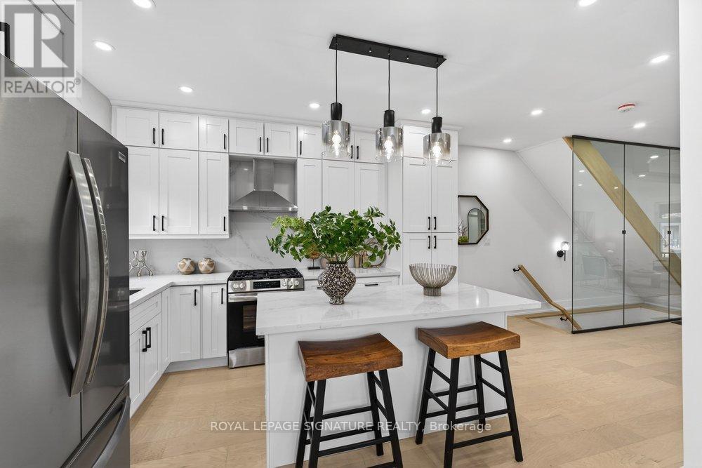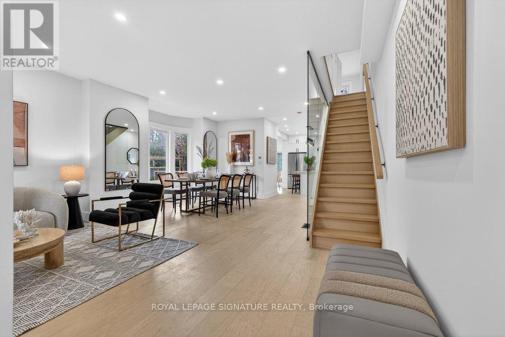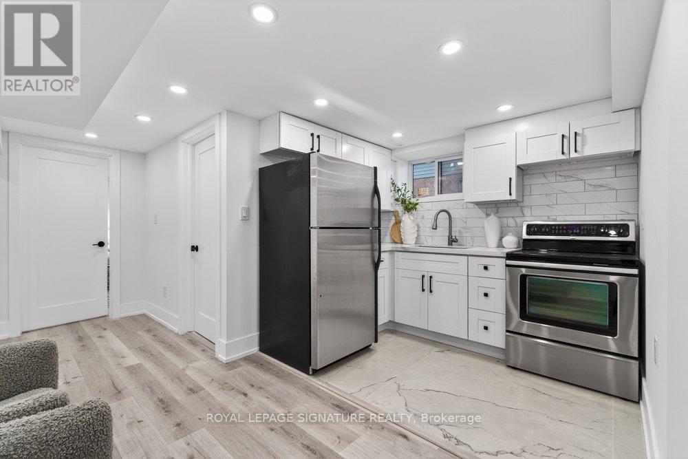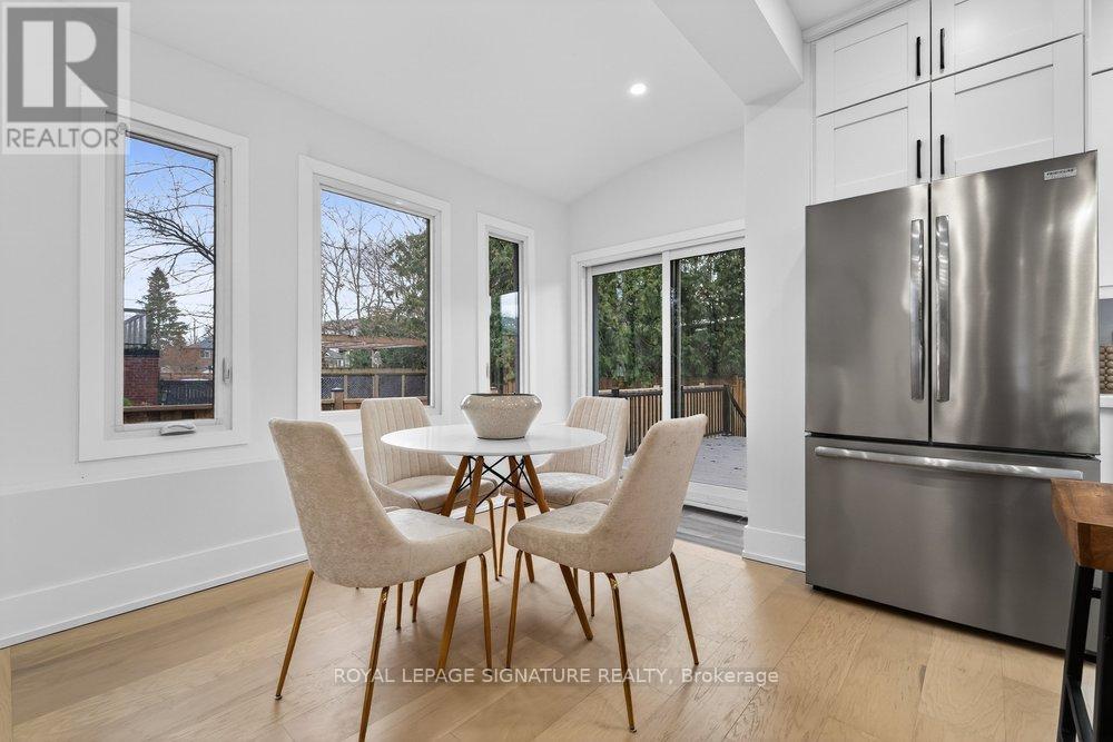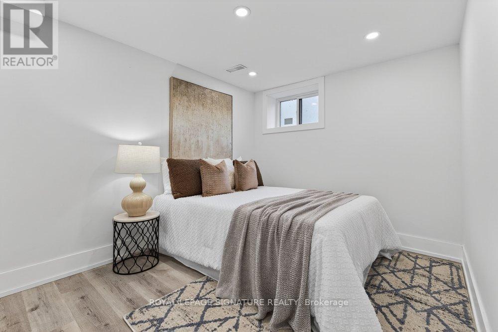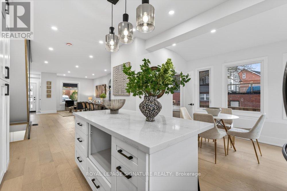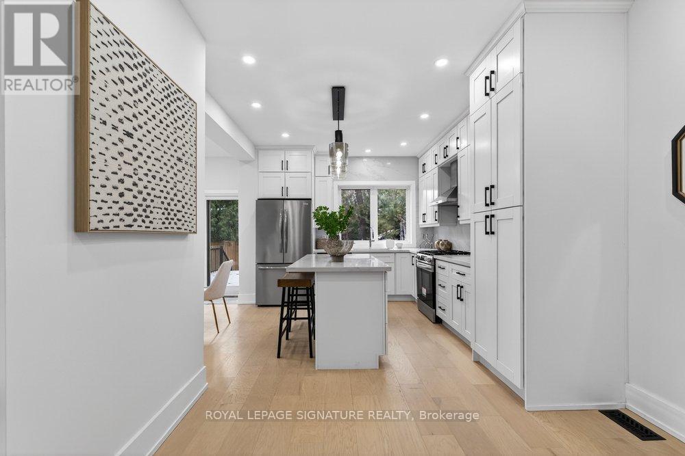 Immaculately Fully Renovated Detached Home on a 30' Lot in East York With Private Driveway & Modern Finishes! Step into this fully renovated, thoughtfully designed home, where modern elegance meets everyday comfort. Situated on a 30' lot with a private driveway, this stunning property boasts high-end upgrades and stylish finishes throughout. The open-concept main floor features engineered hardwood flooring, LED lighting, and expansive windows that fill the space with natural light. A beautiful bay window enhances the living and dining area, creating a warm and inviting ambiance. The gourmet kitchen is a chefs dream, showcasing quartz countertops and backsplash, a center island, stainless steel appliances, and modern fixtures. Enjoy casual meals in the cozy breakfast area, surrounded by windows, and a walkout to a large deck and privacy-fenced backyard, perfect for entertaining. Upstairs, the primary bedroom exudes charm with its wall-to-wall custom built-in closets and a picturesque bay window. Two additional bright and spacious bedrooms with large windows and ample closet space, a convenient second-floor laundry, and a luxurious 5-piece bathroom featuring a double vanity, glass-enclosed bathtub, and beautifully tiled walls complete this level. The fully finished lower level offers incredible versatility with its separate entrance, an open-concept layout, a full kitchen with quartz countertops and stainless steel appliances, a spacious recreation/dining area, an additional bedroom, and a 4-piece bathroom ideal for extended family or rental potential. Nestled in a family-friendly East York neighborhood, this home is steps from parks, schools, transit, and all the fantastic amenities the area has to offer. Don't miss this incredible opportunity to own a beautifully renovated home in a prime location! (id:64974)
