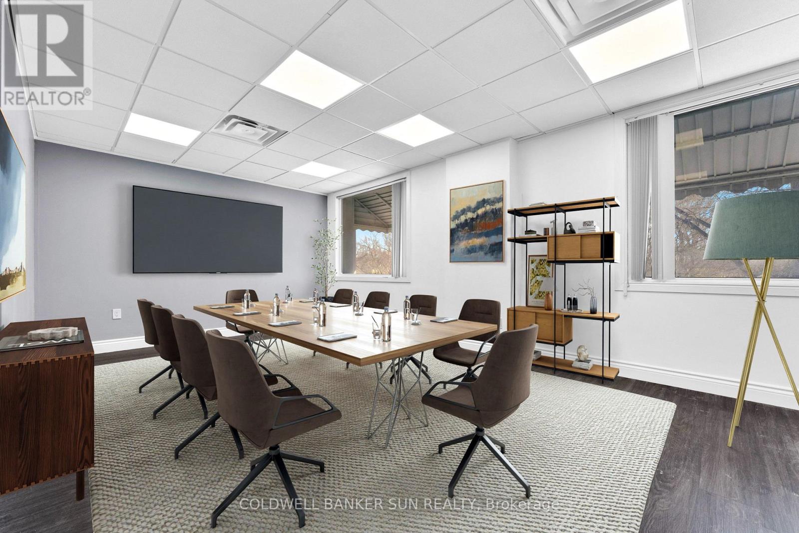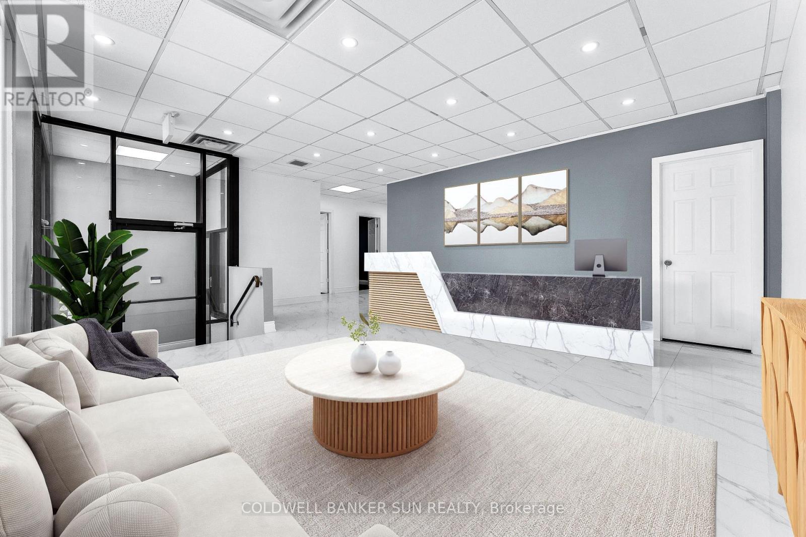 Beautifully Renovated Central Commercial Zone C5 Unit with Mixed-Use Zoning! This spacious 3487.50 sq. ft. main-floor unit offers multiple offices, a reception area, a common work area, a meeting room, a filing room, A rough in kitchenette two bathrooms, and two staircases leading to city-approved indoor 5 +legal parking. Over $300,000 has been invested in renovations, including five legal indoor parking spots equipped with two HRVs, a CO sensor, an automatic door opener, and a separate heated furnace. Additional upgrades include a new flat roof with warranty, a new furnace, a new garage door, updated flooring, fresh paint, and more. A fantastic opportunity for a versatile commercial space! The current zoning allows the following uses- an appliance sales and service shop, an artist studio, an assembly hall, an automobile service station a bake shop, a Bank or financial institution, a bar or nightclub, a brewers retail outlet, a business or professional office, a catalogue store, a commercial club, a commercial school, a convenience store, a customer contact centre office, a department store, a drug store, a dry cleaner's distribution station, a dry cleaning establishment, an eating establishment, a finance office, a florist shop, a fraternal lodge or association, a furniture store, a health club, a laundry shop, a medical clinic. (id:64974)