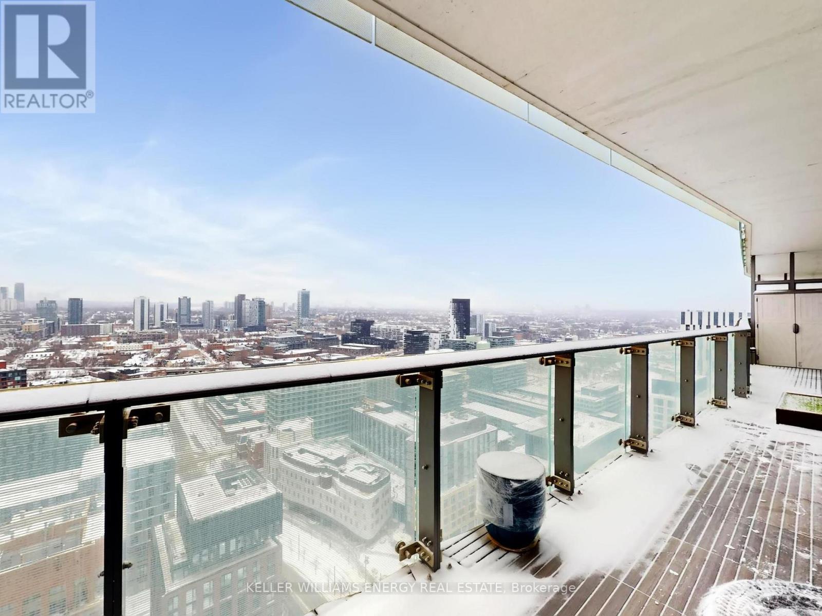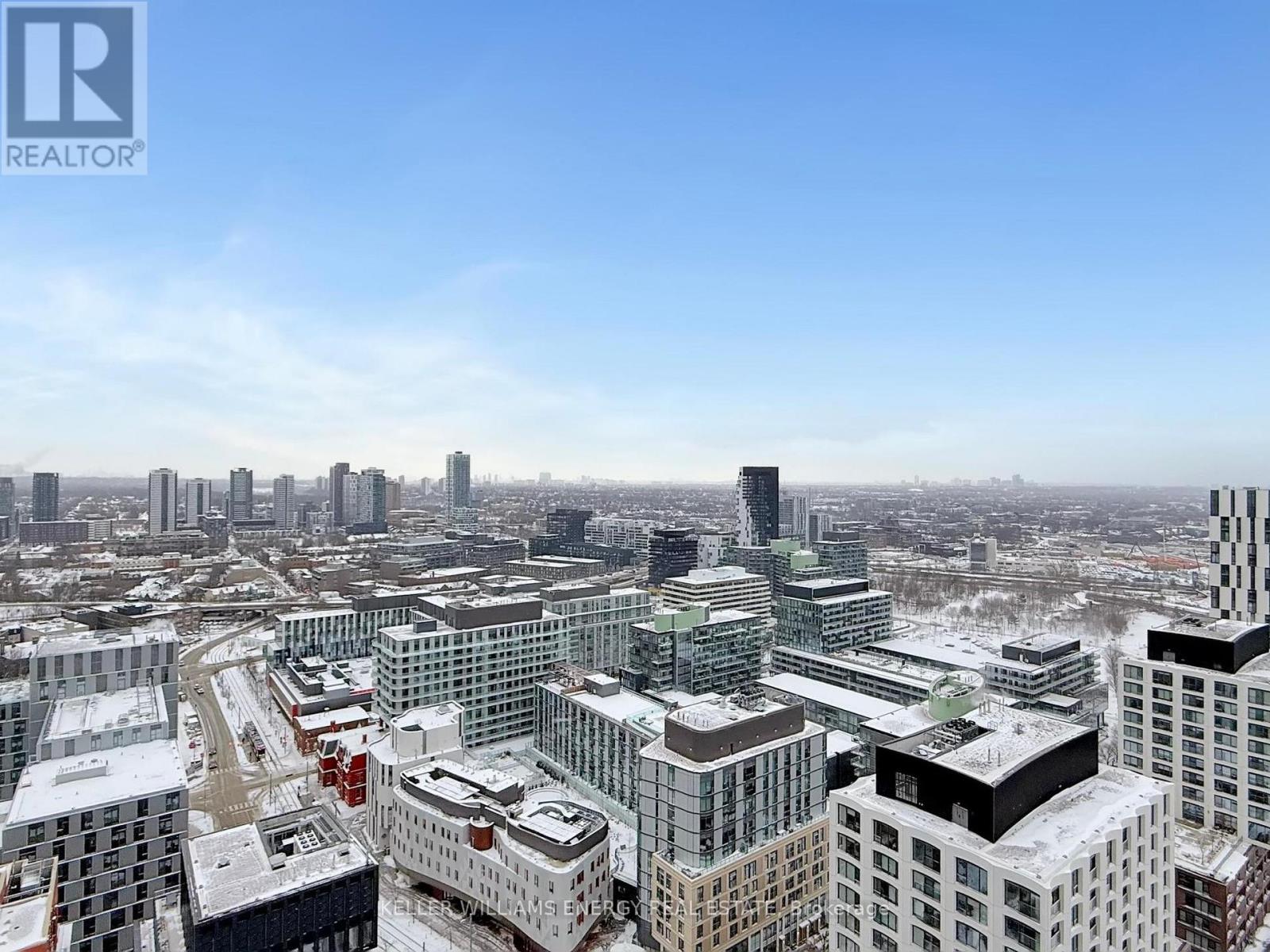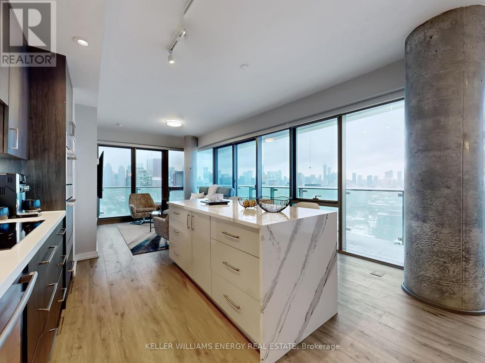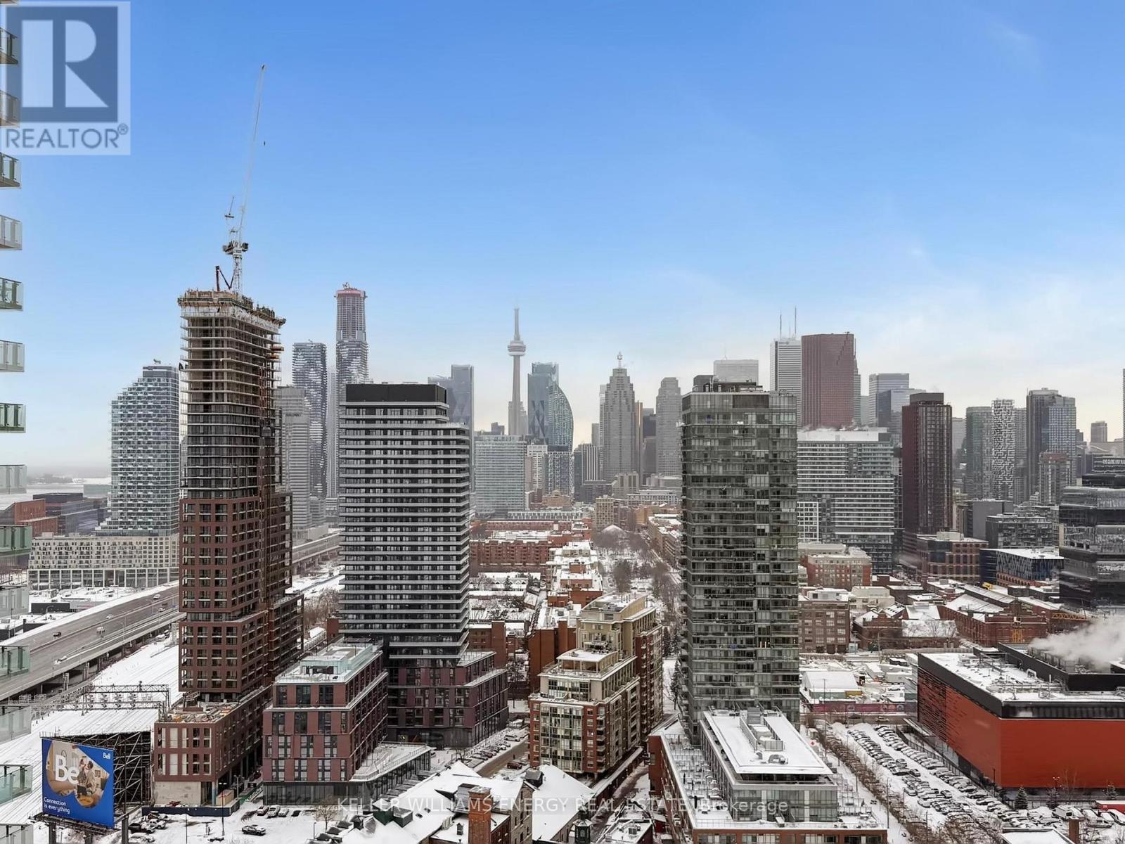 Welcome to the sought-after Gooderham Building in the heart of the Distillery District. This stunning, renovated corner suite features a spacious split 2-bedroom, 2-bathroom layout and is perched on the 29th floor, offering breathtaking north- and west-facing views of the CN Tower, city skyline, and glistening lake. The open-concept living space is filled with natural light through floor-to-ceiling windows and includes two walkouts to an expansive wrap-around balcony-perfect for entertaining or unwinding while enjoying panoramic views. The suite has been thoughtfully upgraded with a renovated kitchen featuring new appliances, lighting, and luxury vinyl plank flooring, along with custom window coverings, expansive built in storage, updated bathroom vanities, and professionally installed patio flooring. Residents enjoy exceptional amenities, including a fully equipped gym, outdoor pool, rooftop deck with BBQs, yoga room, and sauna. Located in the historic Distillery District, you are steps from boutique shops, cozy cafes, brewery pubs, and world-class dining. Convenient access to the streetcar loop, DVP, and Gardiner Expressway makes commuting effortless, while a short stroll brings you to St. Lawrence Market, the YMCA, Goodman waterfront trail, Corktown park, theatres, marketplaces, and the new Biidassige Park in the Port Lands. Live, work, and play in one of Toronto's most vibrant neighbourhoods-this is city living at its finest. (id:64974)