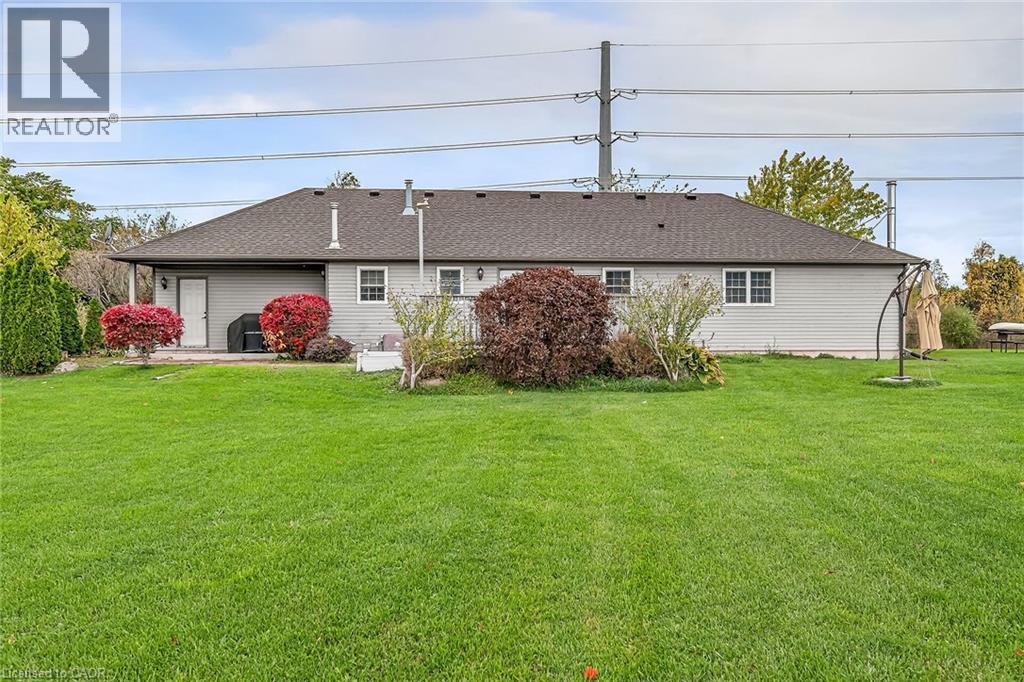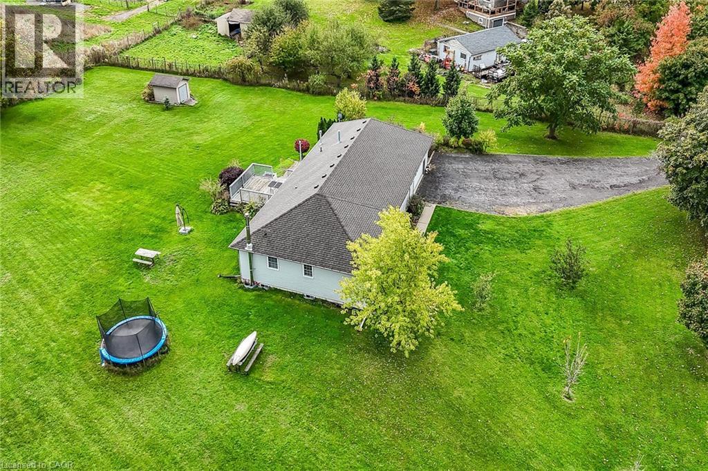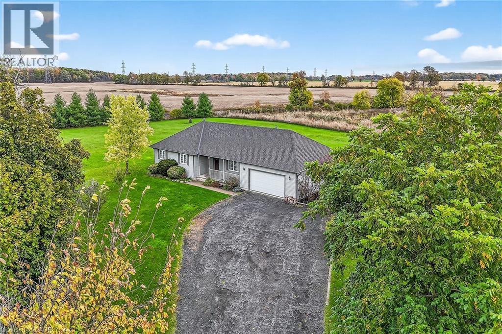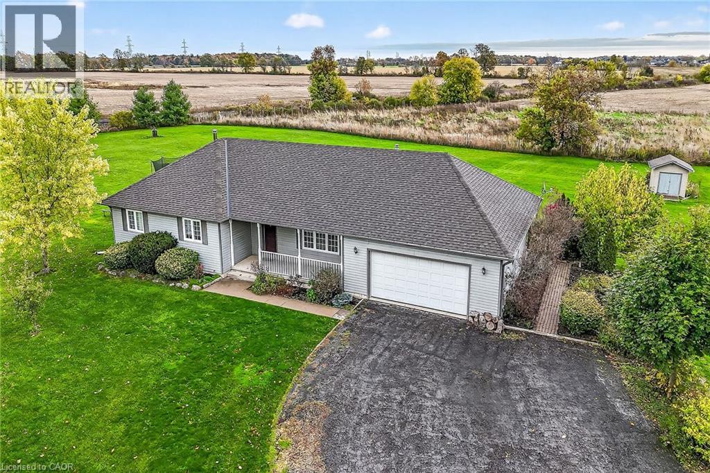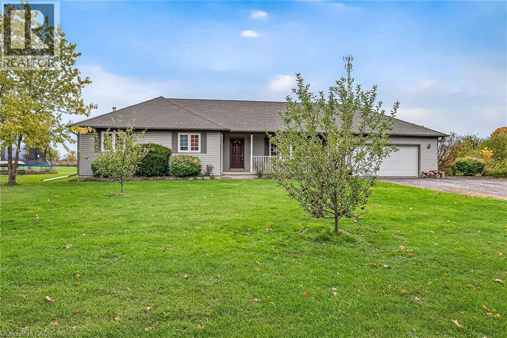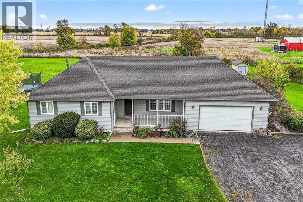 Well cared for fully finished 3 bedroom, 2.5 bath bungalow with two fireplaces (gas & wood stove) situated on fenced 2.24 acre property. Large driveway with ample parking for approximately 10 cars. House is set back a good distance from road & contains two separate entrances (from side of house & from inside garage) to lower level allowing for potential future in-law set up capability. Crown moulding & hardwood flooring is featured throughout the living room, hallway & all bedrooms. Eat-in kitchen showcases oak kitchen cabinets, ceramic backsplash, breakfast bar island, built-in oak desk plus built-in oak hutch/buffet combo, hardwood flooring & patio door to deck & rear yard. Corner gas fireplace with lovely oak surround in living room. Generous sized primary bedroom with walk-in closet & 4 piece ensuite with separate shower & jetted tub. Convenient main floor laundry room provides access to lower level & covered patio & side yard. Lower level offers additional living space with an oversized rec room with laminate flooring & a WETT certified wood stove, den with built-in shelving & a cozy game room plus utility & storage rooms. Newer furnace & central air (2019). Country living with close proximity to main road. Several nearby amenities. Only about a 20 minute drive to Upper Centennial Parkway in Stoney Creek via Highway 20. (id:64974)