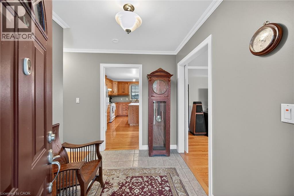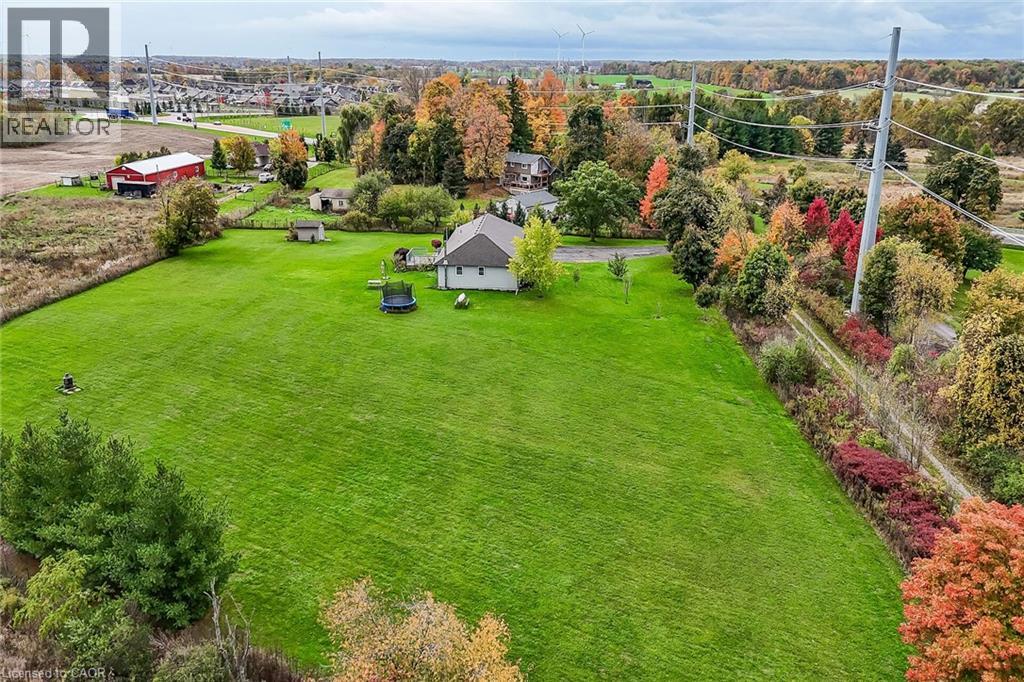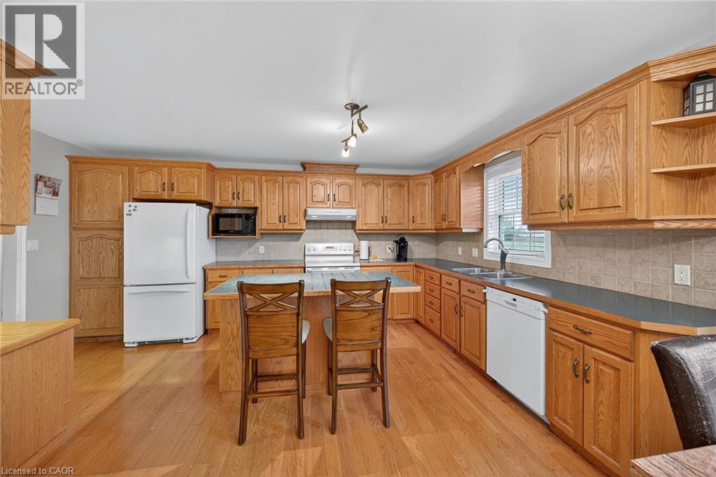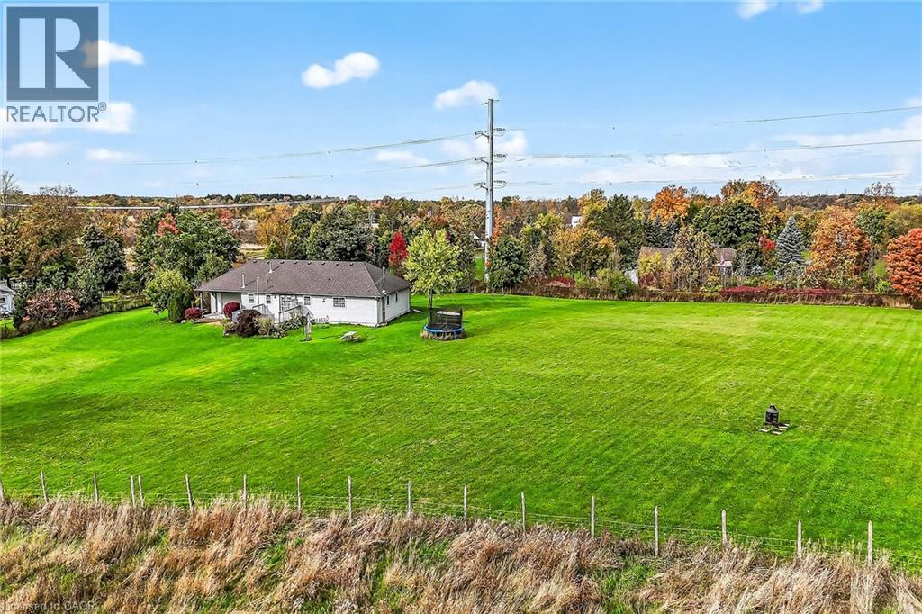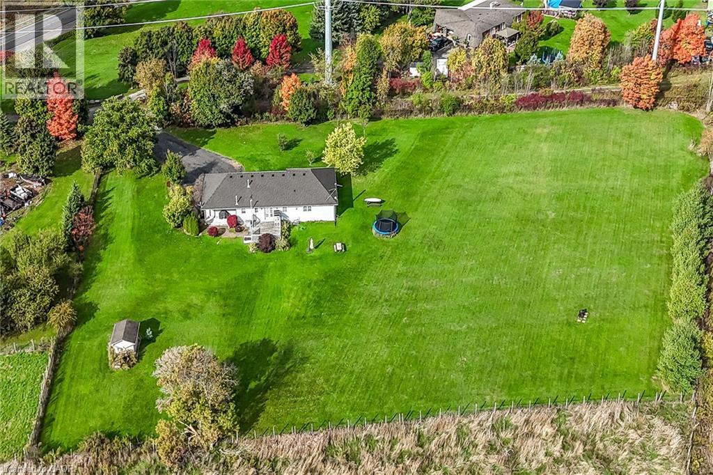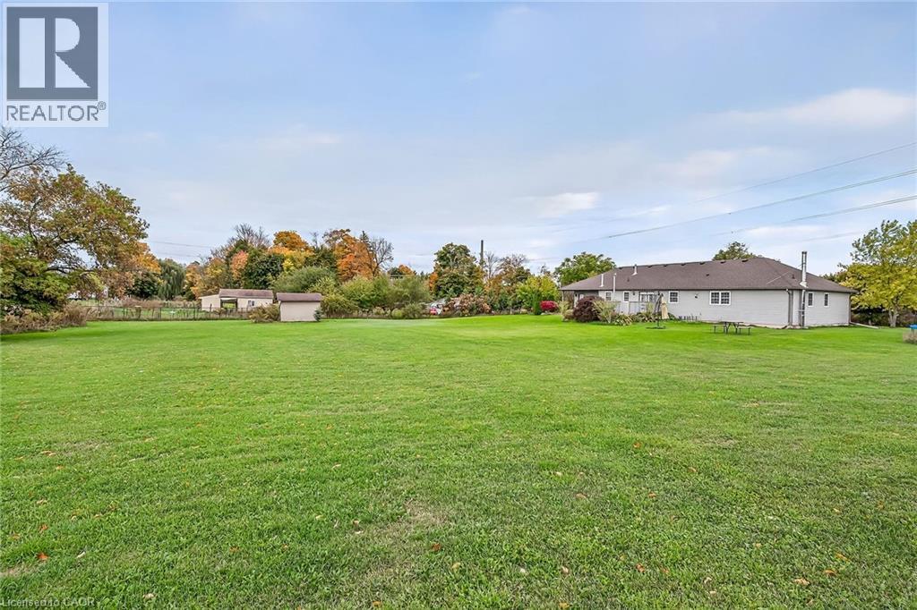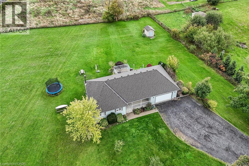 Well cared for fully finished 3 bedroom, 2.5 bath bungalow with two fireplaces (gas & wood stove) situated on fenced 2.24 acre property. Large driveway with ample parking for approximately 10 cars. House is set back a good distance from road & contains two separate entrances (from side of house & from inside garage) to lower level allowing for potential future in-law set up capability. Crown moulding & hardwood flooring is featured throughout the living room, hallway & all bedrooms. Eat-in kitchen showcases oak kitchen cabinets, ceramic backsplash, breakfast bar island, built-in oak desk plus built-in oak hutch/buffet combo, hardwood flooring & patio door to deck & rear yard. Corner gas fireplace with lovely oak surround in living room. Generous sized primary bedroom with walk-in closet & 4 piece ensuite with separate shower & jetted tub. Convenient main floor laundry room provides access to lower level & covered patio & side yard. Lower level offers additional living space with an oversized rec room with laminate flooring & a WETT certified wood stove, den with built-in shelving & a cozy game room plus utility & storage rooms. Newer furnace & central air (2019). Country living with close proximity to main road. Several nearby amenities. Only about a 20 minute drive to Upper Centennial Parkway in Stoney Creek via Highway 20. (id:64974)