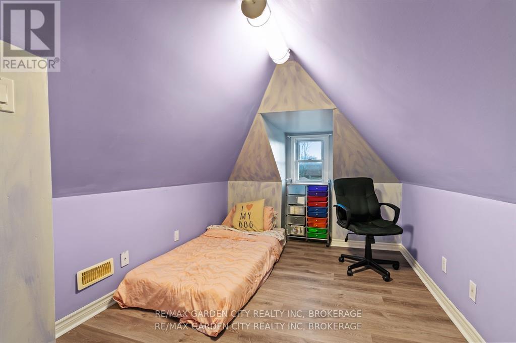 Welcome to this beautifully updated 1.5-storey home with a detached garage, ideally situated in a quiet, family-friendly neighbourhood. This move-in-ready 3+1 bedroom home offers the perfect blend of comfort, functionality, and modern updates-there's truly nothing to do but kick your feet up, relax, & enjoy. The heart of the home is the large, updated kitchen featuring newer appliances, modern cabinetry, sleek countertops, and a peninsula island that opens seamlessly to the main living area, making it ideal for everyday living and entertaining. Large, windows flood the space with natural light, creating a warm and inviting atmosphere. To complete the main floor, enjoy the convenience of a spacious primary bedroom with a large walk-in closet, along with a generous four-piece bathroom. The second floor offers two additional bedrooms, perfect for children, guests, or home office space. The finished basement expands your living options with a comfortable family room, an additional bedroom, & a convenient two-piece bathroom, functional laundry room, plus a walk-up to the exterior for added flexibility. Recent updates include newer windows, doors, flooring, trim, bath, kitchen, freshly painted & a new brand new furnace 12/2025, providing peace of mind & energy efficiency. Step outside to a fully fenced backyard, ideal for pets, kids, and entertaining. Enjoy summer gatherings on the large deck and patio area, along with a dedicated garden space for the green thumb in the family. Both the detached garage & shed are equipped with hydro, creating endless possibilities for hobbies, workshops, home-based businesses, or leisure space. A large double-wide driveway offers parking for 6+ vehicles. Conveniently located close to shopping, hospitals, parks, schools, library, public transit, & quick access to Hwy 406, this home truly checks all the boxes. Carefree living at its finest, do not miss your chance to make this home yours...Book an appointment to view today! (id:64974)