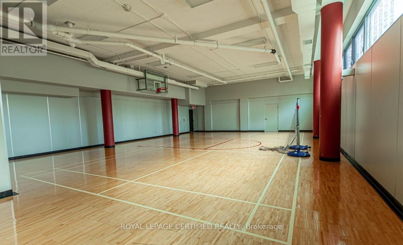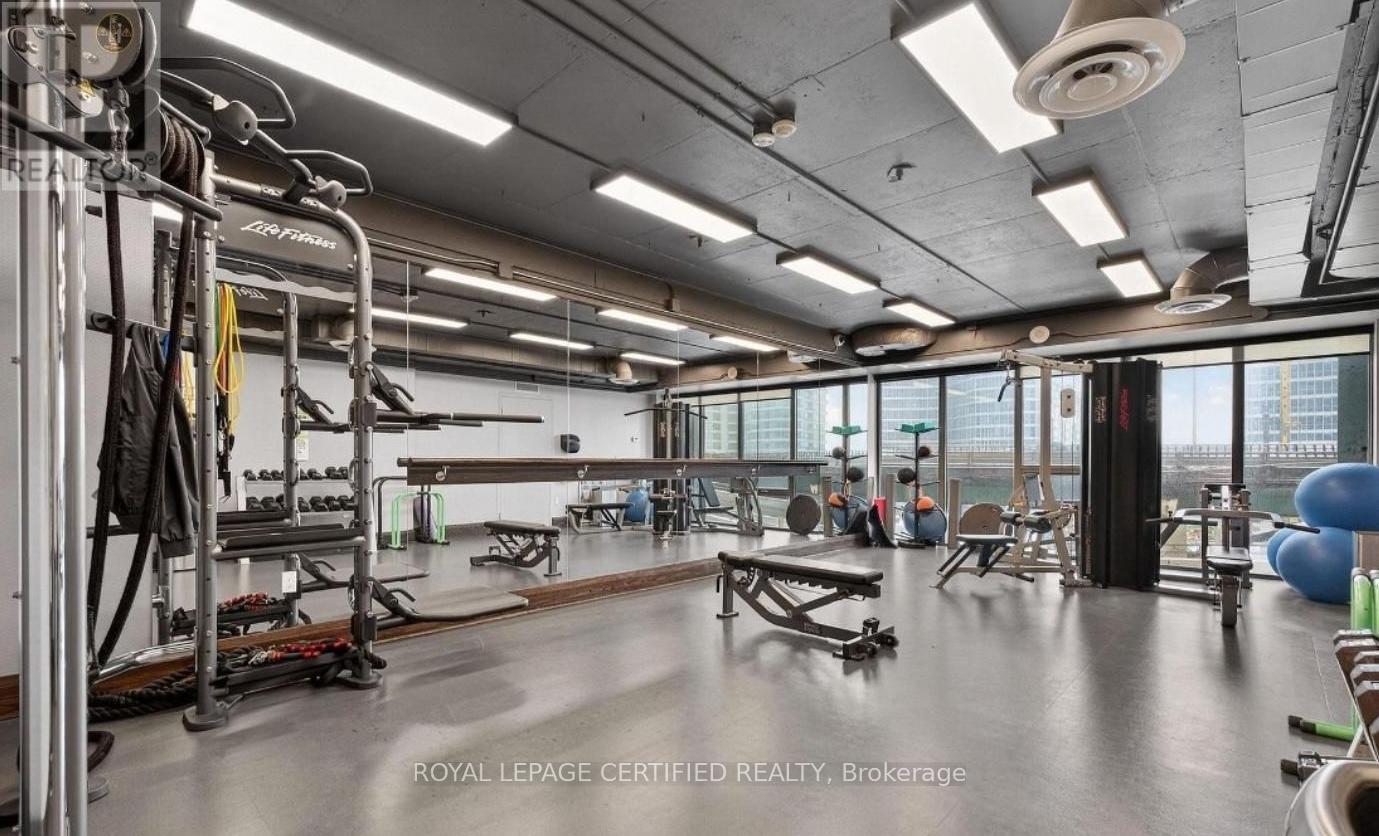 Enjoy unobstructed city and lake views from this 1+Den suite offering 741 sq ft + a large balcony! One of the largest 1+1 layouts in the building, this bright and spacious unit features an open-concept living and dining area with laminate flooring throughout, a generous den ideal for a home office, and a well-appointed kitchen with granite countertops. The unit is filled with natural light and includes a large bathroom and ample living space and functionality. Premium building amenities include 24-hour concierge, visitor parking, indoor pool, gym, and more. Prime location with direct access to the PATH system, steps to Longo's, LCBO, TD Bank, and all daily conveniences. Easy access to highways makes commuting effortless. (id:64974)