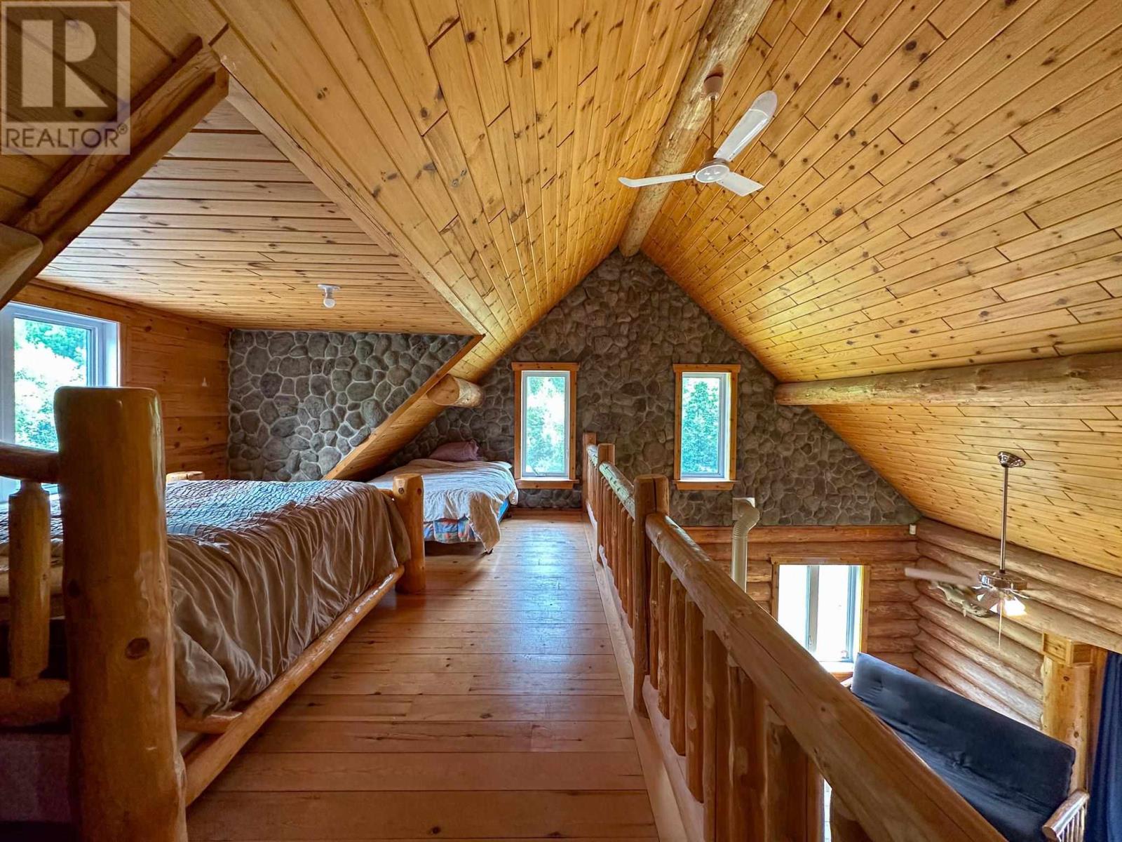 Discover your log home paradise! Nestled on 16 serene acres along Storm Bay Road, this unique property boasts a boat launch and beach nearby. The 3150 sq ft log home, built in 1995 as a showpiece, offers 4 bedrooms, 3 bathrooms, and a loft space providing plenty of room for your family and guests. The country-style kitchen has beautiful pine cabinets, complemented by tile countertops and built-in appliances and is centered around a beautiful butcher block island. Adjacent to the kitchen is a spacious dining room with access to the large back deck, making entertaining a breeze. The living room is a cozy oasis with vaulted ceilings, a propane fireplace, and stone accents that flow into the upper loft. Convenience is key with main floor laundry, 3 pc bathroom, large entry way and two bedrooms on the main level. The second level features two large, oversized bedrooms and a 230 sq ft loft space. The primary bedroom is a true retreat with a walk-in closet, 4-piece bathroom featuring a soaker tub, and a private balcony overlooking the expansive deck below. Outside, the well-maintained exterior welcomes you with a generous 50'x55' cedar deck, ideal for enjoying the picturesque surroundings. The single stall garage comes complete with an attached workshop, perfect for DIY enthusiasts or hobbyists. Don't miss the opportunity to call this log home yours. Features: Drilled well, septic system(1995), Hydro, shingles (2010), patio doors and triple pane windows (2008/2009) Chattels: 2 Fridges, Built in stove, over and dishwasher, washer, dryer, all window coverings, butcher block island, patio furniture. Electrical: 200 Amp Possession: 90 days Taxes: $1761.18 for 2023 Heat: Propane forced air (2004) Heat Costs: $2209.00 Rental items: Alarm & Propane tank (id:64974)