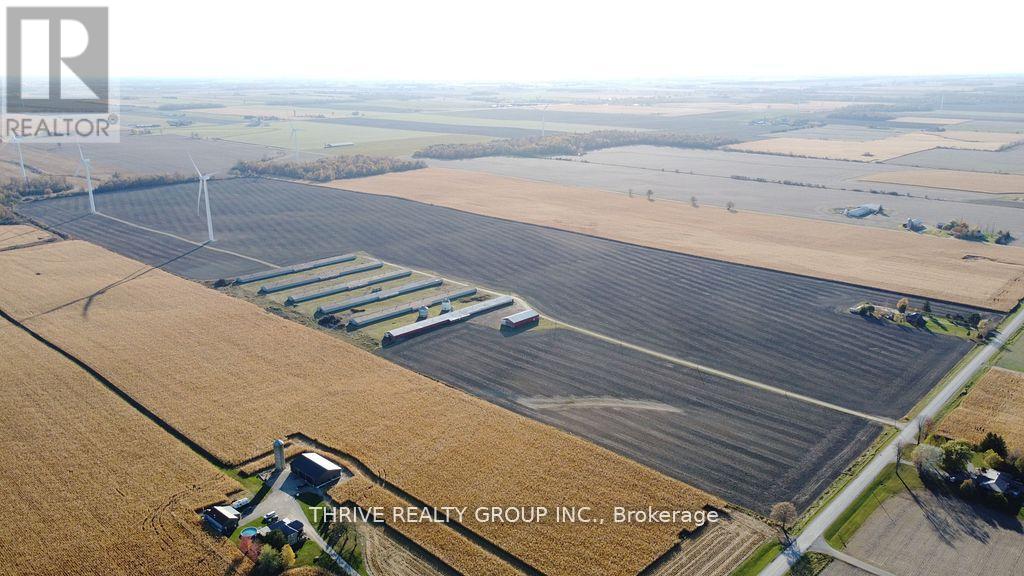 152 acres featuring 138 workable acres of silty clay loam soil. Systematically tiled every 30ft. The property includes a 48' x 104' drive shed, 6 identical 40' x 450' barns, two storage bins with a combined capacity of ~20,000 bushel, and a pump house including an auto-start diesel generator. Drive shed and barns are serviced by a 1000-amp hydro service and two 90'+ wells. The two wind turbines on the property produced ~$39,650 of income in 2025. (id:64974)
