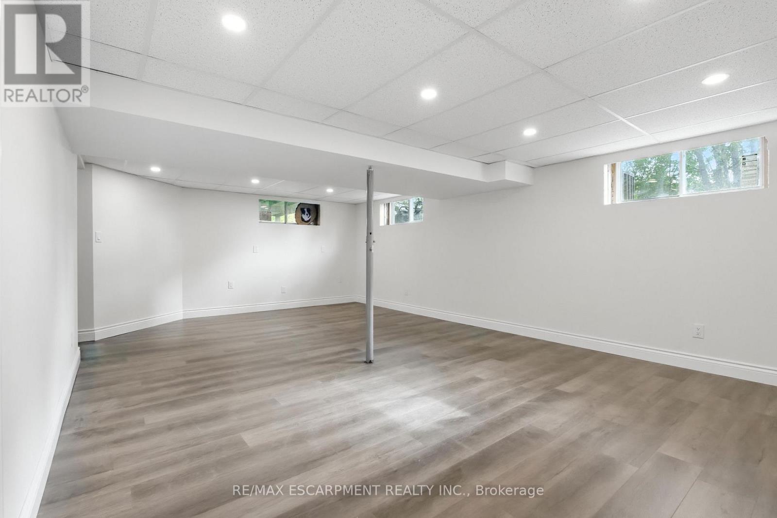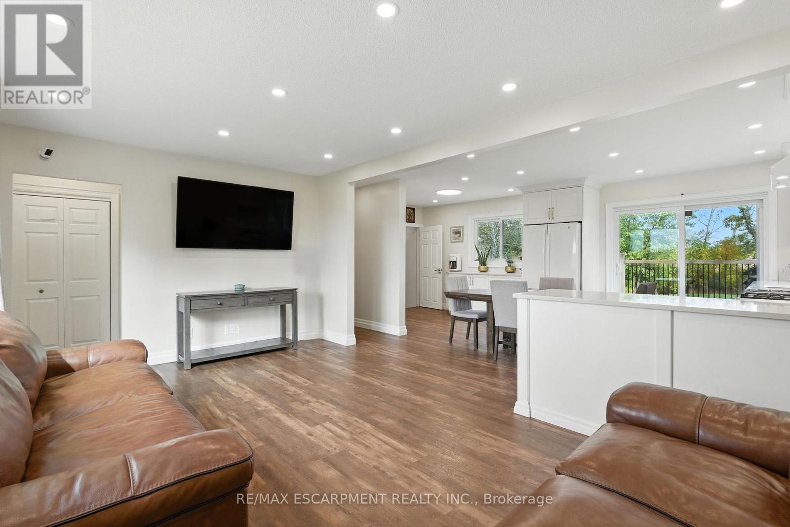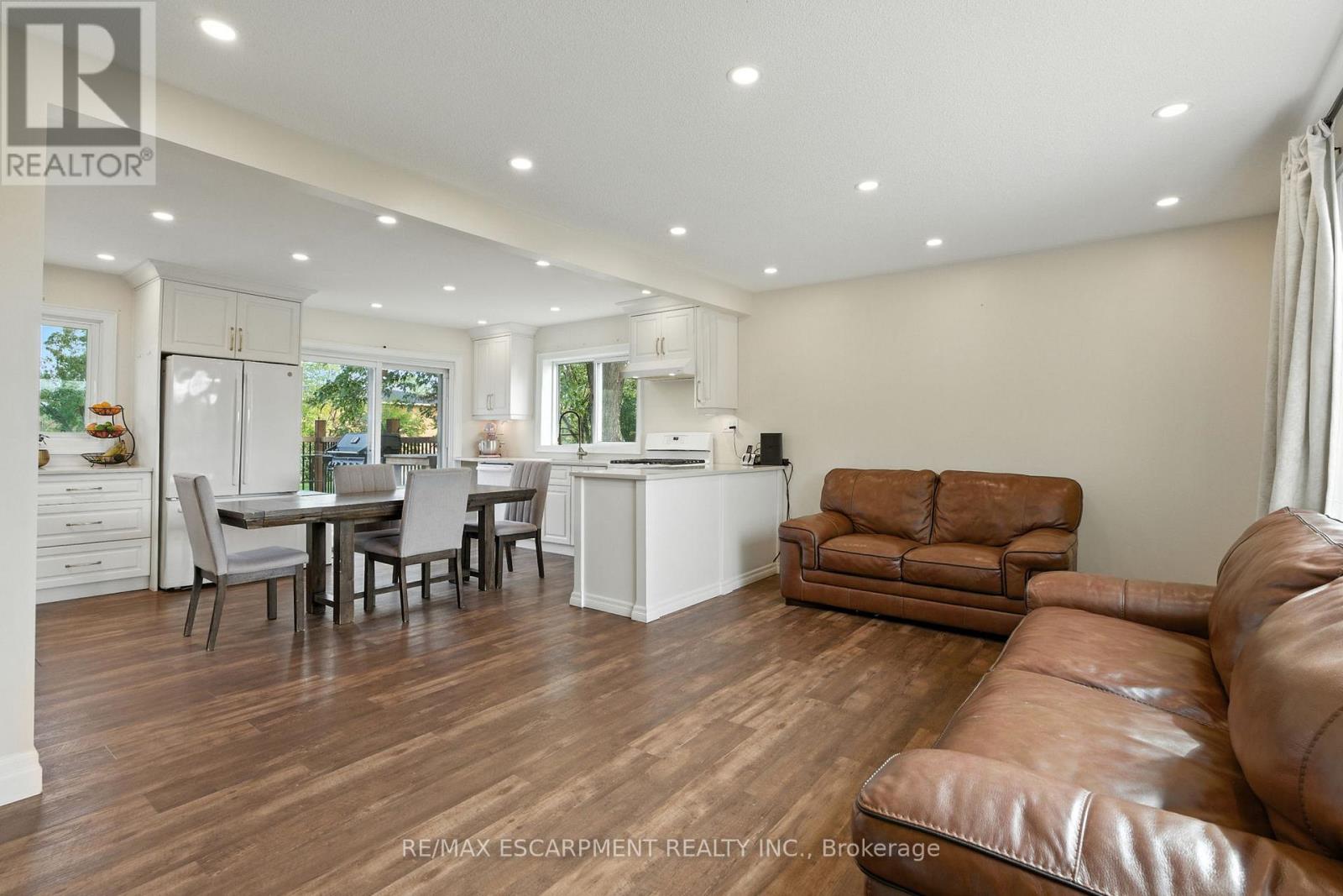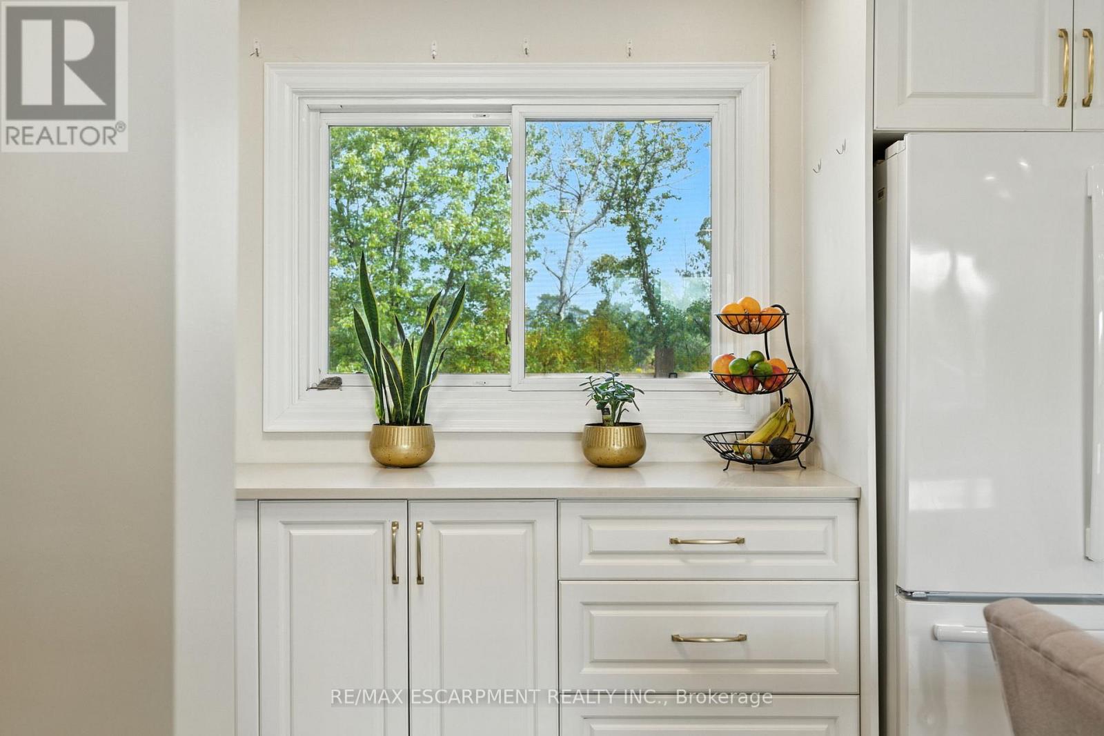 Welcome home! This beautiful turnkey home has over $200,000 in upgrades - TRULY nothing left to do but move on in! Nestled on a tree-lined lot just shy of 1/2 acre, this fully updated and upgraded home is mere minutes from the city, but feels like your very own private piece of paradise. The open concept main floor offers seamless LVP flooring, with a brightly lit living room opening to an eat-in kitchen. The well-appointed chef's kitchen features upgraded cabinetry offering loads of storage space, beautiful stone countertops, and a huge pantry, as well as plenty of space for a large dining table. The 4pc bathroom is steps from three generous bedrooms, each of which features tons of natural light and designated storage space. The lower level offers outside entry to the backyard, offering the perfect space for an in-law, nanny suite, or teen retreat. A massive primary bedroom, 3pc bathroom and plenty of storage space sit above-grade, while a spacious rec room (with kitchen rough-in for versatility), utility room and laundry room finish off the basement level. Upgrades and features are too numerous to mention, but include furnace, well pump, and plumbing (2020), windows (2020 and newer), kitchen/flooring and appliances (2020/21), roof (2024), entire septic system and ejector pump (2025), 100amp panel (2025). Located minutes from restaurants, groceries, schools and shopping, and just a short drive to Costco, Limeridge mall, major arteries (Red Hill/Linc/QEW), this showstopper offers convenience and peace all in one gorgeous home. Don't wait until this one is gone! (id:64974)