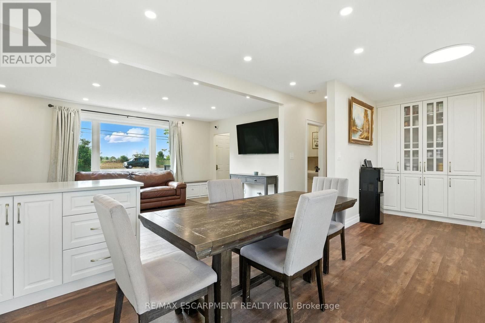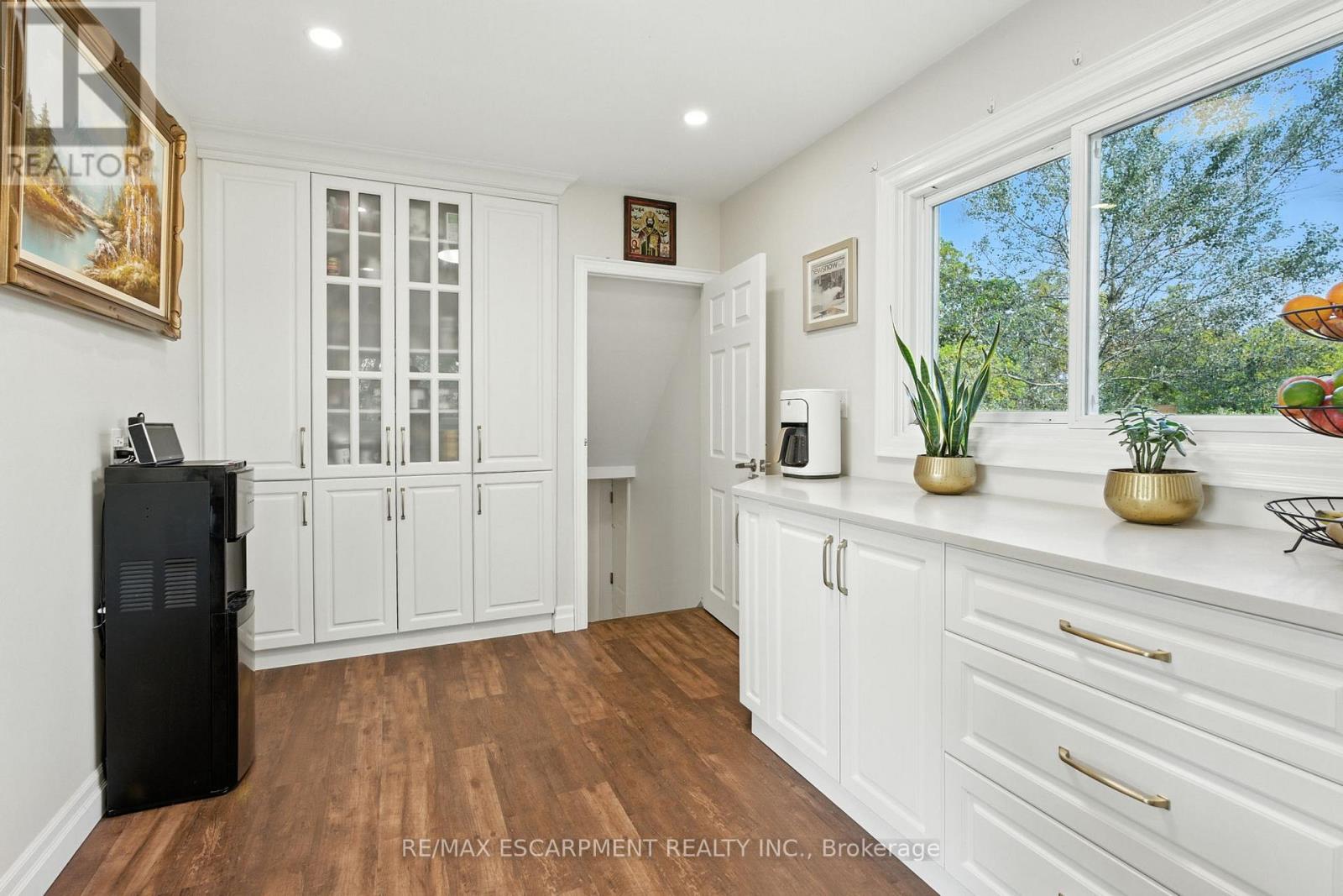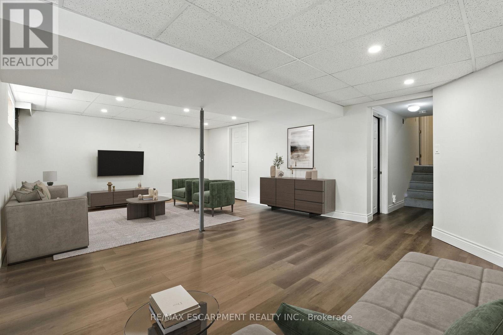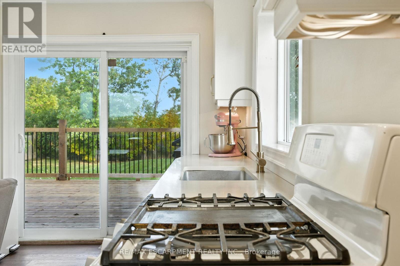 Welcome home! This beautiful turnkey home has over $200,000 in upgrades - TRULY nothing left to do but move on in! Nestled on a tree-lined lot just shy of 1/2 acre, this fully updated and upgraded home is mere minutes from the city, but feels like your very own private piece of paradise. The open concept main floor offers seamless LVP flooring, with a brightly lit living room opening to an eat-in kitchen. The well-appointed chef's kitchen features upgraded cabinetry offering loads of storage space, beautiful stone countertops, and a huge pantry, as well as plenty of space for a large dining table. The 4pc bathroom is steps from three generous bedrooms, each of which features tons of natural light and designated storage space. The lower level offers outside entry to the backyard, offering the perfect space for an in-law, nanny suite, or teen retreat. A massive primary bedroom, 3pc bathroom and plenty of storage space sit above-grade, while a spacious rec room (with kitchen rough-in for versatility), utility room and laundry room finish off the basement level. Upgrades and features are too numerous to mention, but include furnace, well pump, and plumbing (2020), windows (2020 and newer), kitchen/flooring and appliances (2020/21), roof (2024), entire septic system and ejector pump (2025), 100amp panel (2025). Located minutes from restaurants, groceries, schools and shopping, and just a short drive to Costco, Limeridge mall, major arteries (Red Hill/Linc/QEW), this showstopper offers convenience and peace all in one gorgeous home. Don't wait until this one is gone! (id:64974)