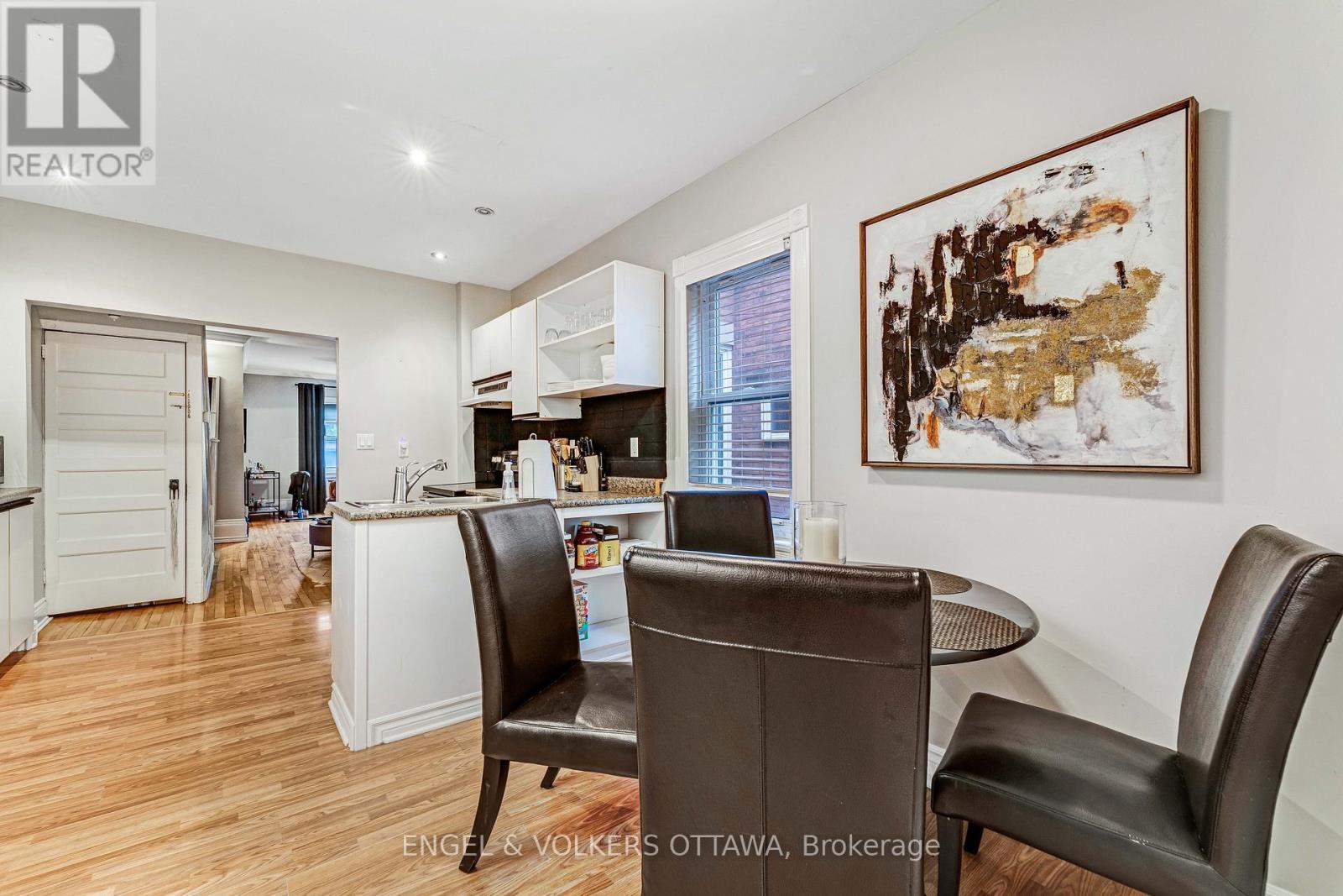 Situated in the heart of the ByWard Market, this character-filled semi-detached home has private outdoor spaces and parking within steps of the many amenities downtown has to offer. Hardwood flooring, crown moulding, decorative ceiling medallions, and classic trim details throughout showcase the home's historic charm. The front living room is filled with natural light and features high ceilings and elegant proportions, and is connected to a flexible den or office area. Toward the rear, the kitchen is efficiently designed with ample cabinetry, generous counter space, and a double-basin sink positioned beneath a window for added light. A discreetly positioned main-level laundry alcove with upper cabinetry and open shelving adds convenience, while a stylish powder room with an undermount sink, modern black fixtures, and a large window completes this level. The second floor features a spacious primary bedroom with direct access to a covered upper balcony overlooking the street. Additional bedrooms offer generous windows, flexible layouts, and cohesive finishes suitable for family members, guests, or a home office. The full bathroom (renovated in 2023) includes a tiled tub and shower combination, a vanity with integrated storage, and a window for natural light and ventilation. The partially finished lower level provides a spacious recreation area and/or storage with excellent versatility. Outdoors, an elevated rear deck extends the living space, along with a dedicated parking, tucked away from the street. This property places you steps from cafés, restaurants, patios, boutiques, specialty grocers, and the year-round ByWard Market. Parliament Hill, Major's Hill Park, the National Gallery of Canada, and the Rideau Canal are all within walking distance, offering green space, waterfront pathways, and cultural landmarks. The University of Ottawa and LRT access are nearby, making it great for those seeking a highly walkable, connected lifestyle! (id:64974)
