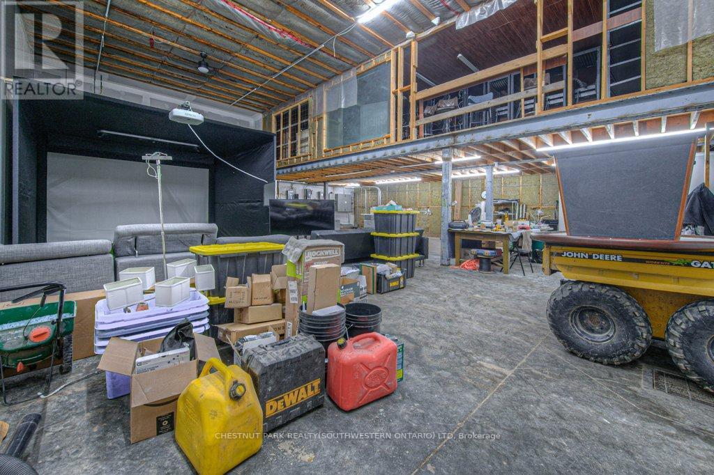 Luxury Living Meets Industrial Capability on 10 Private Acres Discover a rare blend of luxury, efficiency, and commercial-grade utility with this remarkable insulated concrete home spanning 9,000+ square feet, perfectly situated on almost 10 secluded acres complete with a private pond, scenic surroundings, and unmatched craftsmanship. Built for efficiency and longevity, the home features 14-foot ceilings, in-floor heating, a solid 6" stone exterior, and a sprayed rubber foundation for superior insulation and durability. Inside, a sprawling open-concept layout welcomes you with a custom solid maple kitchen, granite countertops, and a massive primary suite with a spa-like ensuite. Additional features include a loft/studio above the garage, a dedicated home theatre, and a finished lower level with a guest bedroom-ideal for family or visitors. The true stand-out of this property is the 4,000 sq. ft. detached shop, engineered to industrial/commercial specifications. Boasting 16-foot ceilings, three 12' x 14' bay doors, 3-phase hydro, and 2 pc bathroom, this space is perfectly suited for tool & die work, automotive, CNC/laser cutting, data centers, or any high-demand electrical needs. As an added bonus, the shop also includes a fully integrated golf simulator, creating the perfect blend of work and recreation-ideal for unwinding or entertaining clients and guests. Outdoors you can enjoy the tranquility of your own private pond, extensive stamped concrete finishes, and a concrete balcony overlooking the grounds-perfect for peaceful mornings or evening gatherings. This property is a rare and versatile opportunity, offering executive-level living with commercial-grade utility-just minutes from city amenities, yet worlds away in terms of space, privacy, and potential. (id:64974)