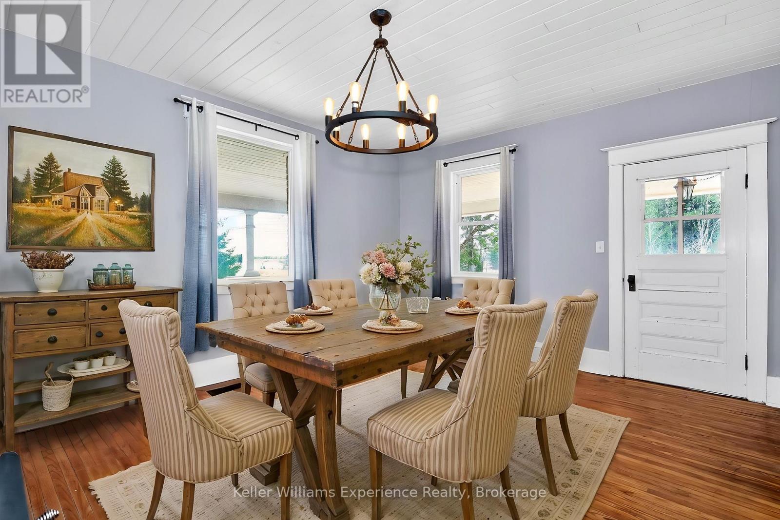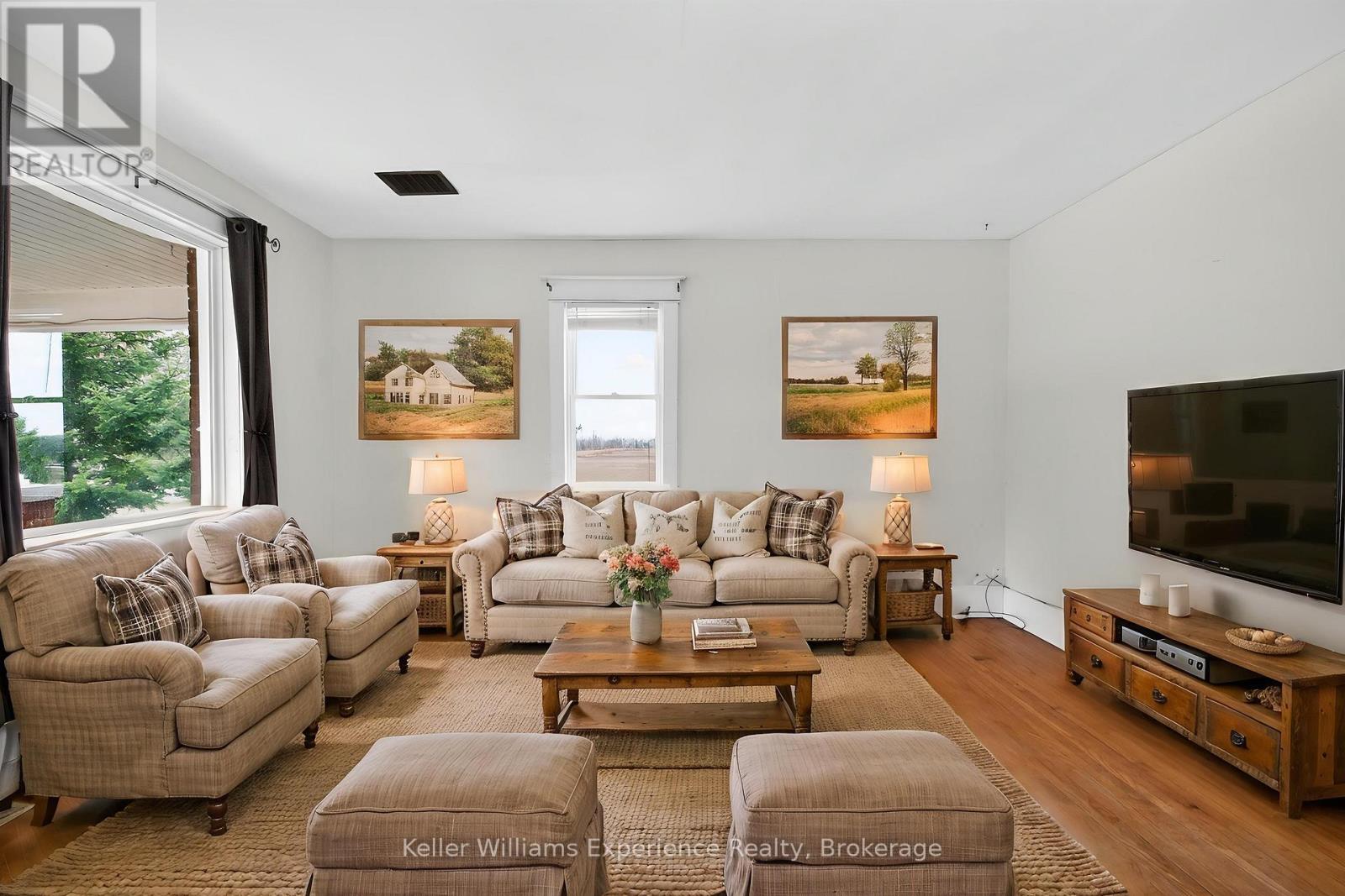 Charming 2 storey farmhouse nestled in a peaceful rural setting surrounded by open countryside and offering the privacy and tranquility of true country living. This warm and inviting home features 3 spacious bedrooms and 2 bathrooms (with a former fourth bedroom currently converted to a laundry room that could easily be reverted back) highlighted by a thoughtfully updated kitchen that beautifully blends modern convenience with timeless farmhouse charm. The main floor bathroom is a true retreat complete with heated floors and a luxurious steam shower creating your own spa like escape at home. Enjoy slow mornings or evening sunsets on the welcoming front porch while taking in scenic views of the surrounding landscape. A large attached 2 car garage provides plenty of space for parking storage or the perfect man cave or hobby area. Conveniently located just a short drive to Elmvale and Wasaga Beach and within approximately 25 to 30 minutes of Barrie this property offers an ideal balance of peaceful living and commuter friendly access to nearby towns and amenities. The unfinished attic provides exciting potential for additional living space whether you envision a home office guest suite or creative retreat. An exceptional opportunity to embrace country living without compromising on comfort lifestyle or future potential. (id:64974)