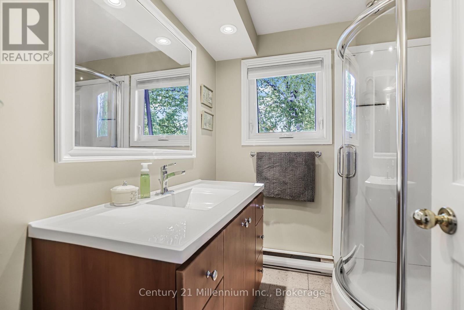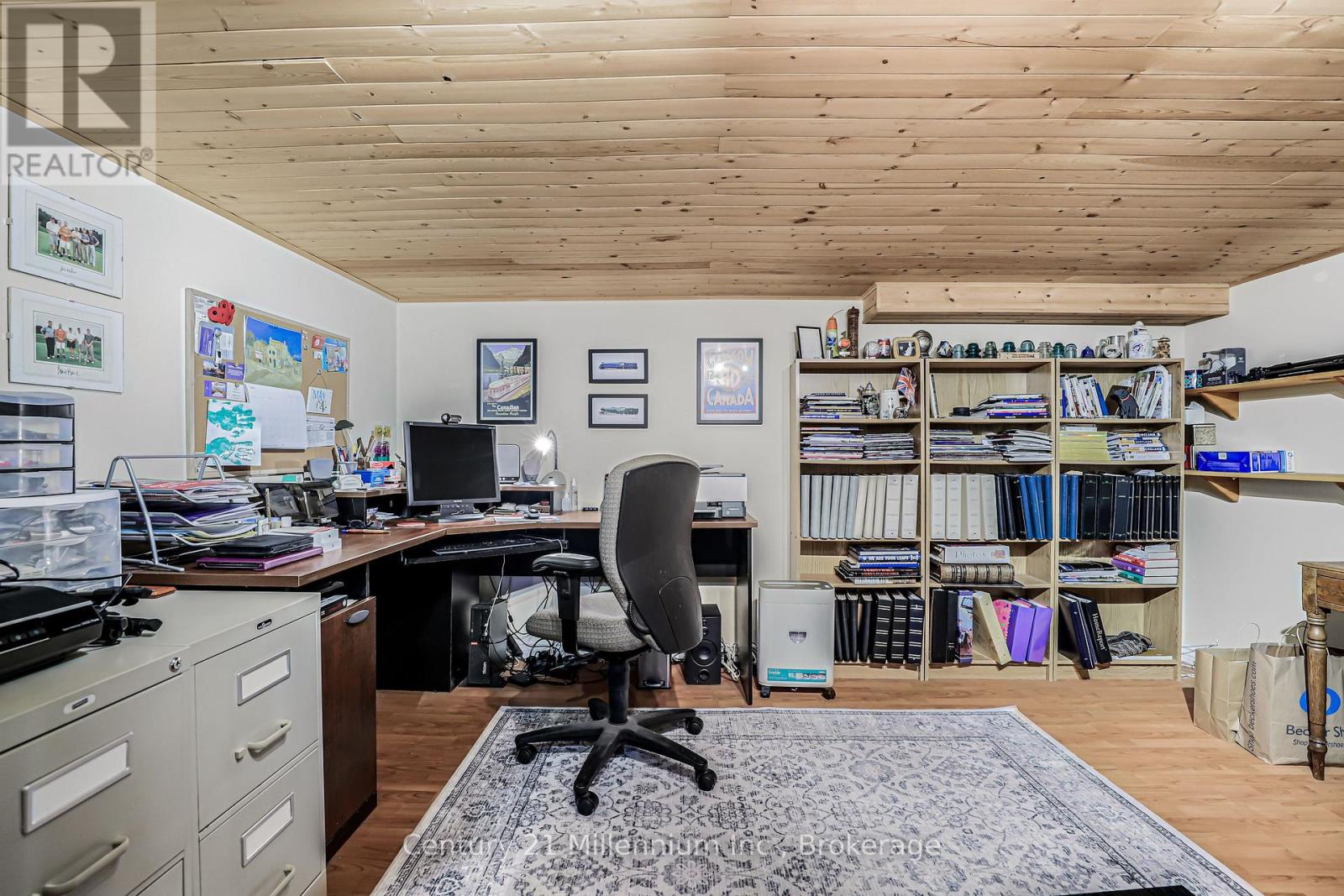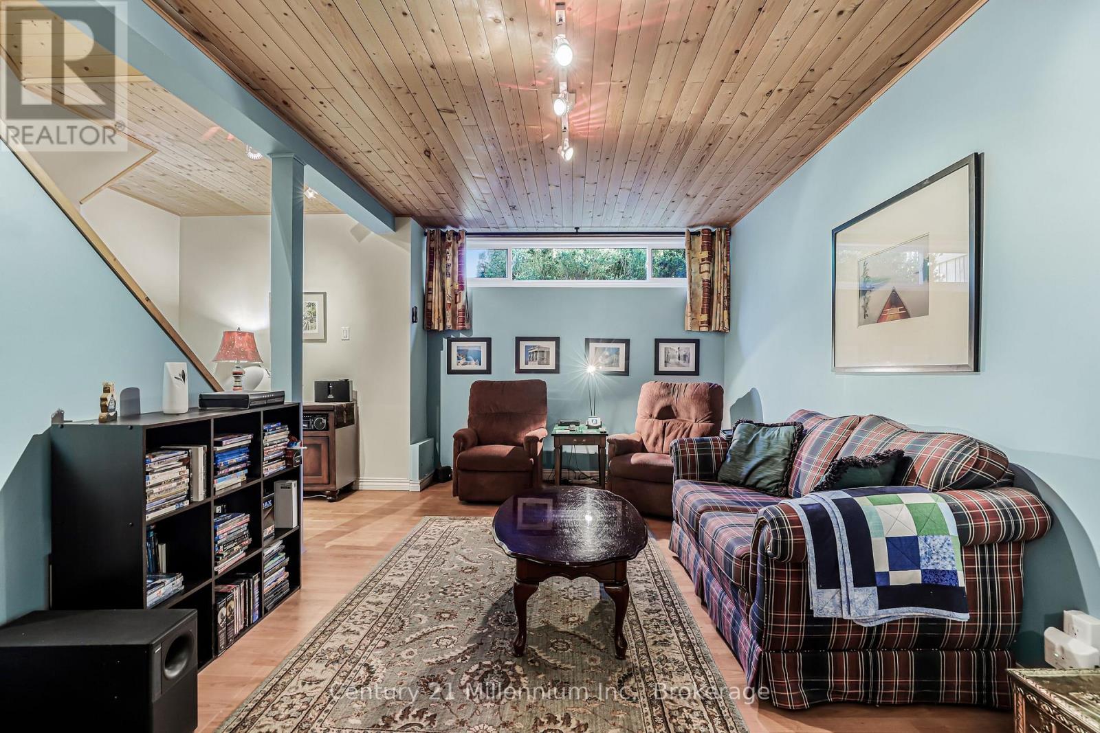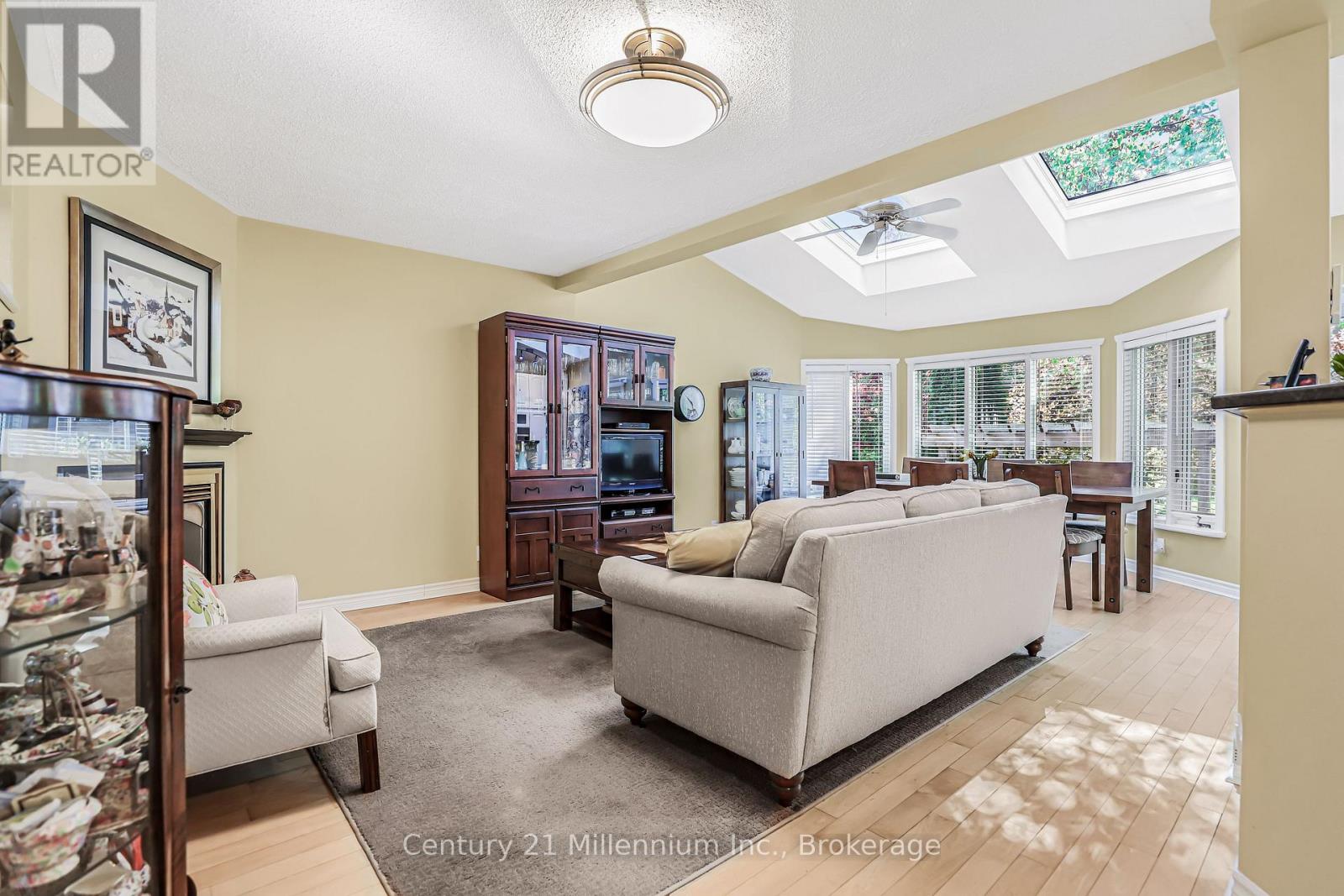 Welcome to this meticulously maintained multi-level back split home, nestled on a beautifully landscaped lot in the heart of Southampton. Just a short stroll to the sparkling shores of Lake Huron and the vibrant downtown core, this home offers both tranquility and convenience. Step inside the generous foyer, where the west-facing living room invites you to relax and enjoy breathtaking evening sunsets. The true heart of this home is the stunning family/dining room and kitchen, boasting a full wall of windows, skylights and a patio door that opens to the serene rear perennial gardens, patio w/firepit, and small pond. Natural light floods the space from three skylights, while a cozy natural gas fireplace adds warmth and ambiance perfect for quiet conversations, lively family nights, or culinary creations in the well-appointed kitchen with built-in appliances and a thoughtfully designed layout. Enjoy meals indoors or al fresco under the charming pergola, where the soothing sounds of the waterfall in the pond create the perfect backdrop for outdoor dining. Patio table and chairs are included for effortless entertaining! The main level also features a bedroom, a full bathroom, and a convenient laundry/mudroom with access to both the garage and side yard ideal for unloading groceries or stepping in from outdoor fun. Upstairs, two spacious bedrooms and a full bath await, with the primary suite offering double closets and lovely east, south and west-facing windows. The lower-level family room provides additional comfort with a second natural gas fireplace, along with a tucked-away office space featuring a large desk ready for move-in convenience. Storage is plentiful, with a large storage/workshop area, a double-car garage with additional space, and an attached garden shed perfect for storing equipment and outdoor essentials. Back-up Generac Natural Gas generator. This home is truly a complete package, offering comfort, style, and an unbeatable location. (id:64974)