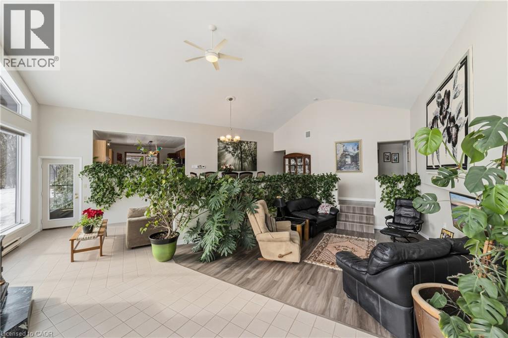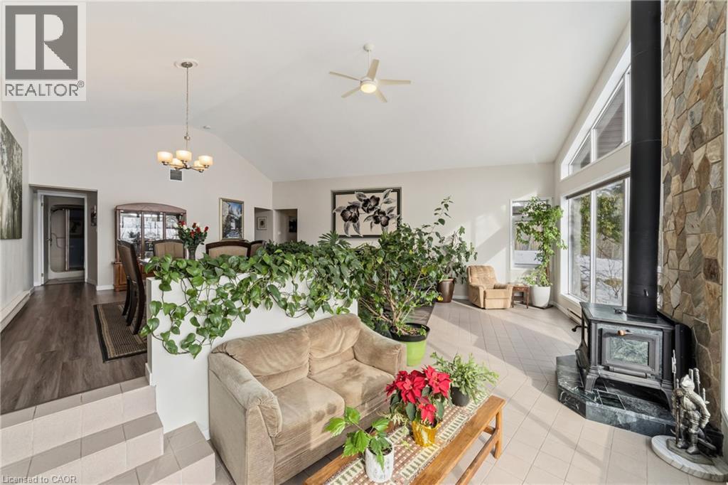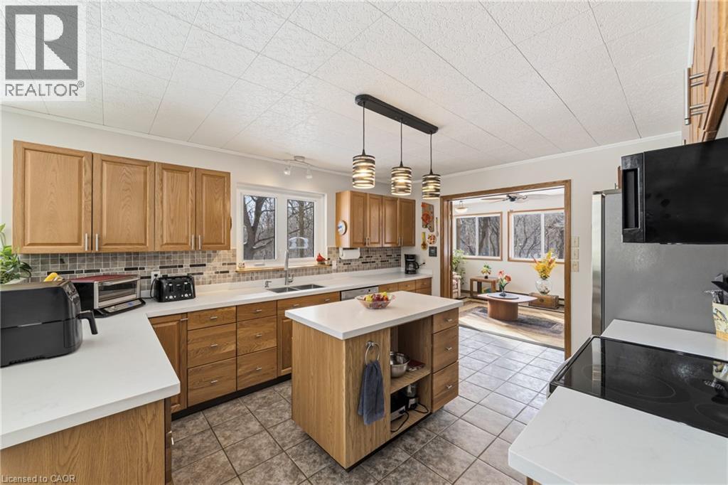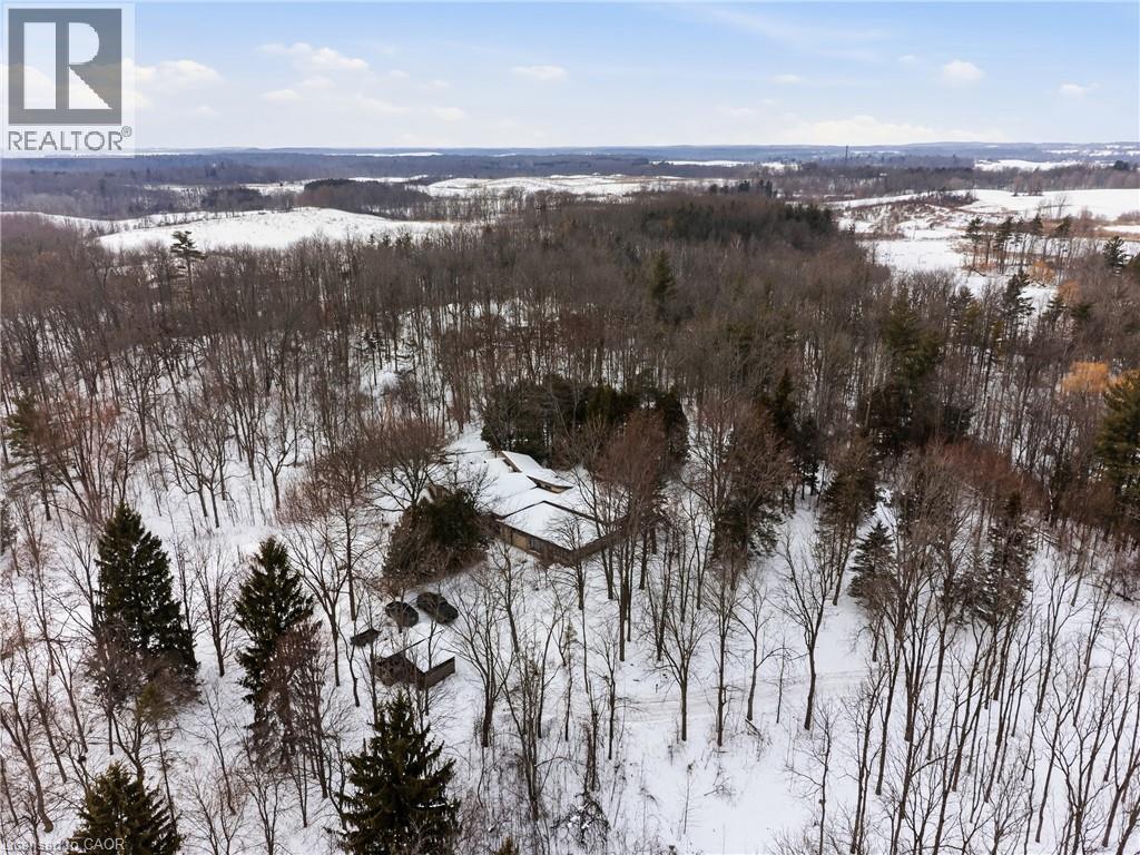 Custom built in 1983 and lovingly maintained by the same owners for over 40 years, this exceptional property offers a rare opportunity to embrace space, privacy, and sustainability. Set on 11 picturesque acres, the grounds feature mature trees, scenic walking trails, manicured lawns, a private pond with gazebo, and a stunning backyard patio complete with waterfall and koi pond-a true retreat-like setting.This approximately 4,000 sq. ft. bungalow offers 5+1 bedrooms and two kitchens, all on one level-ideal for seniors, young families, or multi-generational living. A full in-law suite provides excellent income potential (previous tenant paid $2,050/month). Now operating as a successful Airbnb. The office can also be converted to an additional bedroom if needed, adding even more flexibility for your family or guests.The home is super insulated and heated/cooled by cold-climate heat pumps, supporting an environmentally sustainable lifestyle. Surrounded by protected wetlands, the property is rich with wildlife, including Trumpeter swans, offering nature at your doorstep. Enjoy million-dollar views from the family room through dramatic cathedral-style windows.Additional highlights include open-concept living, quartz countertops, custom clerestory windows, soaker tub, and recently replaced shingles (2021/2023). Development potential adds further long-term value.Peacefully located within approximately one hour of Toronto and conveniently close to Cambridge, Kitchener, and Waterloo, this is an incredible opportunity to secure a private country estate with modern efficiency and endless possibilities. (id:64974)