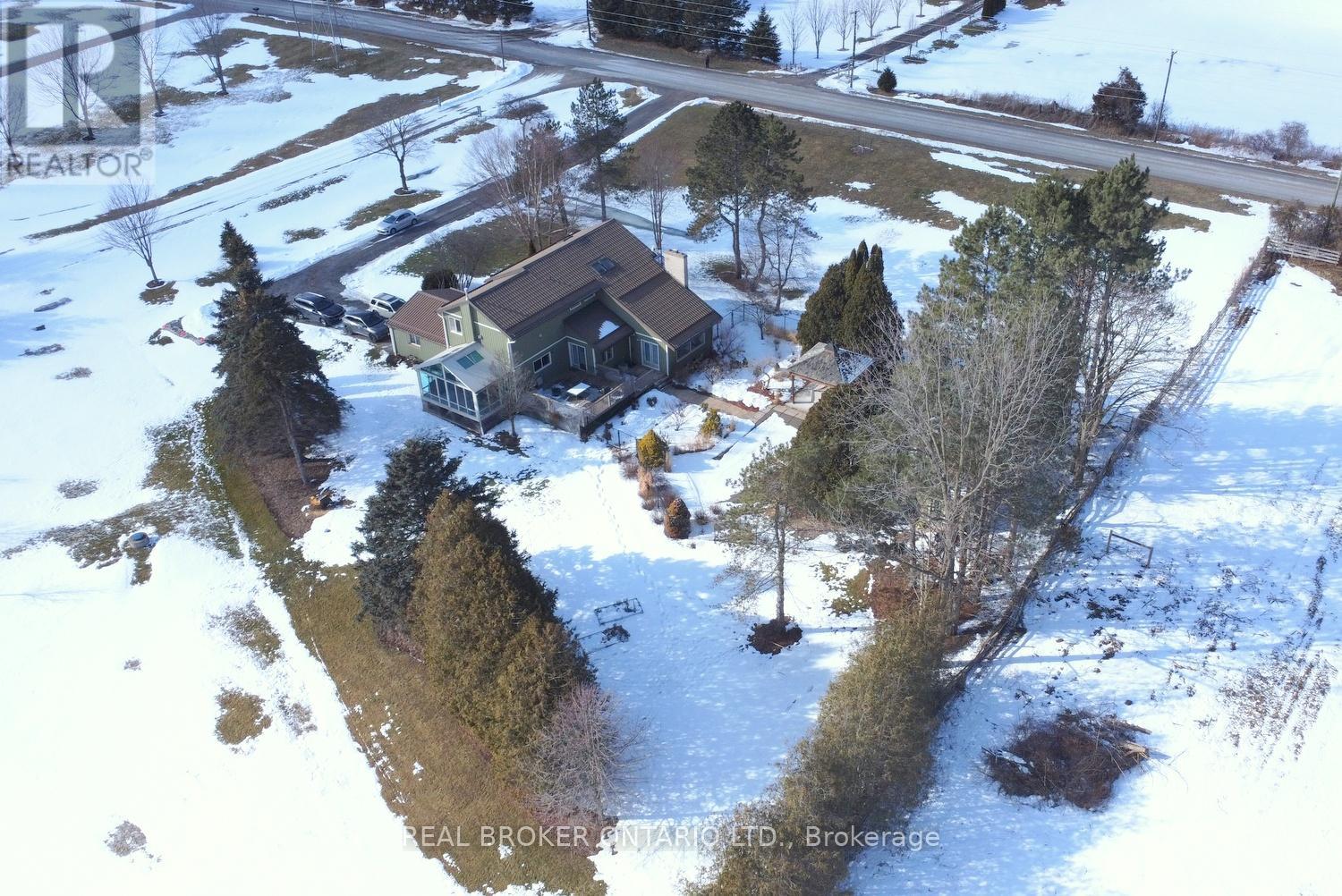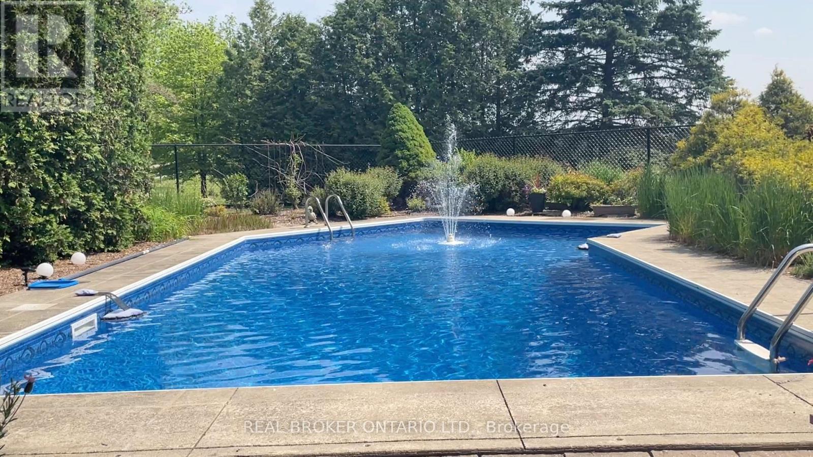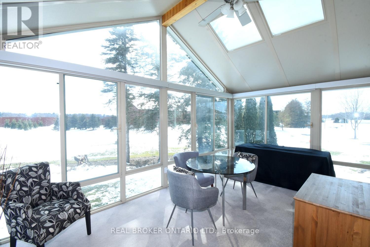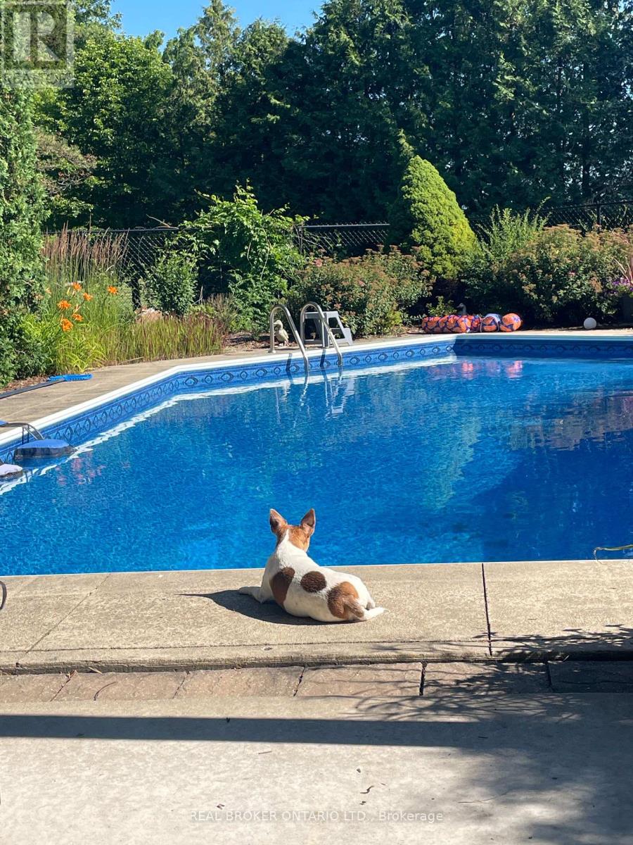 Lovely 3-bedroom home with 2 full baths and 2 powder rooms set on a private, expansive 1.5-acre treed country lot, surrounded by nature at every turn. Large picture windows throughout flood the home with natural light and offer peaceful views from nearly every room. The spacious primary suite features a fireplace, 3-piece ensuite, and walk-in closet with convenient laundry. A second bedroom offers its own 3-piece ensuite and walk-in closet, while the third bedroom provides flexible space for family, guests, or home office use. The open main floor offers generous living space, including a powder room and private office. The large country kitchen features abundant cabinetry, bonus pantry /coffee service area, and dinette with French doors leading to a multi-level deck. The sunken great room with vaulted ceilings, stone feature wall, and gas fireplace creates a warm gathering space with a walkout to the private yard. A formal living room with coffered ceiling and gas fireplace and a large, three-season sunroom add additional living and entertaining options. Inside entry from the double garage adds everyday convenience. The spacious, fully finished , partial basement provides additional living space with carpeted floors, a 2-piece bath, a hobby/bedroom area and second laundry rough-in in utility room. The utility room has laundry rough in . Step outside to a private backyard oasis featuring an in-ground pool, beautifully landscaped grounds, and a solid wood gazebo with metal roof for shaded enjoyment. This home is tastefully refreshed in neutral tones and move-in ready. RSA. (id:64974)