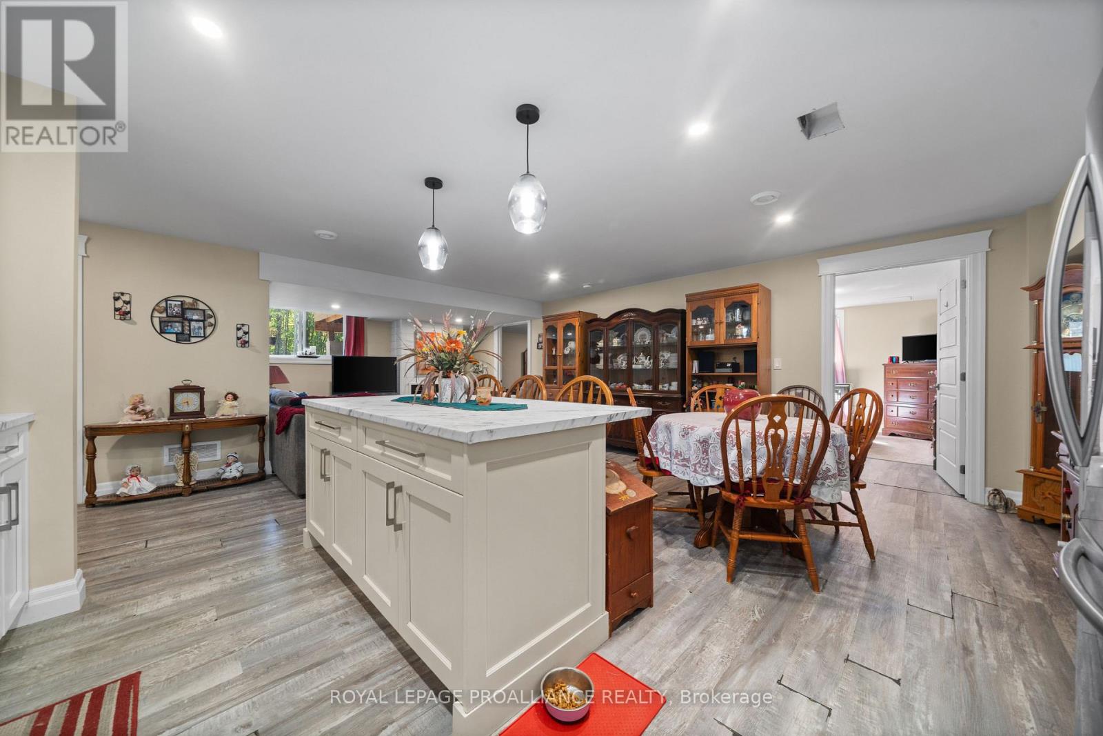 Welcome to this impressive stone-front home, set on just under 1.5 acres of private property. Offering 7 bedrooms, 4 bathrooms, and over 4,000 sq. ft. of living space, this home is perfect for families who value both space and style. The main level features a bright, open-concept layout with a spacious living room, dining area, and chef's kitchen. The kitchen is a true centerpiece, boasting a large island, modern appliances, a walk-in pantry, and sleek finishes throughout. The main floor primary suite includes a walk-in closet and a spa-like 5-piece ensuite, while a convenient 2-piece powder room and main-level laundry add practicality. Upstairs, you'll find a large family room and four generously sized bedrooms-two with walk-in closets-along with a beautifully finished 5-piece bathroom. The lower level is perfectly set up as an in-law suite, complete with an open-concept kitchen, living and dining space, two additional bedrooms, and a 4-piece bathroom. Outdoor living is just as impressive with a large rear deck, partially covered for year-round enjoyment, accessible from both the dining room and the primary suite. Relax in the hot tub or take in the peace and privacy of the expansive lot. Car enthusiasts and hobbyists will love the attached double-car garage with a convenient drive-through, plus an additional detached garage for extra storage or workspace. This property offers the perfect blend of luxury, functionality, and privacy-an ideal place to call home. (id:64974)
