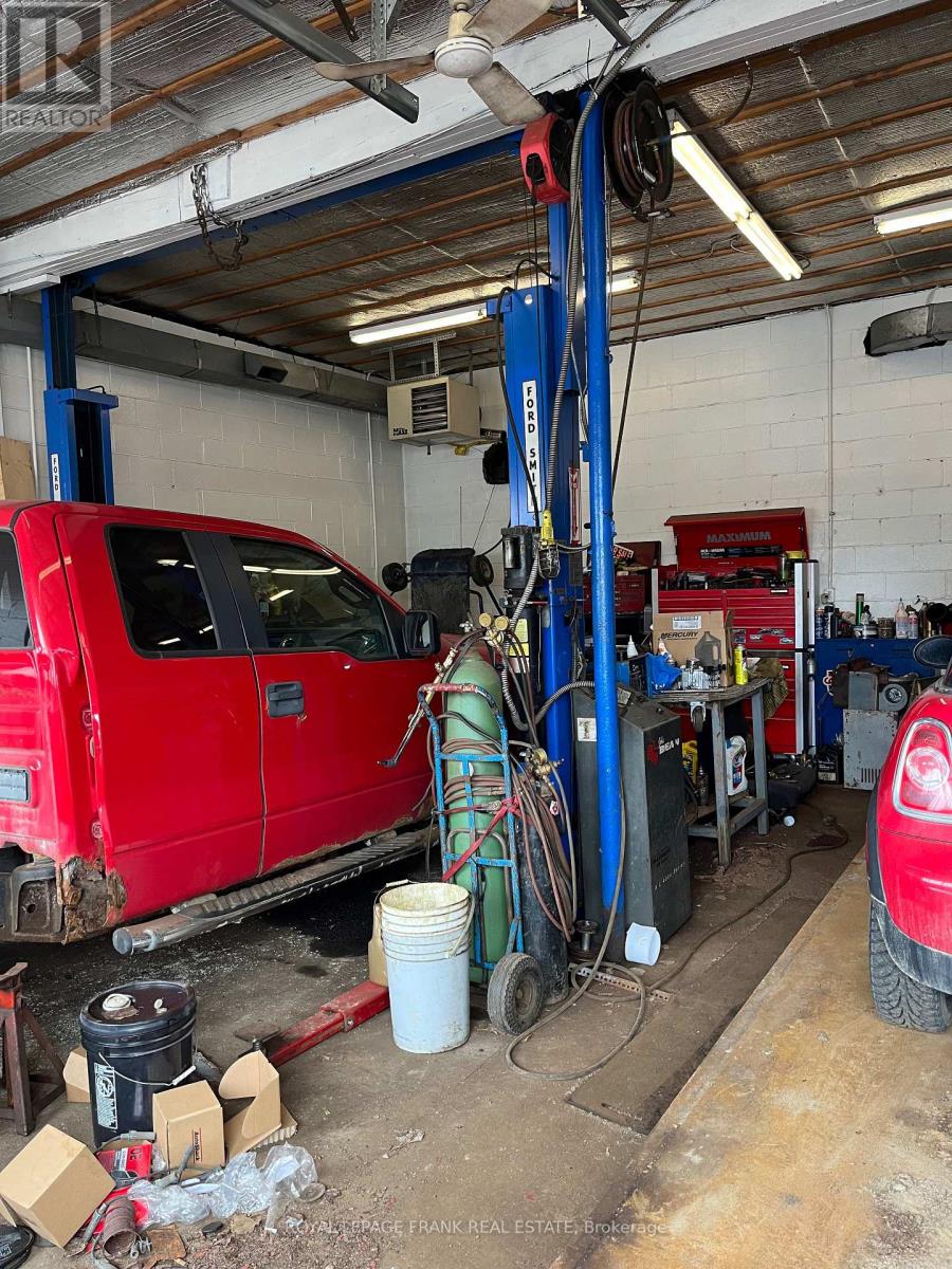 Exceptional live/work opportunity! Experience the perfect blend of home comfort and business potential with this one of a kind property. The 1,200 sq. ft. residence offers 4 spacious bedrooms, 1 updated bath, a modernized kitchen, and a finished basement, ideal for family living or extra workspace. A detached two-car garage and workshop is a dream setup for hobbyists or professionals, featuring oversized doors, two hoists, a compressor, and duel 200-amp hydro panels. Whether you're into automotive work, trades, or creative projects, this space has you covered. Adding to its versatility, the property includes a separate retail area and office, complete with two washrooms, the perfect setup for a storefront, studio, or small business. With easy highway access, a circular driveway and ample parking, convenience is built right in. Live, work, and grow - all in one property. Property sold in "As Is, Where Is" condition. (id:64974)