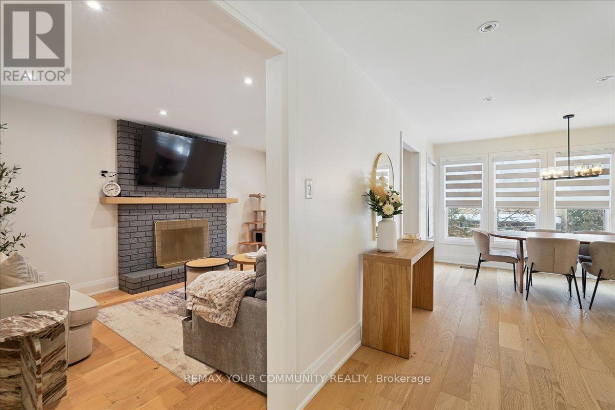 Welcome to this beautifully fully renovated 4+1 bedroom home on prestigious Burford Street - one of Newmarket's most desirable streets. With over $230,000 invested in top to bottom renovations, this 2000 sqft detached home has been completely transformed with high-end finishes and exceptional attention to detail. Situated on a pool-sized 50 x 115 ft lot with mature trees, a welcoming front porch, parking for four vehicles, and a double-car garage, this turnkey home blends modern luxury with timeless charm in an unbeatable location. Step inside to find wide-plank engineered hardwood flooring throughout, oversized, 8-inch baseboards, and an abundance of potlights that create a bright, modern feel. The stunning new open concept kitchen is truly the heart of the home featuring oversized quartz cabinetry, a stylish coffee bar to enjoy your morning cappuccino, and brand-new stainless steel appliances including a double-door fridge, double wall oven, electric cooktop, and dishwasher. The statement waterfall island makes it the perfect space for entertaining. All bathrooms have been fully upgraded, and each spacious bedroom includes custom closet organizers for practical, elevated living. The inviting living room is anchored by a charming wood-burning fireplace and the beautifully redesigned staircase includes elegant iron railings. A main-floor laundry room with built-in cabinetry and zebra blinds throughout complete the home's sophisticated upgrades. The finished walkout basement offers incredible flexibility with a fifth bedroom and potential for a future in-law or income suite. Strategically located less than five minutes from Downtown Newmarket - home to charming coffee shops, pet boutiques, and the renowned The Postmark Hotel - and just 5 minutes to Upper Canada Mall, Newmarket GO Station and major highways. (id:64974)