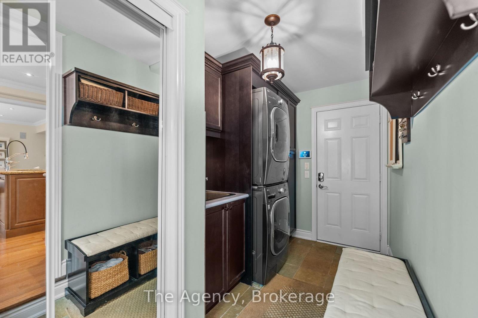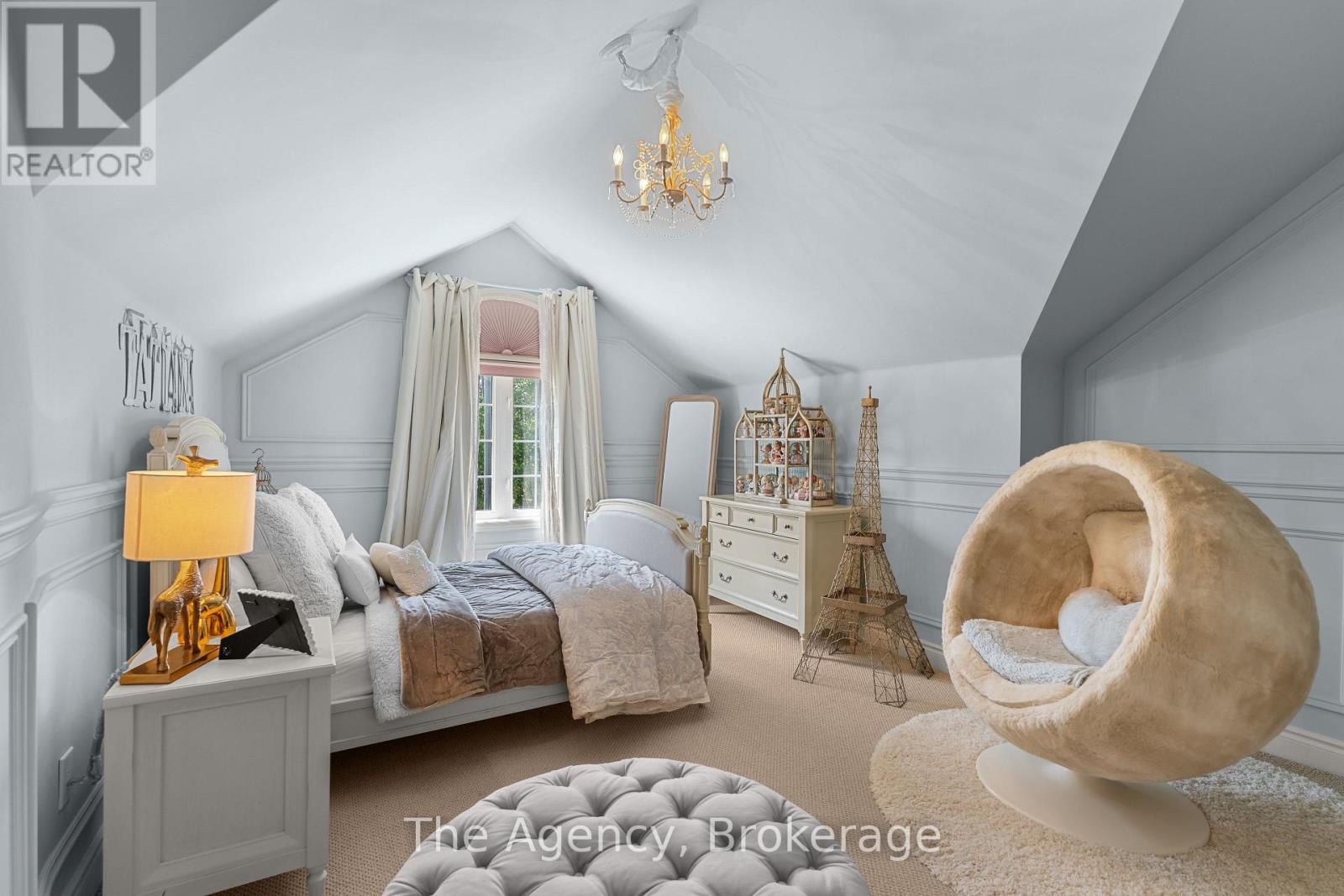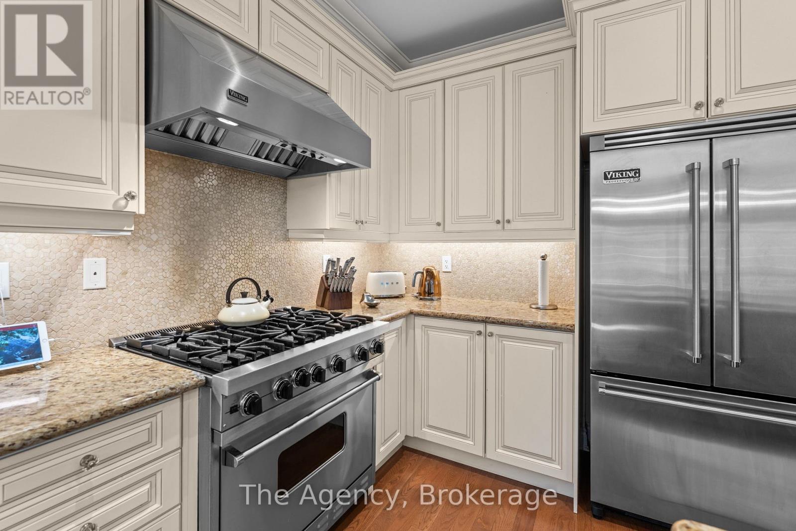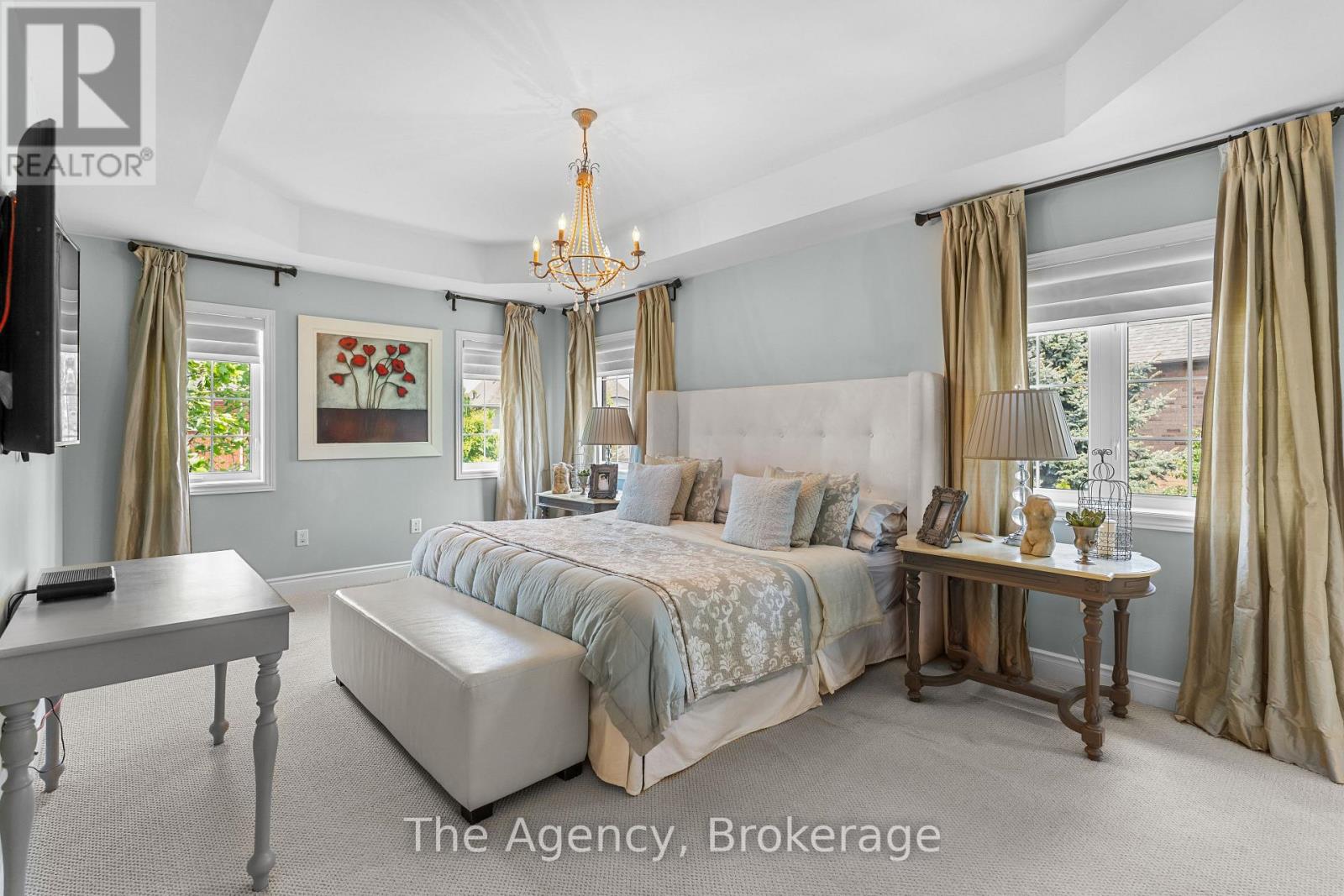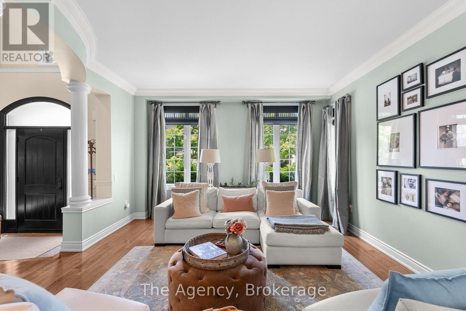 Introducing the Rosehaven Cantley model, an exceptional four-bedroom, three-bathroom residence that exemplifies luxurious living, set on a premium corner lot in the prestigious Lakeshore Woods community of southwest Oakville. With an elegant stone and brick exterior, enhanced by additional side windows that flood the interior with natural light, this home offers unmatched curb appeal and sophistication. Inside, this meticulously designed home blends elegance and comfort. The chef's kitchen is a true centerpiece, featuring premium commercial-grade appliances, an oversized center island, crown molding, pot lights, and rich hardwood flooring. The adjoining family room and kitchen offer views of the professionally landscaped backyard complete with custom iron gates, clay street pavers, an in-ground sprinkler system, and integrated outdoor speakers perfect for entertaining or relaxing in your private oasis. Thoughtful upgrades are found throughout, including crown molding, custom wainscoting, a fully integrated security system with cameras, and custom California Closets built-ins. Designer window coverings from Hunter Douglas and Housewarmings add refined style and functionality. The main floor mudroom is both practical and elegant, with custom cabinetry, drying racks, and convenient garage access. Nestled in one of Oakville's most coveted lakeside neighborhoods, this family-friendly enclave is just steps from the lake, scenic parks, wooded trails, a dog park, tennis and pickleball courts, splash pads, and sports fields. Enjoy endless outdoor adventures, with miles of walking and biking trails connecting to Nautical and Shell Parks, local beaches, and the vibrant waterfront charm of Bronte Village, with its yacht club, boutique shops, cafes, and fine dining. A rare opportunity to own an exquisite home that seamlessly blends luxury, lifestyle, and location in one of Oakville's most desirable communities. (id:64974)