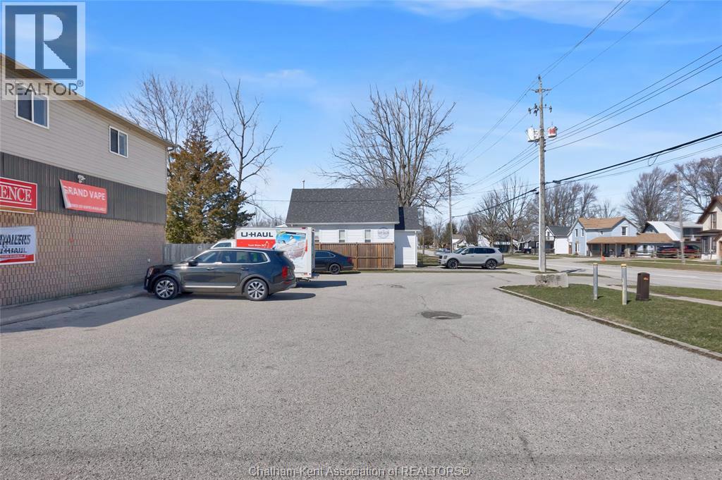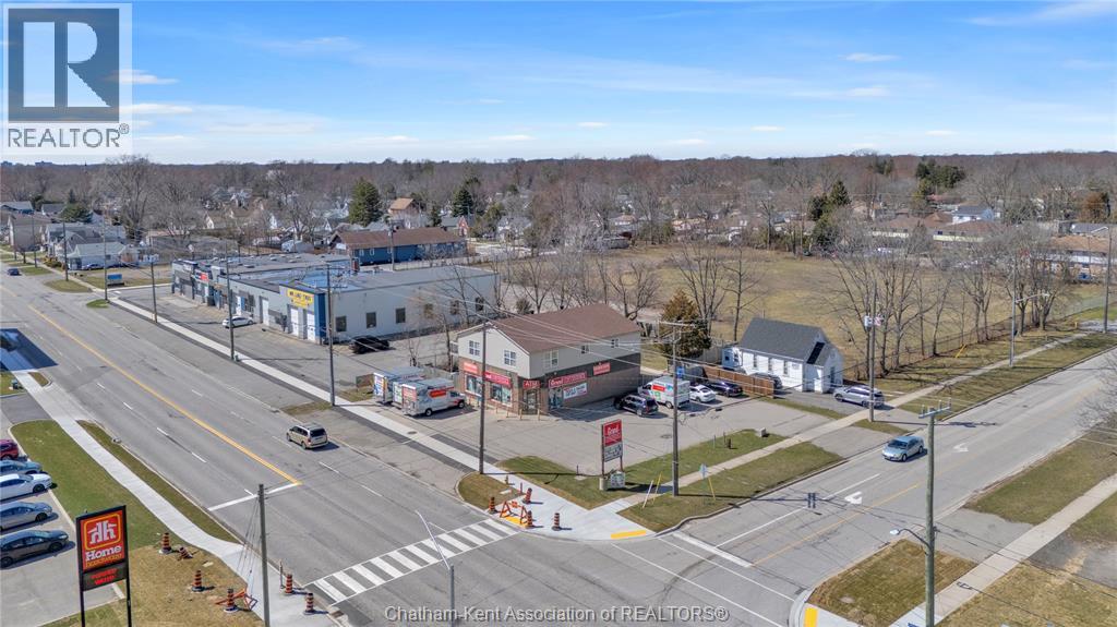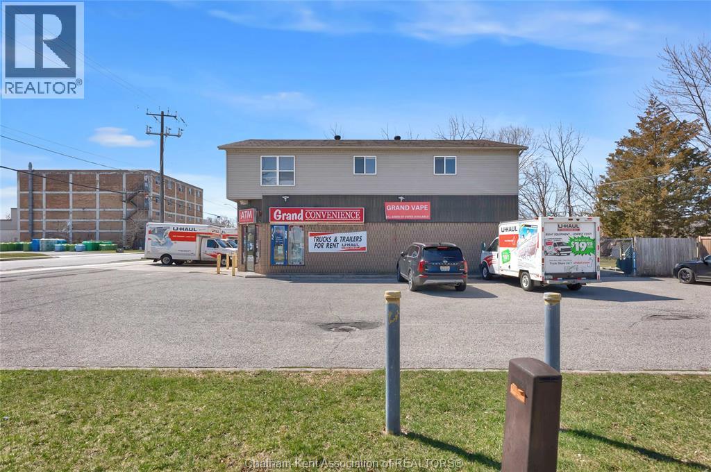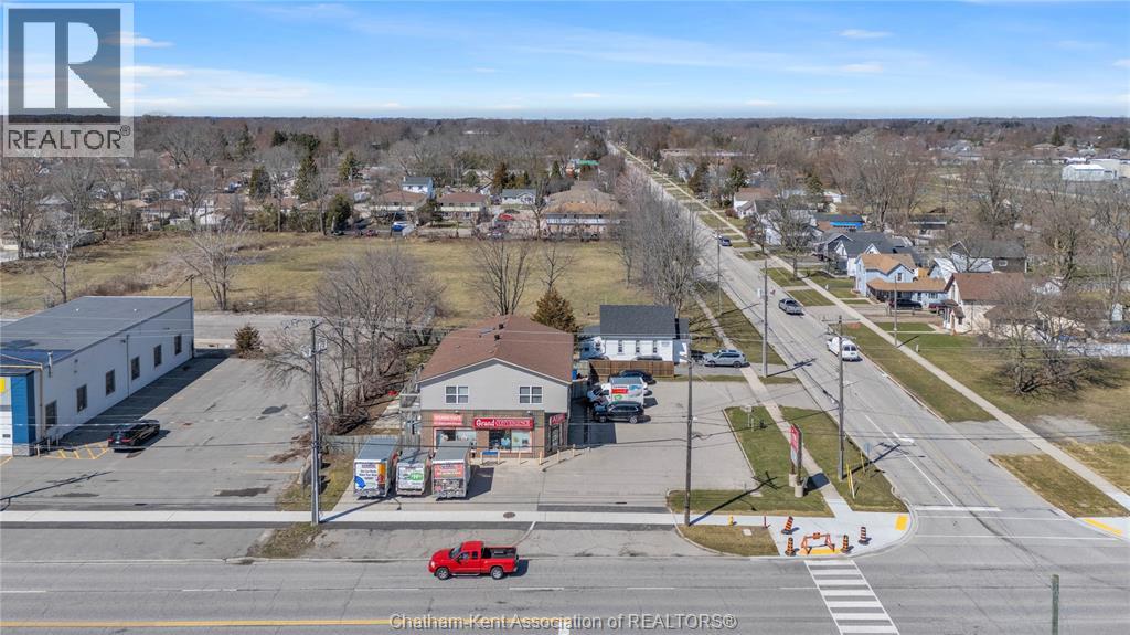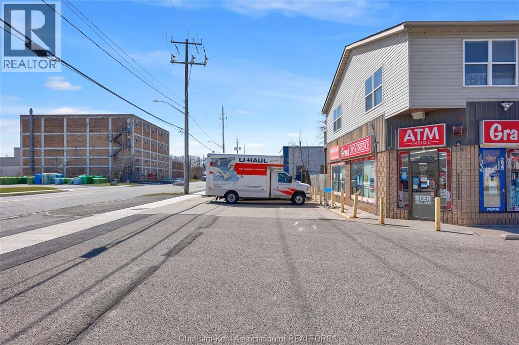 High traffic corner locations like this are hard to acquire in Chatham, especially with ample parking and high visibility. This purpose built retail store with residence above offers endless possibilities for a live/work arrangement or just multi-purpose investment. The main level is approx. 1900 sq ft and is operating as a leased variety store. Potential higher uses could be a restaurant, professional office, clinic among many others permitted in the zoning. The entire second level was built as a residence with three bedrooms, two bathrooms, laundry and large open concept living and kitchen area. The paved parking lot provides approx. 12 parking spots in the front with additional parking in the rear for staff/residence. Convenience store tenant occupies entire building. Take a serious look at this location with many recent multi-million dollar retail improvements around it. Traffic lights are currently being installed at this intersection, potentially increasing the visibility even more. (id:64974)