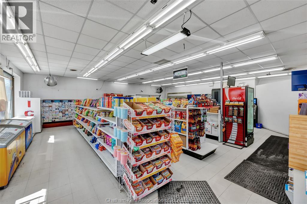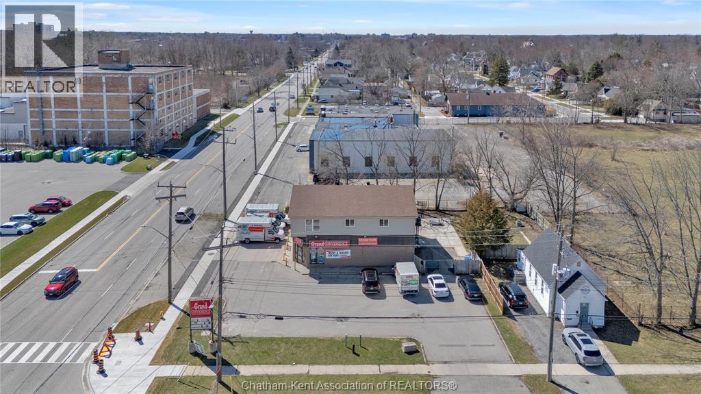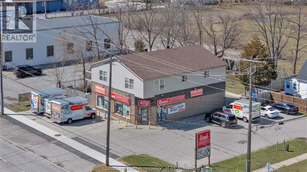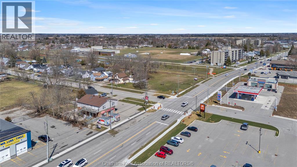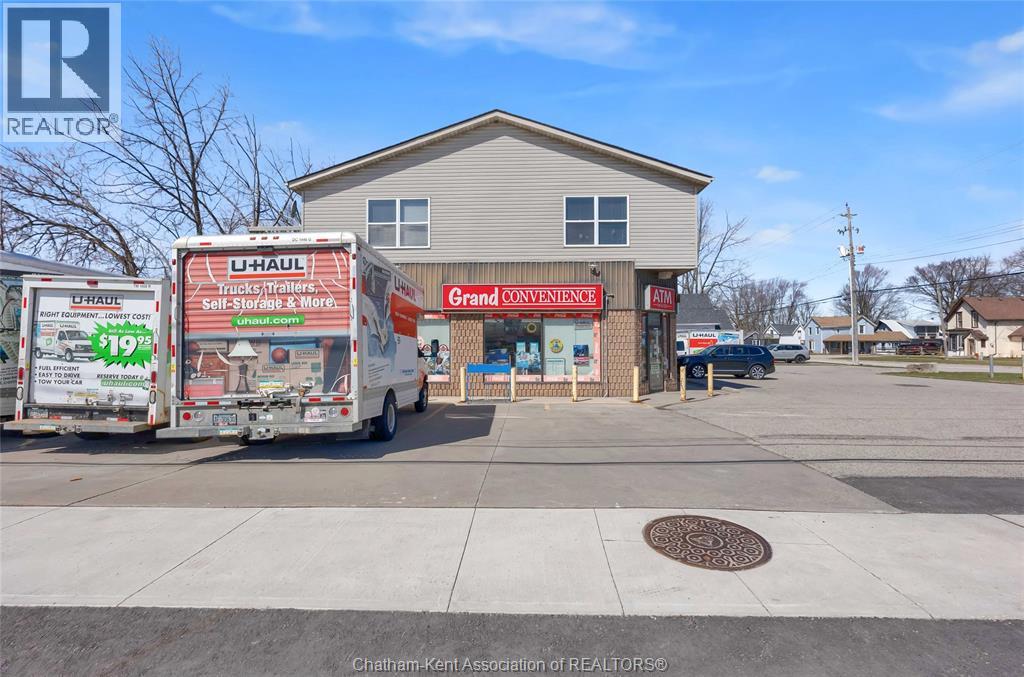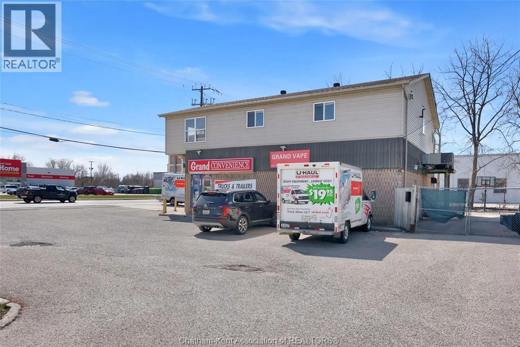 High traffic corner locations like this are hard to acquire in Chatham, especially with ample parking and high visibility. This purpose built retail store with residence above offers endless possibilities for a live/work arrangement or just multi-purpose investment. The main level is approx. 1900 sq ft and is operating as a leased variety store. Potential higher uses could be a restaurant, professional office, clinic among many others permitted in the zoning. The entire second level was built as a residence with three bedrooms, two bathrooms, laundry and large open concept living and kitchen area. The paved parking lot provides approx. 12 parking spots in the front with additional parking in the rear for staff/residence. Convenience store tenant occupies entire building. Take a serious look at this location with many recent multi-million dollar retail improvements around it. Traffic lights are currently being installed at this intersection, potentially increasing the visibility even more. (id:64974)