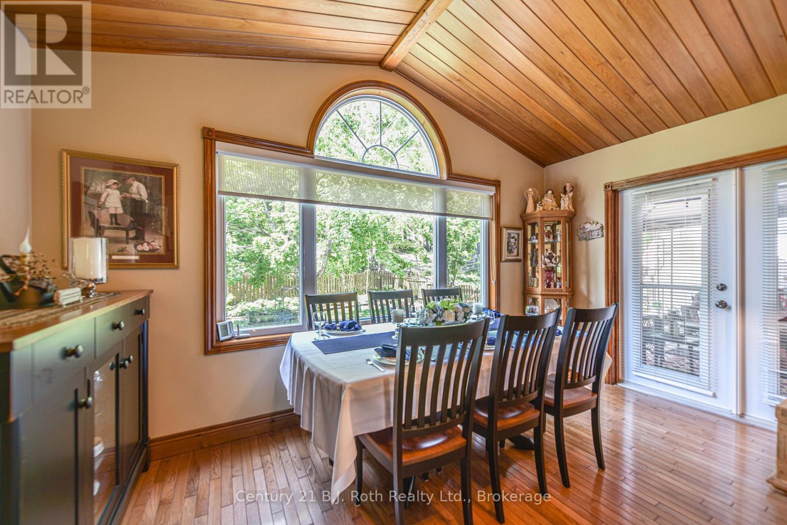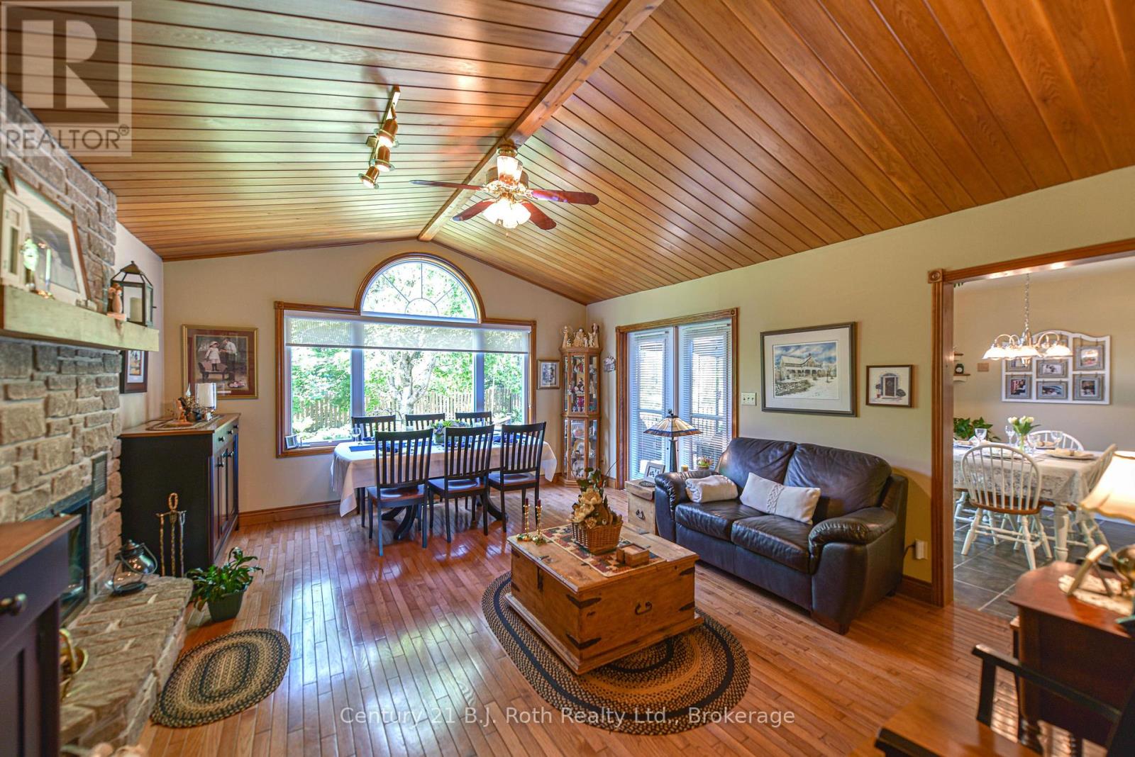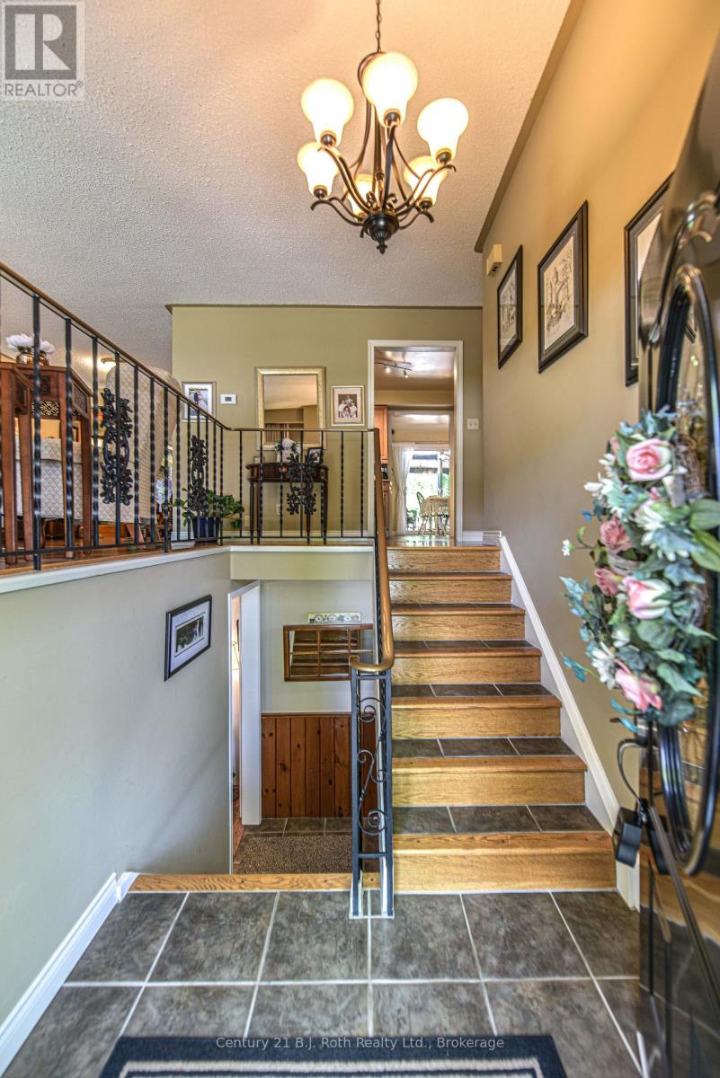 Welcome to this lovingly maintained raised bungalow, with over 3,000 sq.ft. of finished living space, nestled on a park-like lot in Orillia's desirable North Ward. Just steps from Hillcrest Park, Couchiching Golf Club, and a short walk to downtown Orillia, and the beautiful waterfront, this spacious home offers an ideal setting to raise a family. Cherished by the same family since its construction in 1974, this home has been thoughtfully expanded and updated over the years. The main floor features three bedrooms, a warm and inviting oak kitchen with ample cabinetry, a bright breakfast room with walkout to the deck, and a 4-piece bath. Hardwood floors flow throughout, adding warmth and character. In 2005, a stunning addition was completed, creating a sun-filled family room with vaulted ceilings and a striking stone woodburning fireplace. The addition also includes a luxurious primary suite with a 4-piece ensuite featuring a soaker tub and separate shower, along with direct access to the rear deck and serene, fenced backyard surrounded by mature shade trees and garden beds. The fully finished basement offers a level walk-in from the side yard, making it ideal for an in-law suite. It includes a fourth bedroom, office, rec room, 3-piece bath, abundant storage, and a workshop area. The original single garage was converted into additional living space but still retains a 10'10" x 11'6" garage/storage area, with the potential to be restored to its full 23' depth if desired. This is a rare opportunity to own a well-loved home in one of Orillia's most established neighbourhoods-don't miss your chance to make it yours. (id:64974)