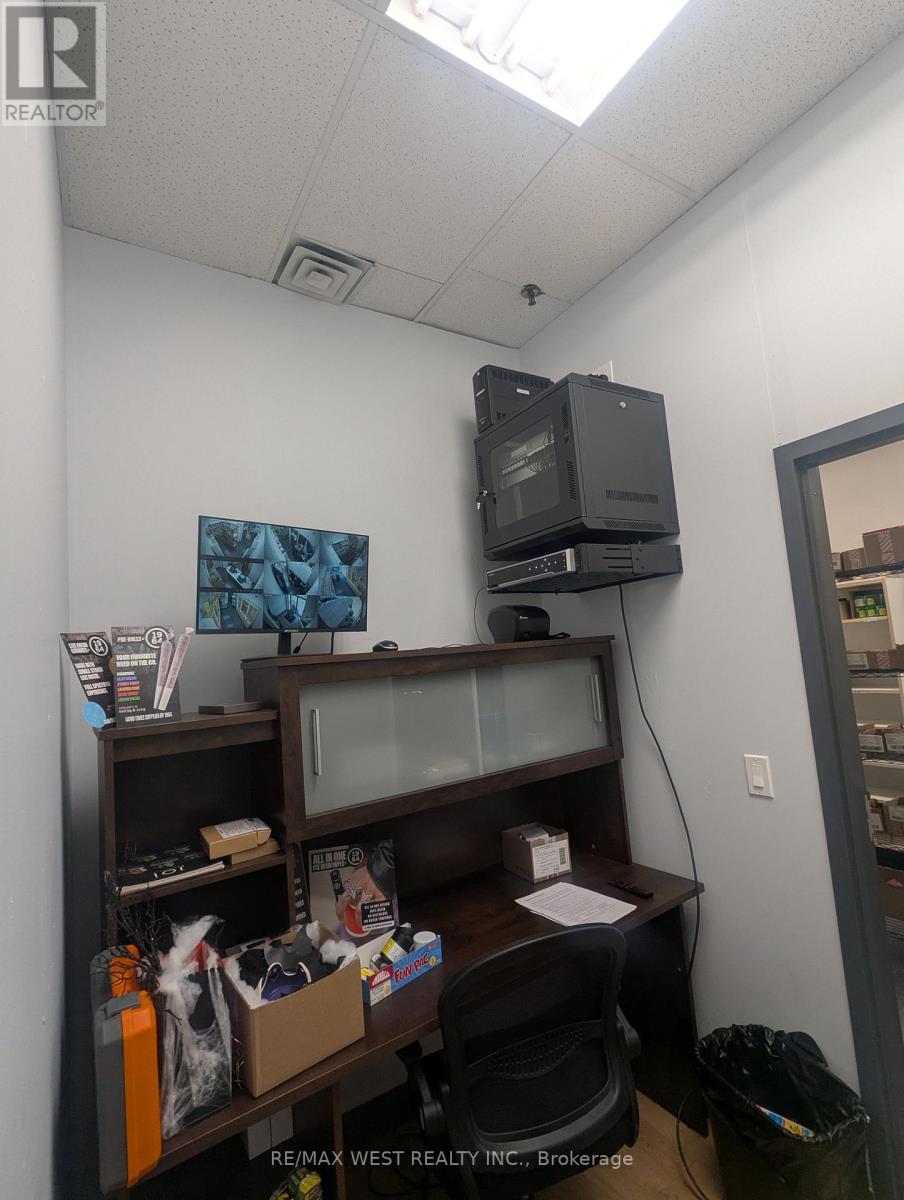 Step into a standout opportunity in the heart of Streetsville Junction. This beautifully renovated retail space in the vibrant Streetsville Square Plaza offers exceptional visibility, steady foot traffic, and a professional modern finish throughout. With approximately 850 sq. ft. and 10-ft ceilings, the unit provides an open, versatile layout suitable for a wide range of commercial uses. Recent upgrades include an updated private washroom, contemporary flooring, enhanced lighting, a welcoming reception area, a dedicated office, and a secure storage room. Cannabis-related uses are permitted, adding valuable flexibility for specialized businesses. Food-related uses are not permitted. (id:64974)