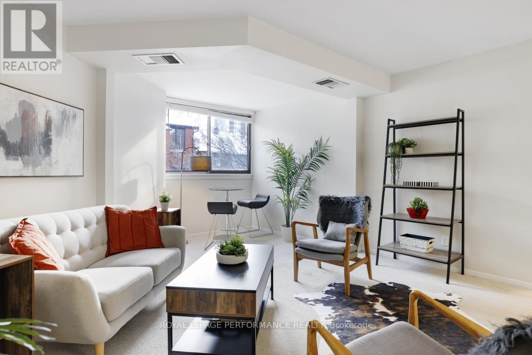 Prime Golden Triangle! Well-designed 2-bedroom condo in move-in condition situated just steps to the Rideau Canal, a UNESCO World Heritage site. Ideally situated in a tranquil, mostly owner-occupied low-rise building set in a desirable, leafy urban neighbourhood. Enjoy spacious living areas, an upgraded kitchen featuring granite counters and newer laminate flooring, plus the added convenience of in-unit laundry/storage. The large updated bathroom features a newer vanity with granite countertop plus additional storage, updated tile tub surround, and your own personal sauna. Walk to the cafes and eclectic shops of Elgin Street, or catch a performance at the nearby National Arts Centre. This south-facing, second floor unit comes with five appliances and underground parking. A superb place to live - just a 12-minute walk to uOttawa via the Corktown Footbridge. 24-hour irrevocable on offers. (id:64974)