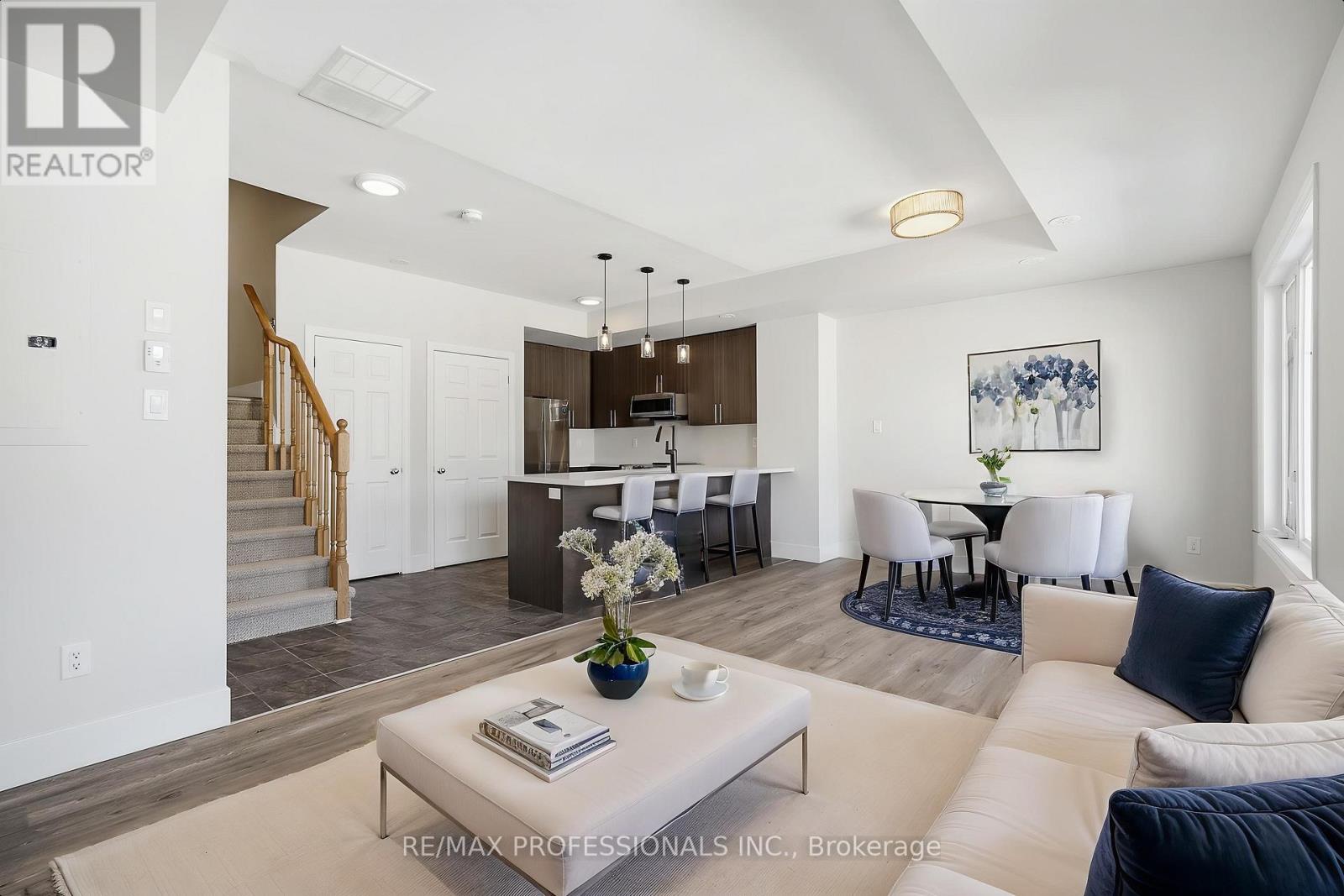 Welcome to your new home in the heart of West Oak Trails. This beautifully updated 2-bedroom plus den townhome offers over 1,200 sq. ft. of bright living space on a quiet, family-friendly cul-de-sac. Recently renovated and freshly painted from top to bottom, the home features brand-new flooring and modern lighting that makes every room feel warm and inviting. The highly functional main floor is a true showstopper, featuring a large wrap-around chef's kitchen complete with upscale quartz countertops, brand new appliances, and a breakfast bar. This open-concept heart of the home overlooks the living and dining areas, framed by large windows for abundant natural light, and includes a convenient powder room. Upstairs, the bonus den provides that much-needed extra space for a quiet home office or a play area. New luxury plank flooring, new LED lighting throughout and stylish quartz counters with new plumbing fixtures make this a true turn-key property. The real magic happens on the private rooftop deck, where you can relax and enjoy unobstructed views while stargazing in peace. This home includes 2 underground parking spaces (tandem + extra storage) and puts you just steps from some of Oakville's best schools, parks, and scenic trails. You are also just minutes from the hospital, shopping, and easy highway access. This property is also a perfect opportunity for investors due to its close proximity to the hospital and major employment areas. Plenty of visitor parking above ground and underground for guests. Whether you are a first-time buyer or looking for some of the best value per square foot in all of Oakville, this move-in-ready gem is waiting for you. (id:64974)