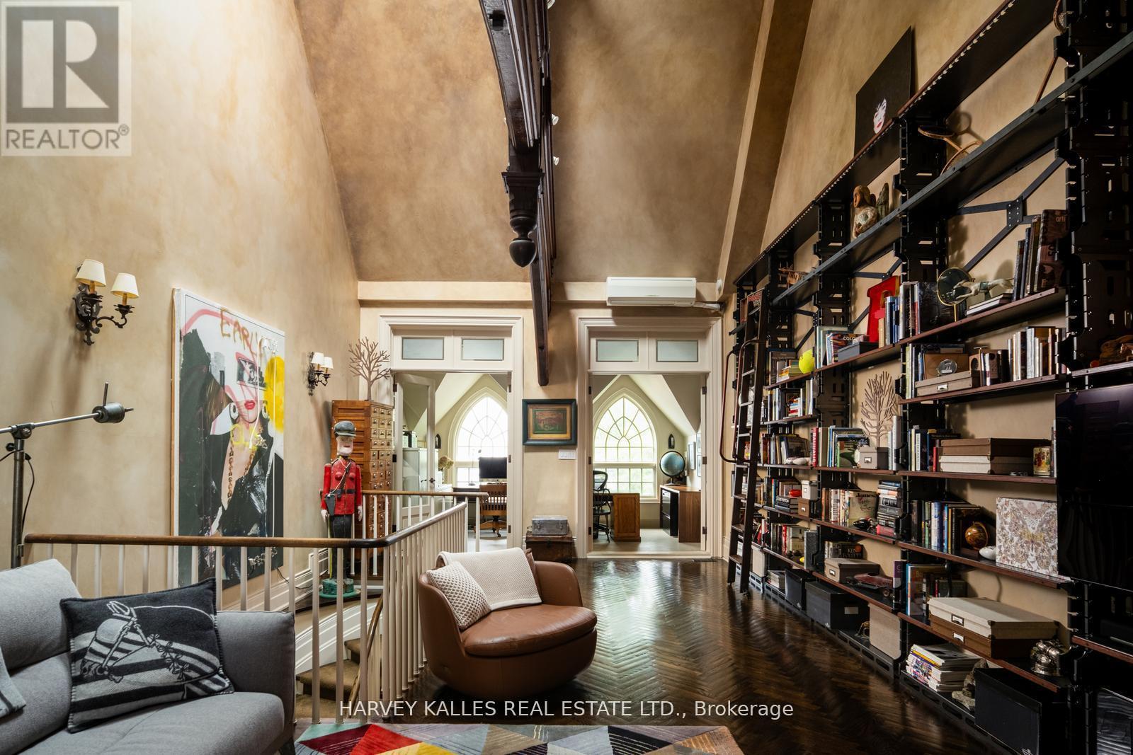 12 Macpherson Ave TH3 | Superb Church Conversion Townhome in Prime Summerhill. Rarely offered, this 2-bed, 2.5-bath townhome in the exclusive Church conversion at 12 Macpherson Avenue is a truly unique offering in one of Toronto's most coveted locations. With over 2,500 sq ft of refined living space, this residence blends quiet luxury with architectural excellence. The main floor features a spacious living/dining area, gas fireplace, and French doors leading to a private terrace ideal for morning coffee or elegant entertaining. A grand staircase leads to the primary and second bedrooms, both generously sized with custom storage and natural light. The third storey welcomes you to a dramatic loft-style upper level with original soaring vaulted ceilings; complemented by a wood burning fireplace set against the sprawling custom library design feature- wonderful to cozy up and read a book. Additional features of his/hers offices - with heated floors & wonderful windows making this a welcoming work-from-home space for two. Direct access to underground garage with two-car parking. Grounds impeccably maintained by Christine's Touch, heated driveway and walkways. Located just steps to Yonge Street, this home is perfectly positioned near Toronto's top restaurants, boutique shops, transit, and private clubs. A rare opportunity to own a piece of architectural history in one of Toronto's most desirable neighbourhoods - this is an address to be proud of. (id:64974)