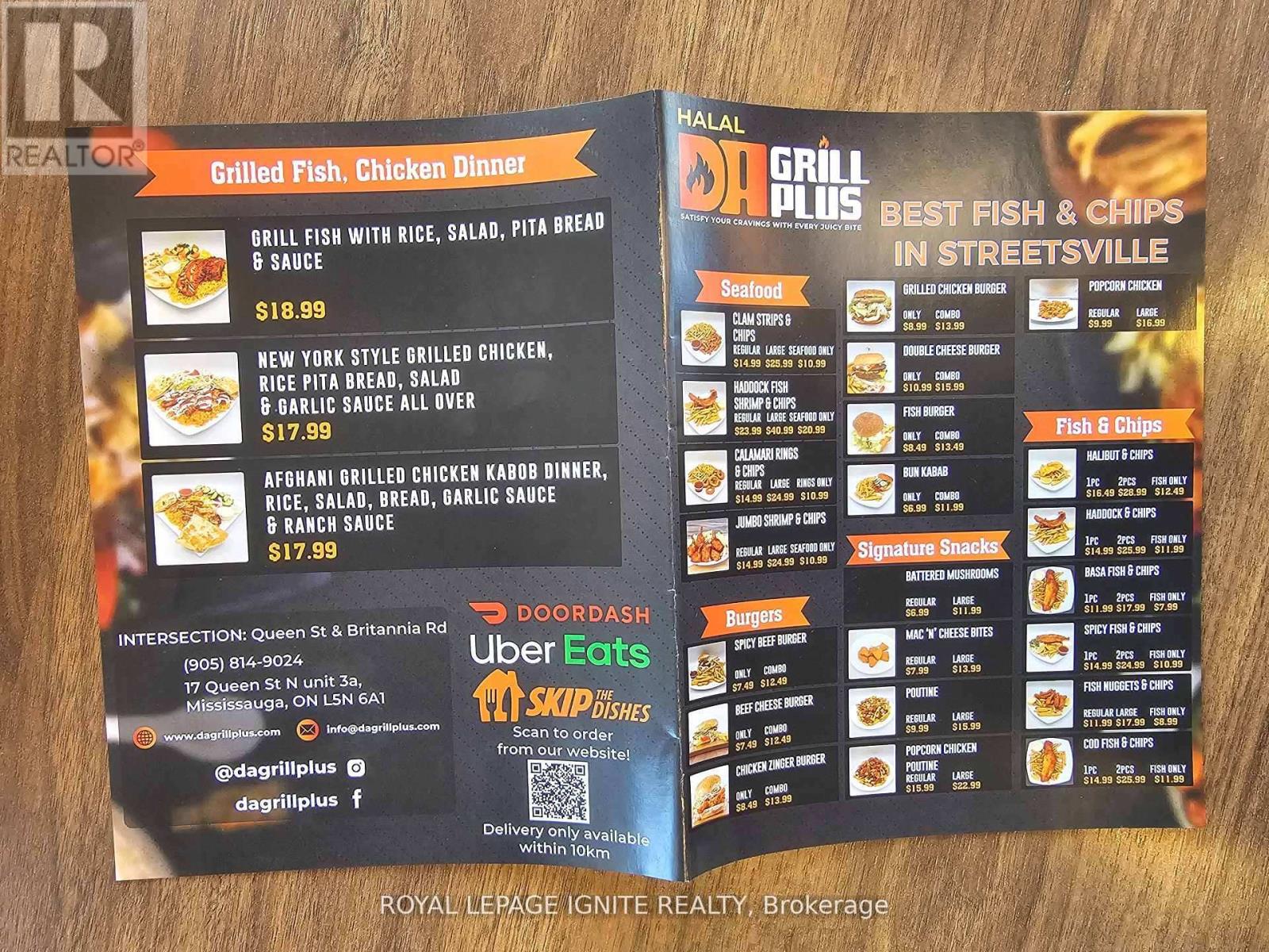 Priced to sell! - Highly rated turnkey Fish & Chips restaurant at the busiest intersection in Streetsville - Britannia & Queen! This turnkey business has everything you need to run a successful food or restaurant business including highly sought-after location in Streetsville right at Britannia & Queen Street. Corner unit with a ton of visibility - The foot traffic never stops! Featuring 622 sq ft unit that seats 20 people in a busy plaza, 8' hood vent, LOW monthly rent of just $2,300 INCLUDING TMI, HST & water. 2+ years remaining on the lease + 5yr renewal option. Established neighbourhood contains professional offices, schools, prayer centres and residences and gets additional traffic from the highways that's just two minutes away. One of the most popular fish & chips restaurant in the neighbourhood with amazing menu, service and location. Takeout, eat-in, Uber Eats, Skip The Dishes - you have a ton of options! Best of all - No franchise fees or restrictions - this is *your* brand. Feeling more adventurous? Then start something of your own! Zoning allows for other types of businesses too. Cuisine Restrictions: No South Asian or Chinese or Japanese cuisines due to existing restaurants in the plaza. (id:64974)