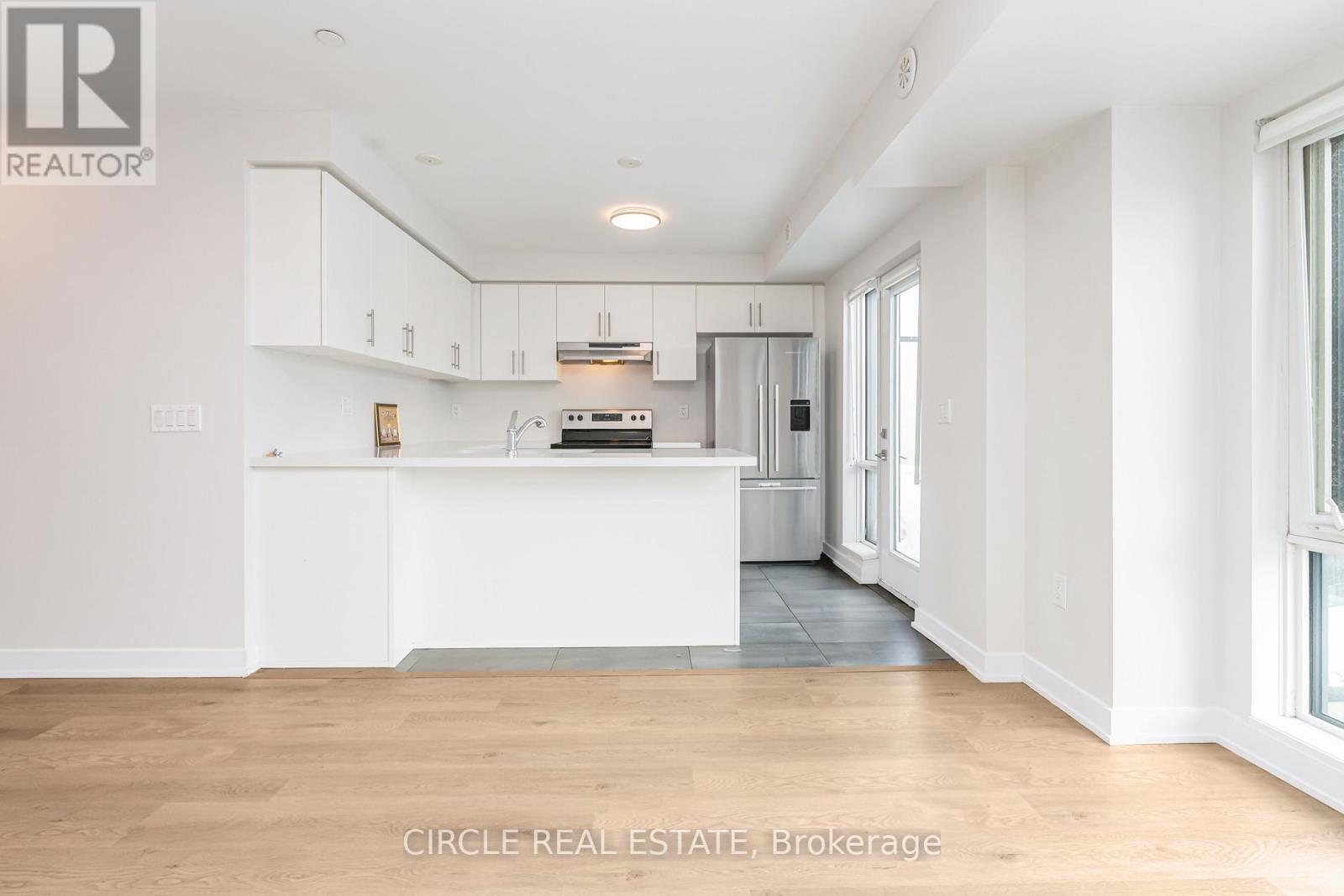 Immaculate 2-bedroom stacked townhome located in the highly sought-after Mount Pleasant community of Brampton. This well-designed residence offers a functional open-concept layout, highlighted by a modern kitchen with stainless steel appliances, contemporary cabinetry, and generous counter space-ideal for both everyday living and entertaining. The upper level features two spacious bedrooms and a full bathroom, providing a comfortable and private living environment. Meticulously maintained and thoughtfully designed for low- maintenance living, this property is well suited for professionals, couples, or investors. Exceptionally located just minutes from Mount Pleasant GO Station, with public transit conveniently located at the building, offering outstanding commuter accessibility. Close to Creditview Park, schools, shopping, dining, and all essential amenities, with easy access to major roadways. A rare opportunity to own or lease a modern townhome in a well-established, transit-oriented neighbourhood. (id:64974)