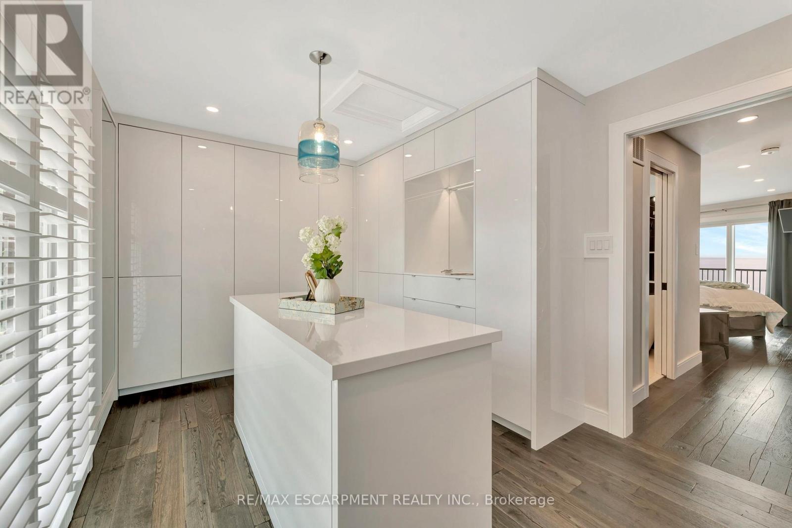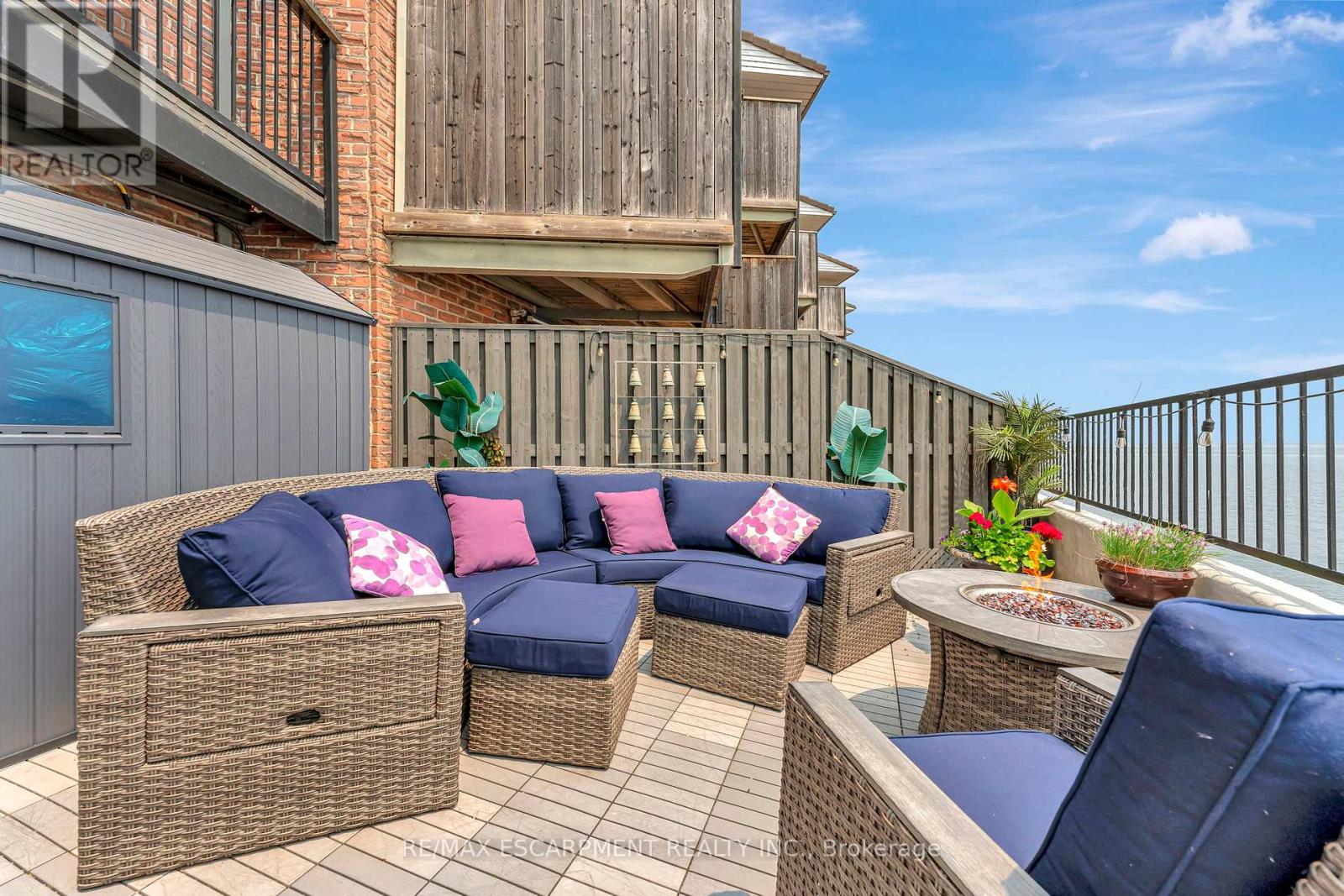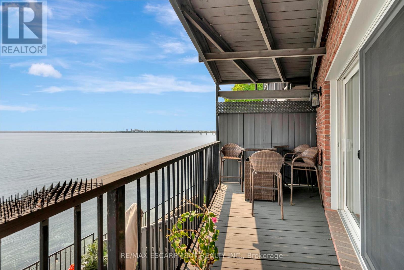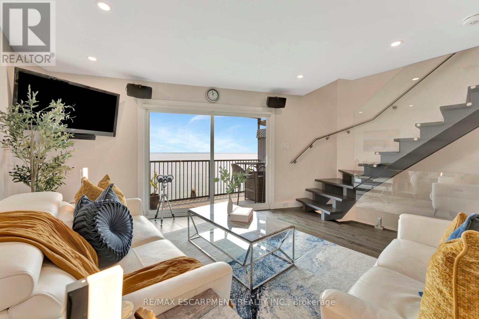 Client Rmks:Welcome to the ultimate lakefront lifestyle. This fully renovated 3-level townhouse offers unobstructed, panoramic views of Lake Ontario so close to the water, you can practically dip your toes in. Located just 600 metres from downtown Burlington, this is a rare blend of tranquility and convenience. This 3-level townhouse (1,600 plus SF) offers 1 bedrooms (potential for 2nd if you converted large walk-in closet back into a bedroom), 3 bathrooms (2 full, 1 powder) and 4 separate patio/terraces (huge 400 SF lower terrace at the water's edge). In 2020 this unit was completely gutted to the studs and rebuilt by the renowned Bespoke Home Solutions with a total renovation budget exceeding $500K . The gourmet kitchen has been masterfully crafted with designer finishes including: Insinkerator food waste disposal, hot water tank/dispenser, Porter & Charles warming drawer, Built in Miele Appliances (including a $7K plumbed in Coffee Machine), microwave/convection oven, Combi Steam Oven, Dacor Fridge & Freezer and Gravelle custom cabinetry throughout. The spacious primary suite is a true retreat, featuring a spa-inspired ensuite with heated floors, a two-person soaker tub, and a private balcony with stunning sunrise views over the lake. The second bedroom has been converted into a designer walk-in closet with custom cabinetry and a centre island, offering both form and function (easily reverted to a bedroom if desired). Lower level family room offers a full bathroom, ample storage and ability to offer a guest suite with use of a murphy bed. Backwater valve in basement. Home is equipped with Sonos built in ceiling speakers with hooked up amplifiers and speaker selector options. Large 400 SF back terrace is fashioned with a BBQ gas line and has a hook up for a Hot Tub. (id:64974)